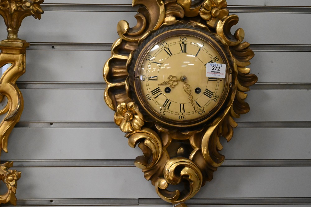Westerstrand Giltwood Clock, in scroll form, height 23 inches.
