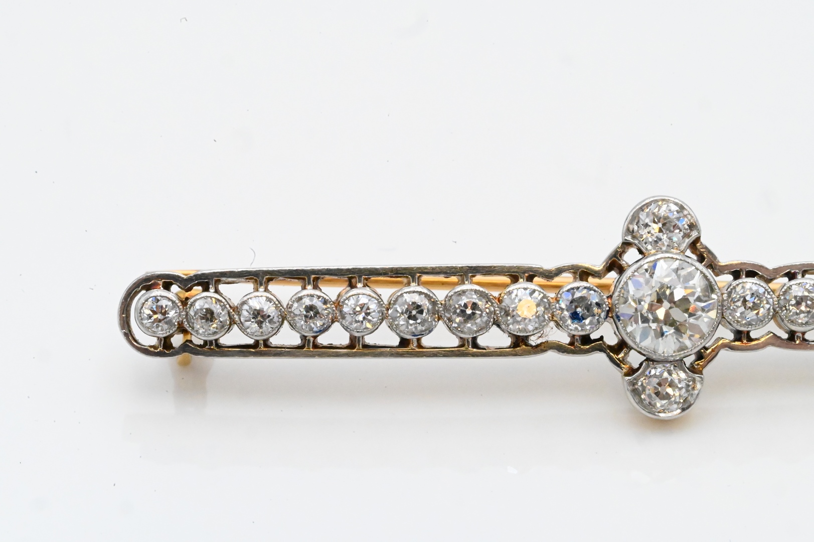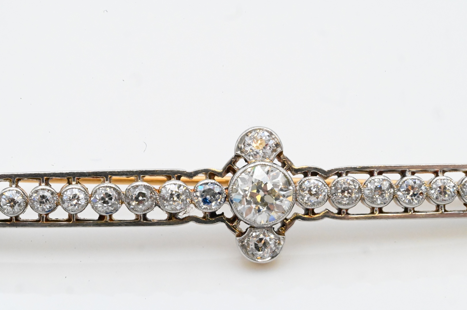 Lot 272: Yellow Gold and Platinum Diamond Bar Pin