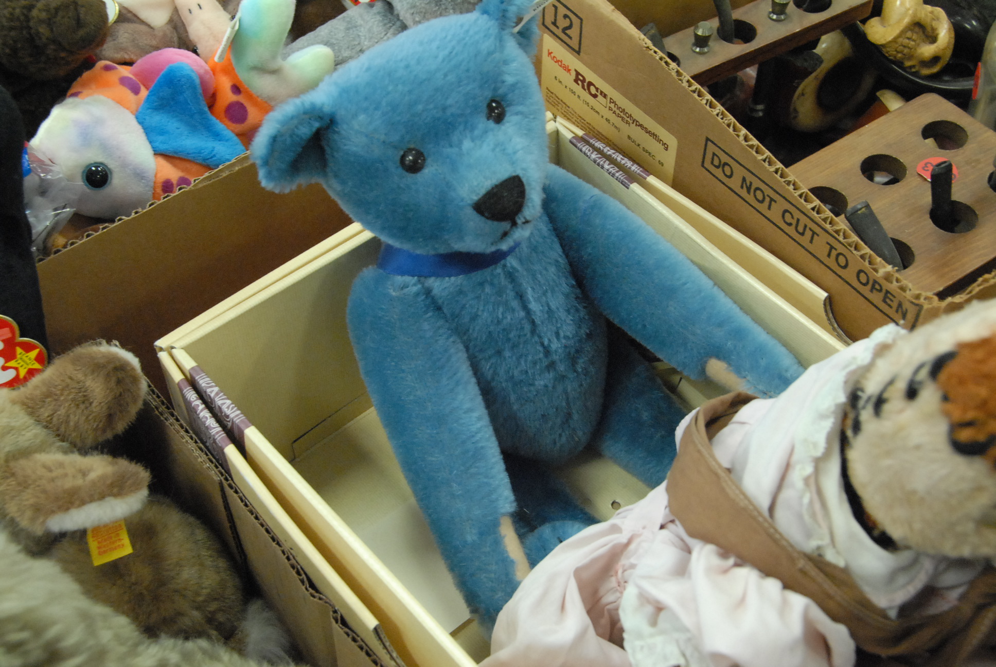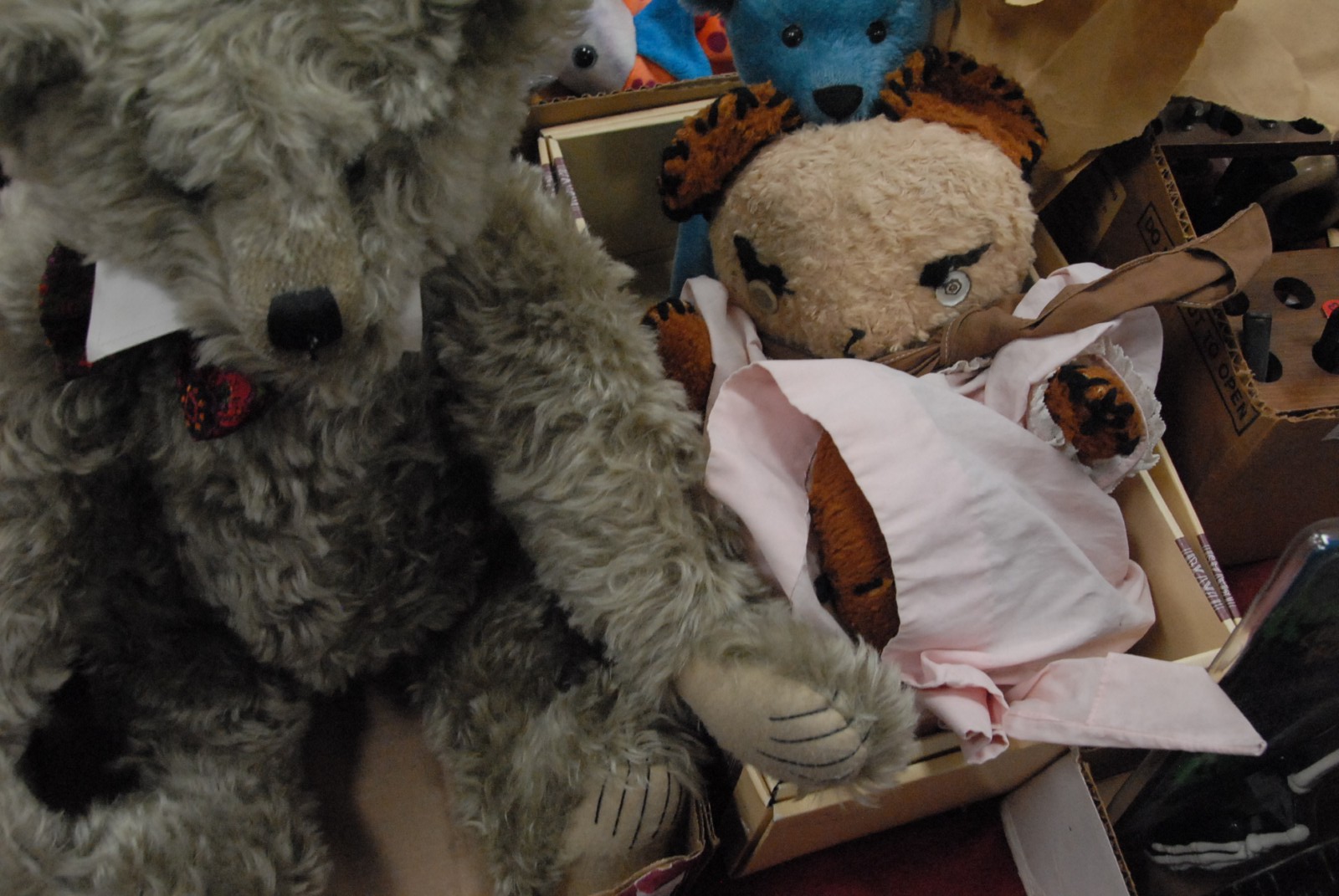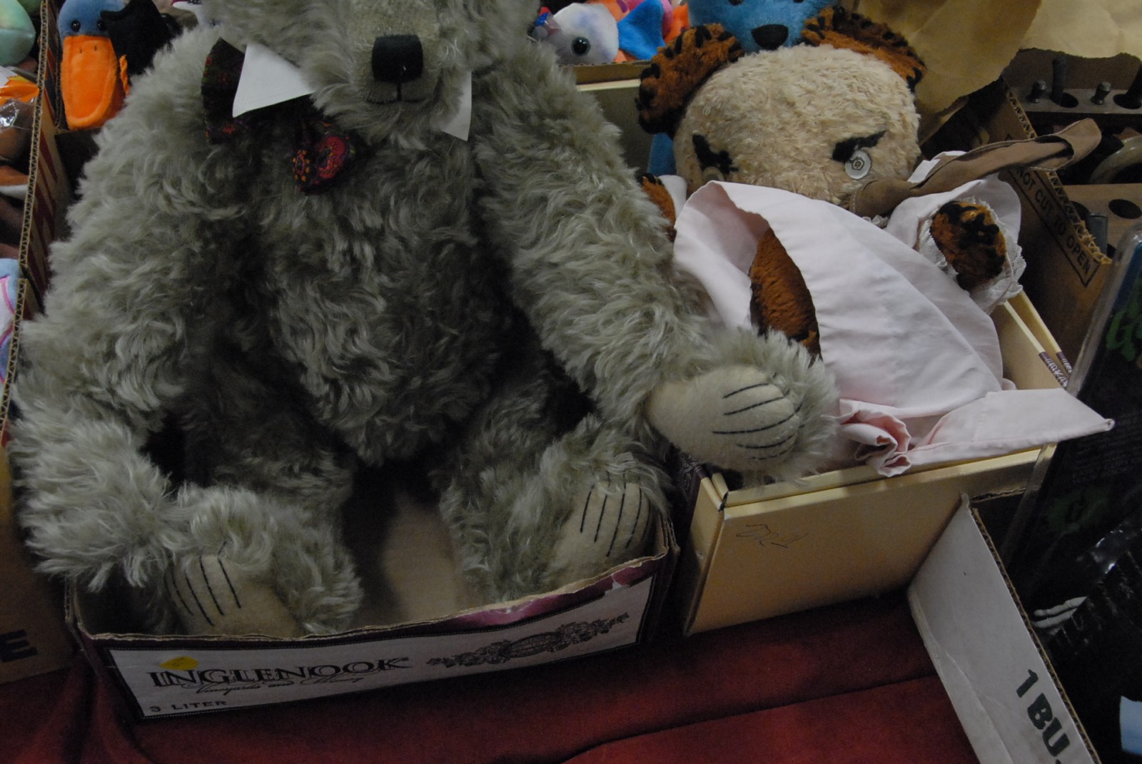 Lot 272A: Two boxes of various teddy bears , a Steiff blue