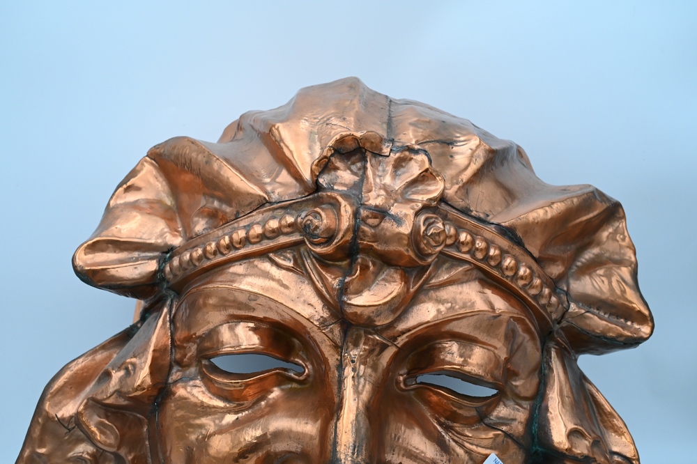 American Architectural Copper Head of a Woman, 12 x 22 x 22 inches.