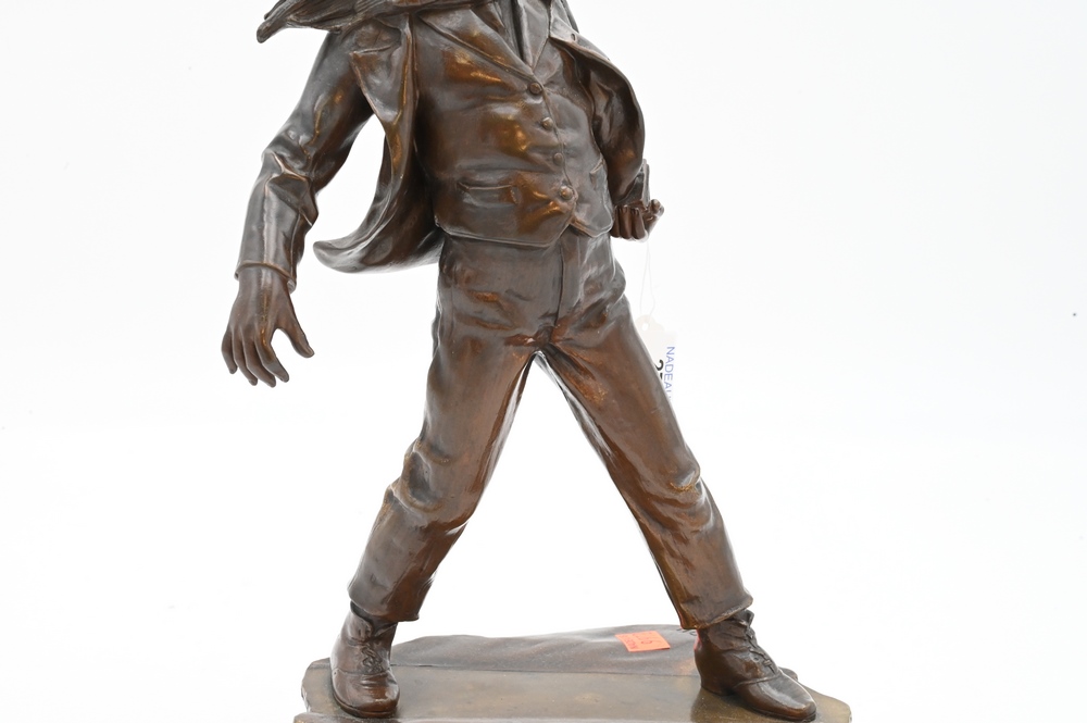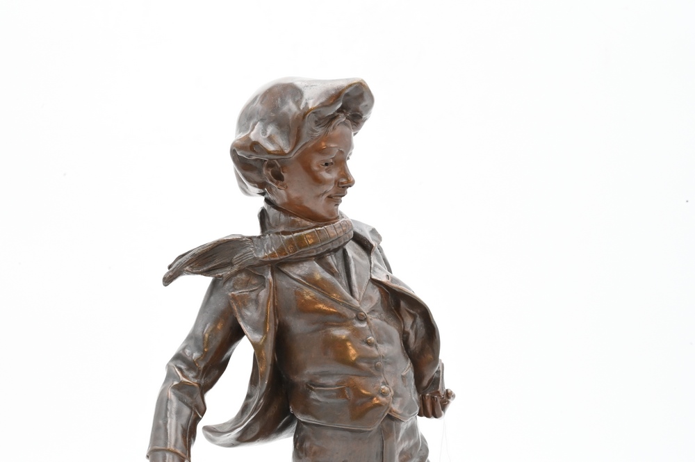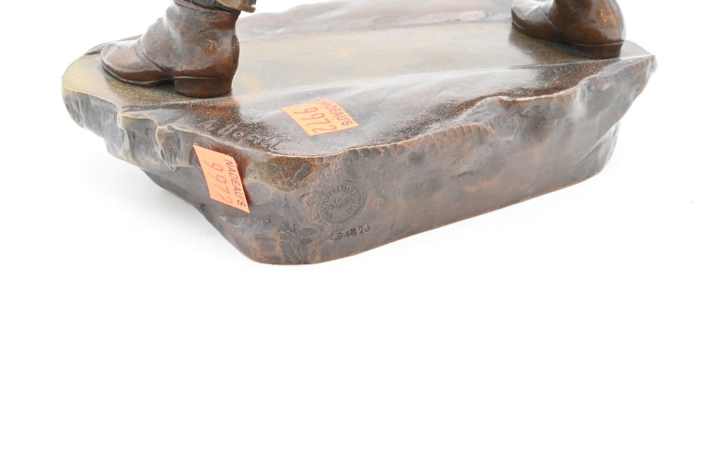 Antoine Bofill Bronze, 1875 – 1939, “La Glissade”, figure of a boy sliding on ice,