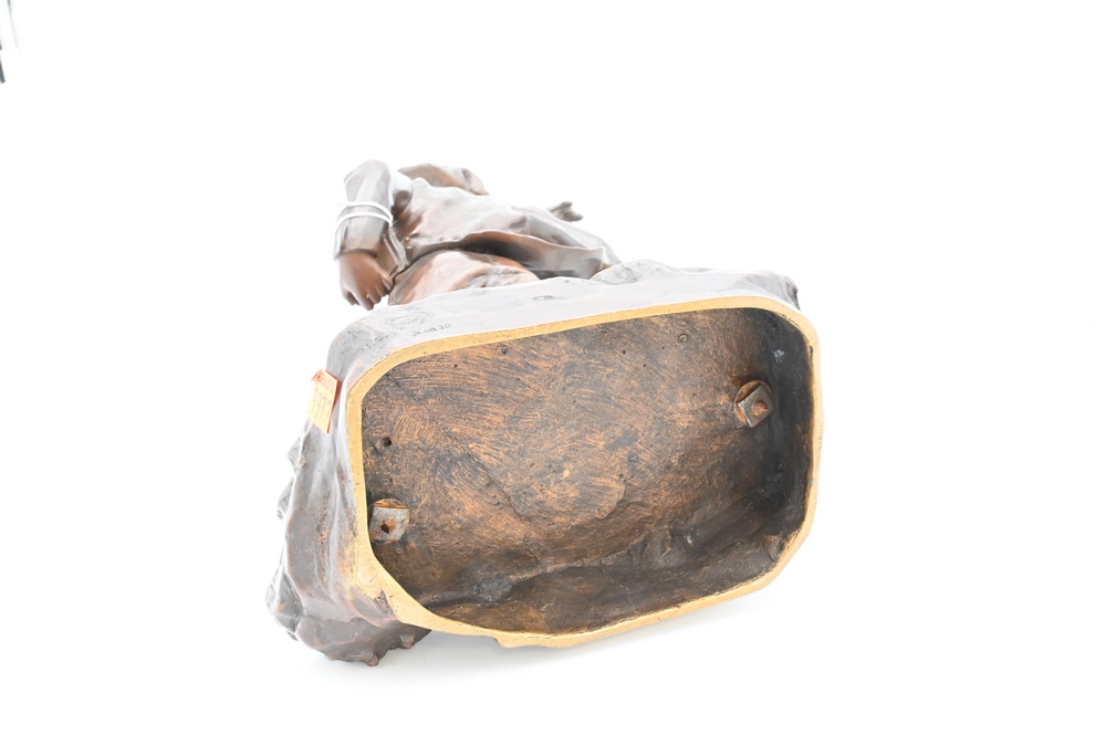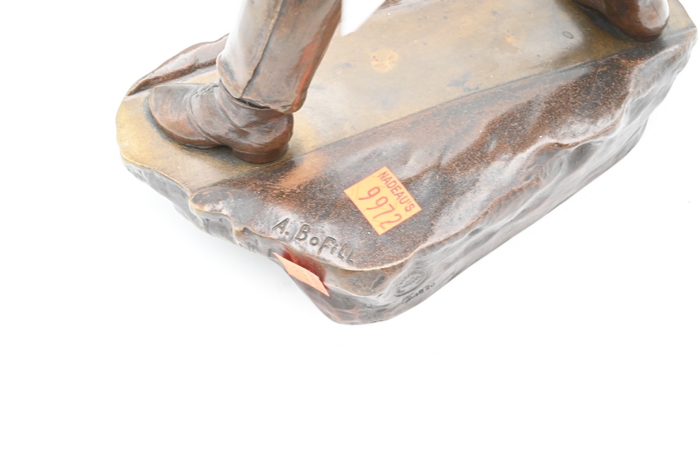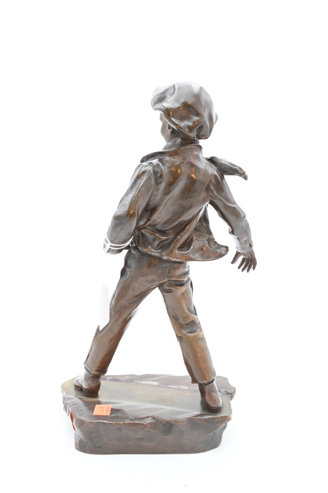 Lot 273: Antoine Bofill Bronze, 1875 – 1939, “La Glissade”, figure of a boy sliding on ice, marked A. Bofill, bearing Garanti Au Titre Depose foundry mark, height 14 1/2 inches.