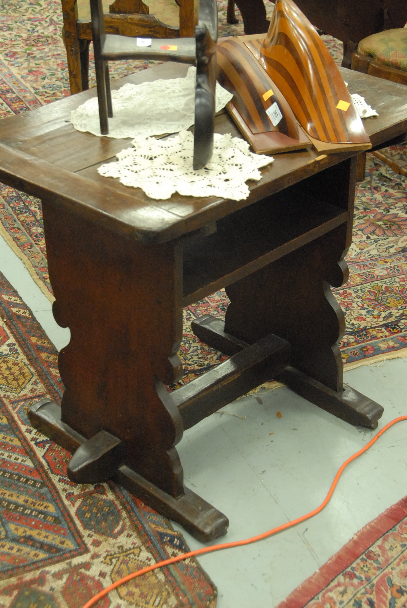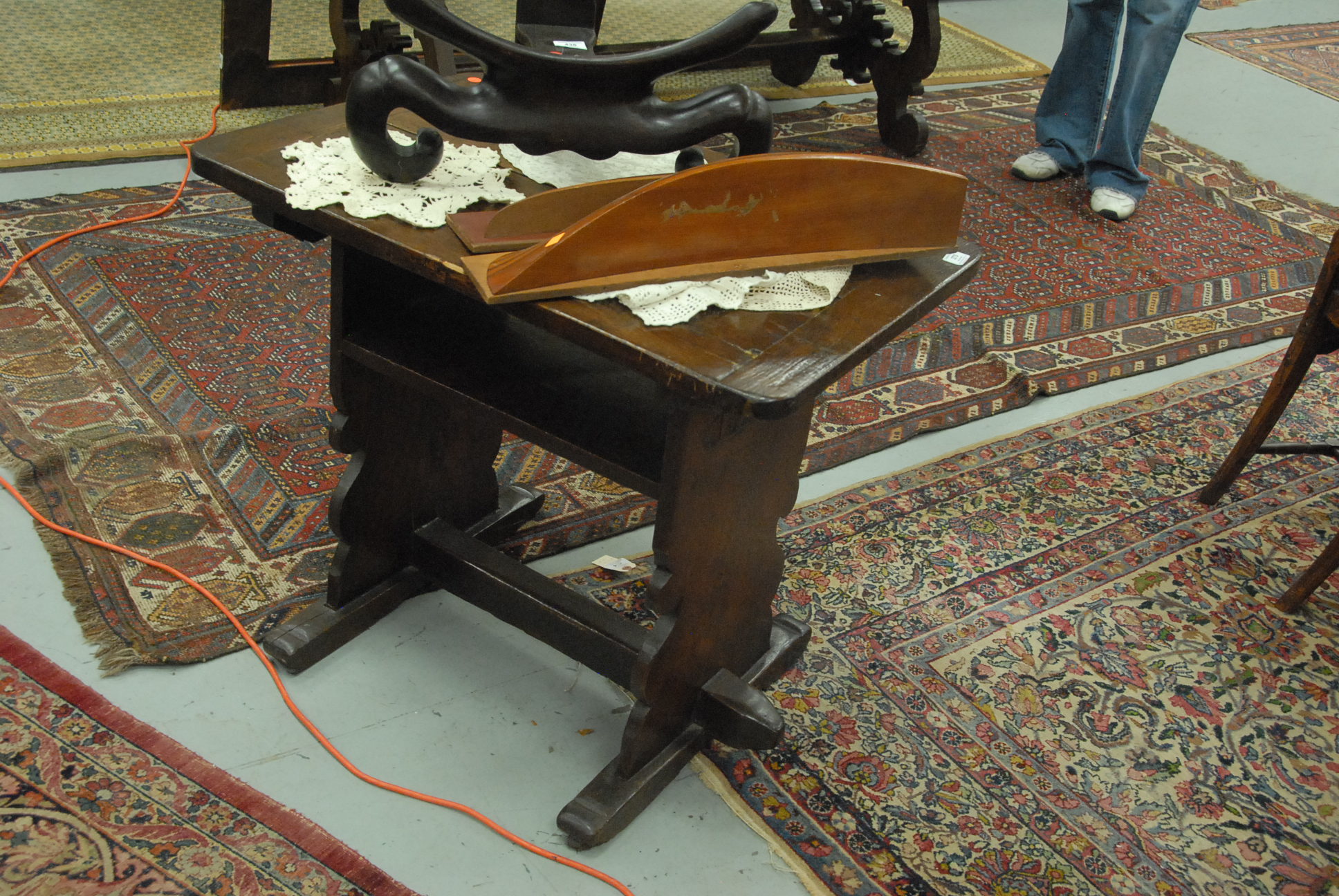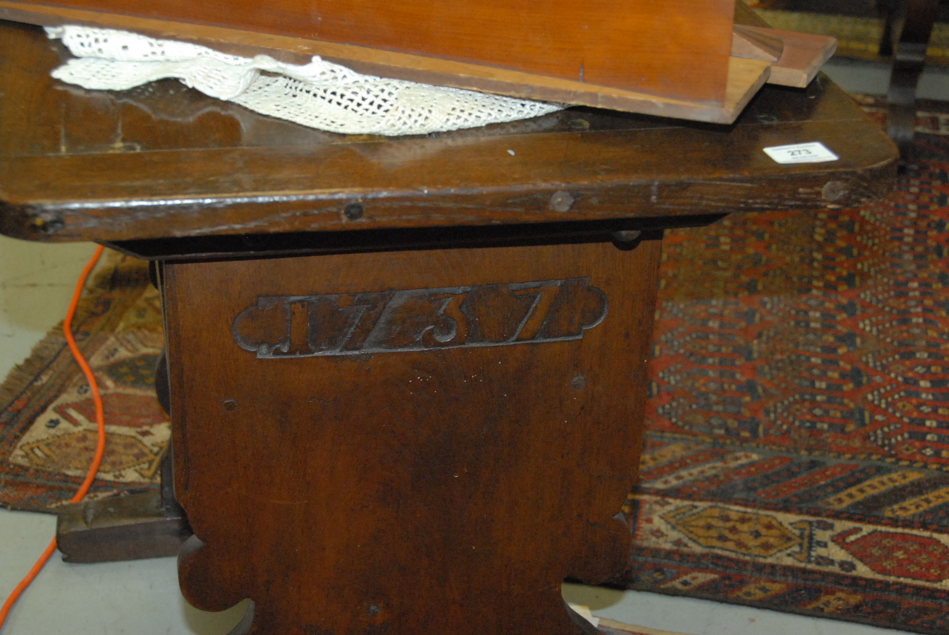 Lot 273: Baroque style oak and walnut trestle side table dated 1737 some restoration. ht. 19 3/4in. wd. 32 1/2in. dp. 21 3/4in.