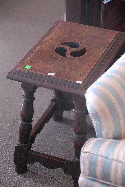 Cherry drop leaf table 11 x 30 and walnut stool ht. 18in. wd. 12in.