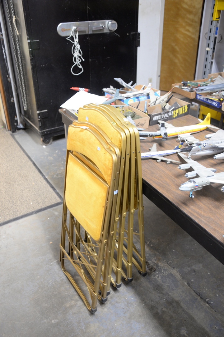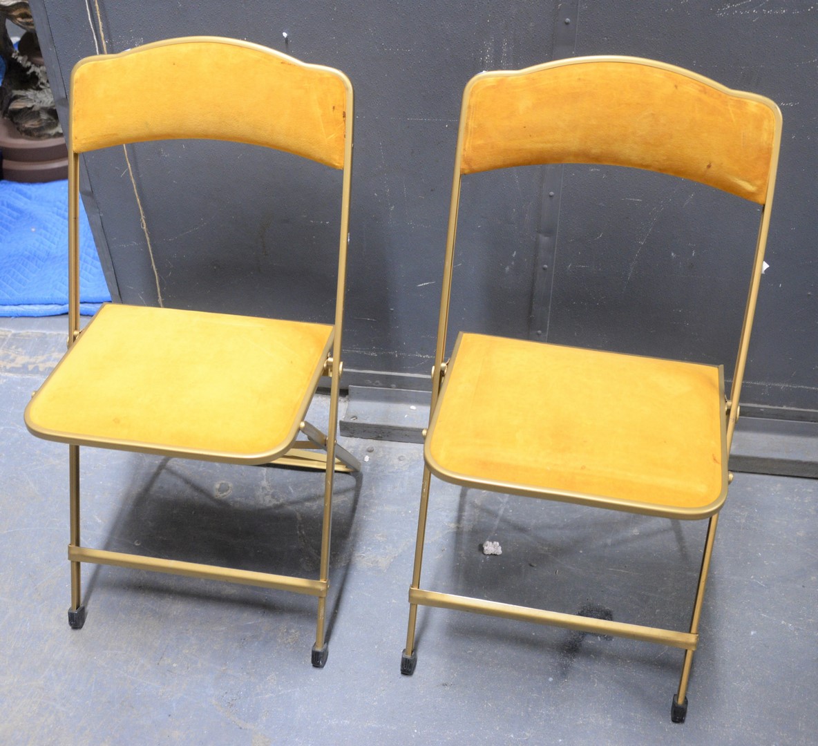 Lot 273: Group of Eight Fritz & Company Mid-Century Folding Chairs, gold upholstery, marked Fritz & Company, Long Island City, New York. Provenance: The Estate of Alina Roisen, Park Avenue, New York.