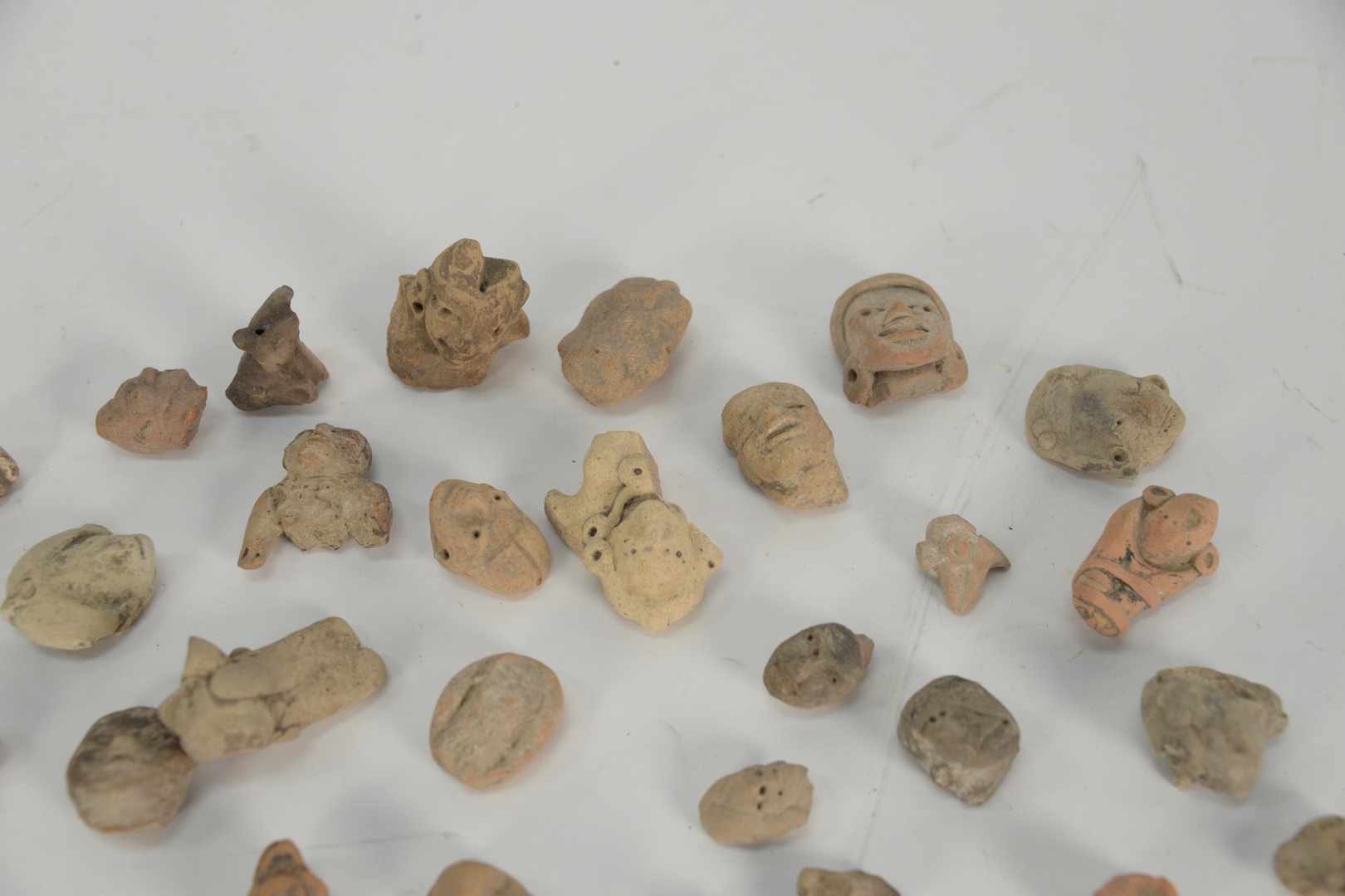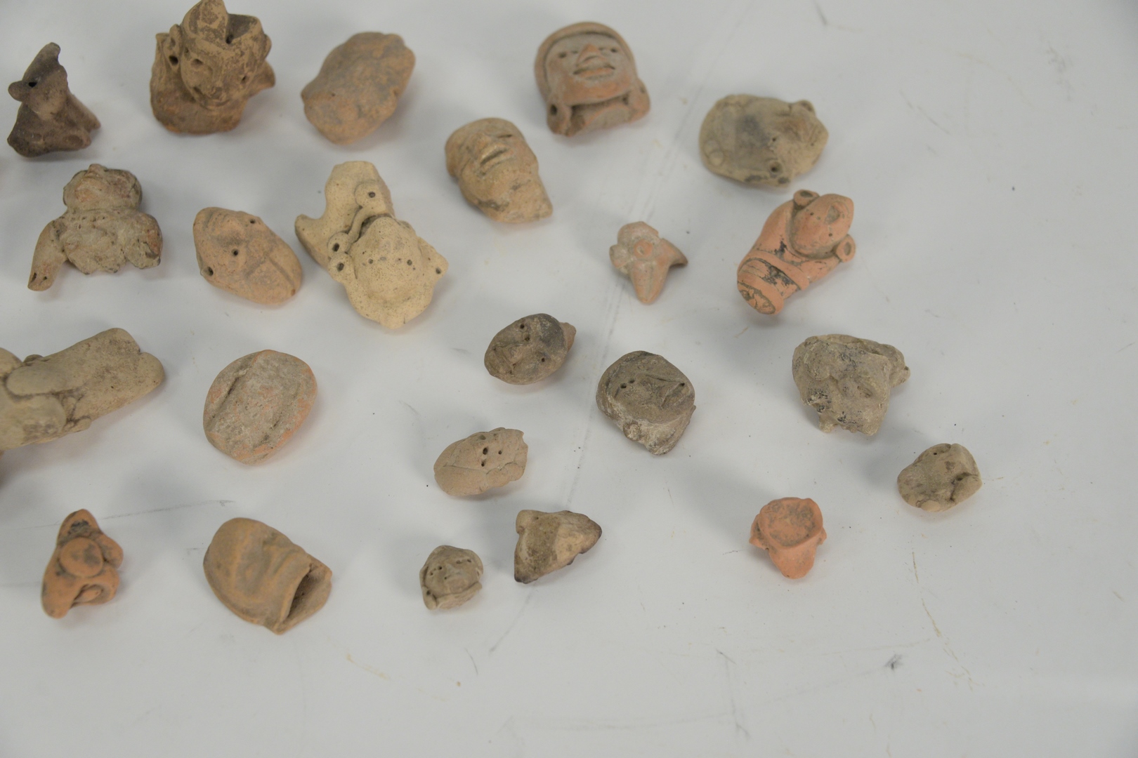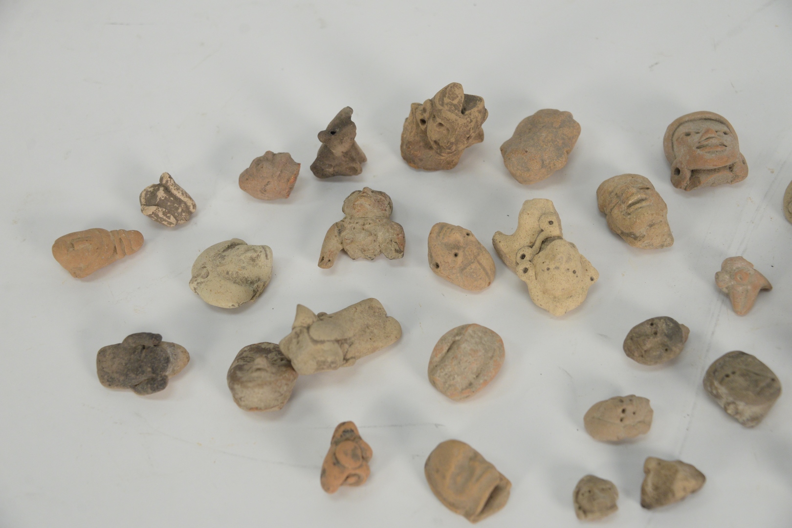Group of Pre Columbian Earthenware to include heads and figures, most classic period AD 300 – 1000, from central Mexico, having 1990 Yale University authentication letter, largest height 2 1/4 inches.