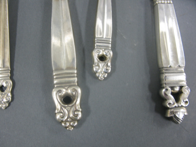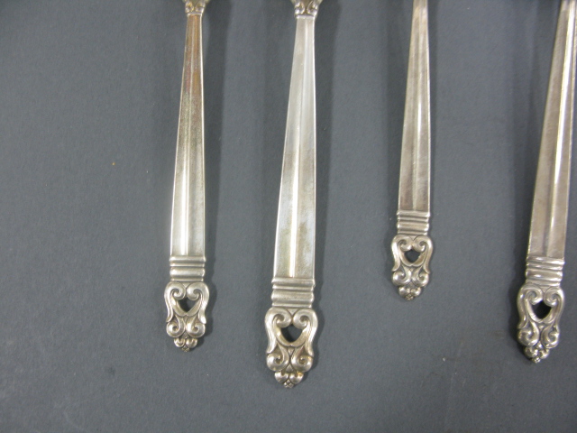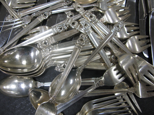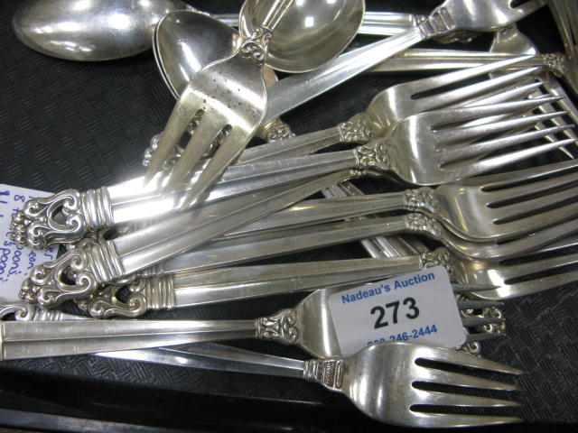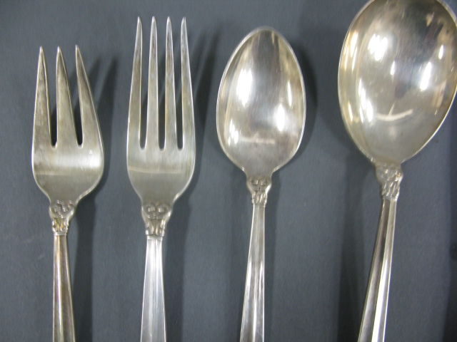 International Royal Danish sterling silver flatware set, sixty-seven pieces, including: 10 dinner forks, 12 lunch forks, 10 teaspoons, 8 table spoons, 11 lunch knives, 6 dinner knives.