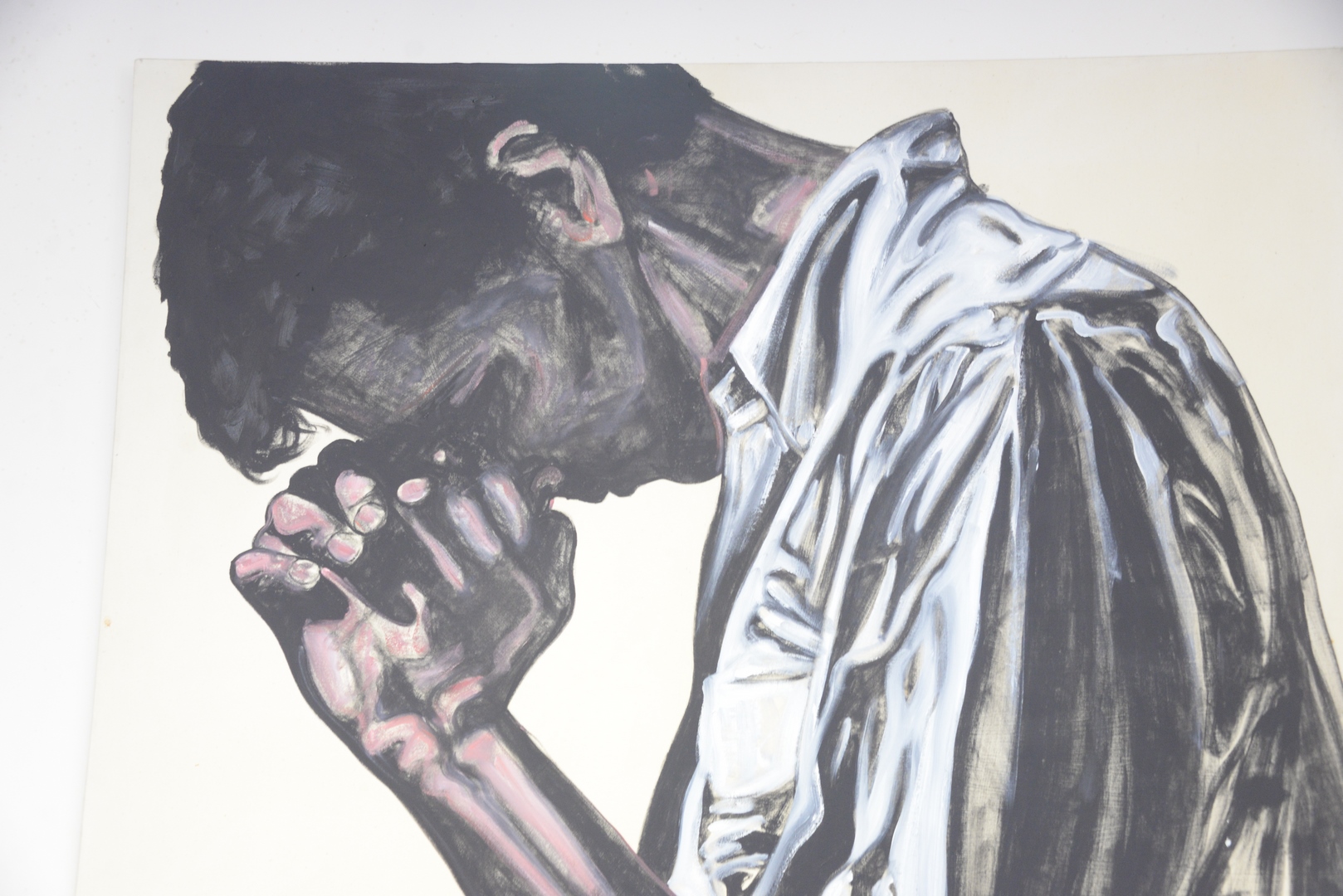 Ken Goodman (American, 1950-1995), Fear/Hope, 1983, oil on canvas, signed, titled, and dated on the reverse, 60″ x 60″.