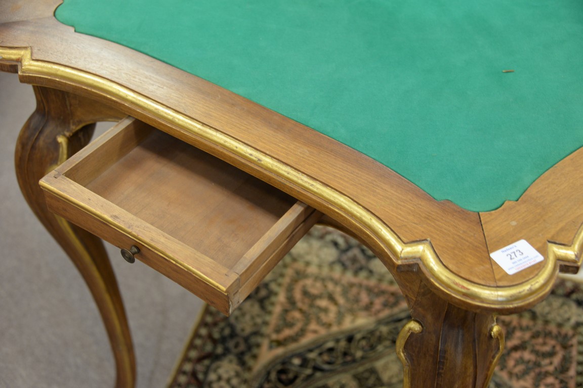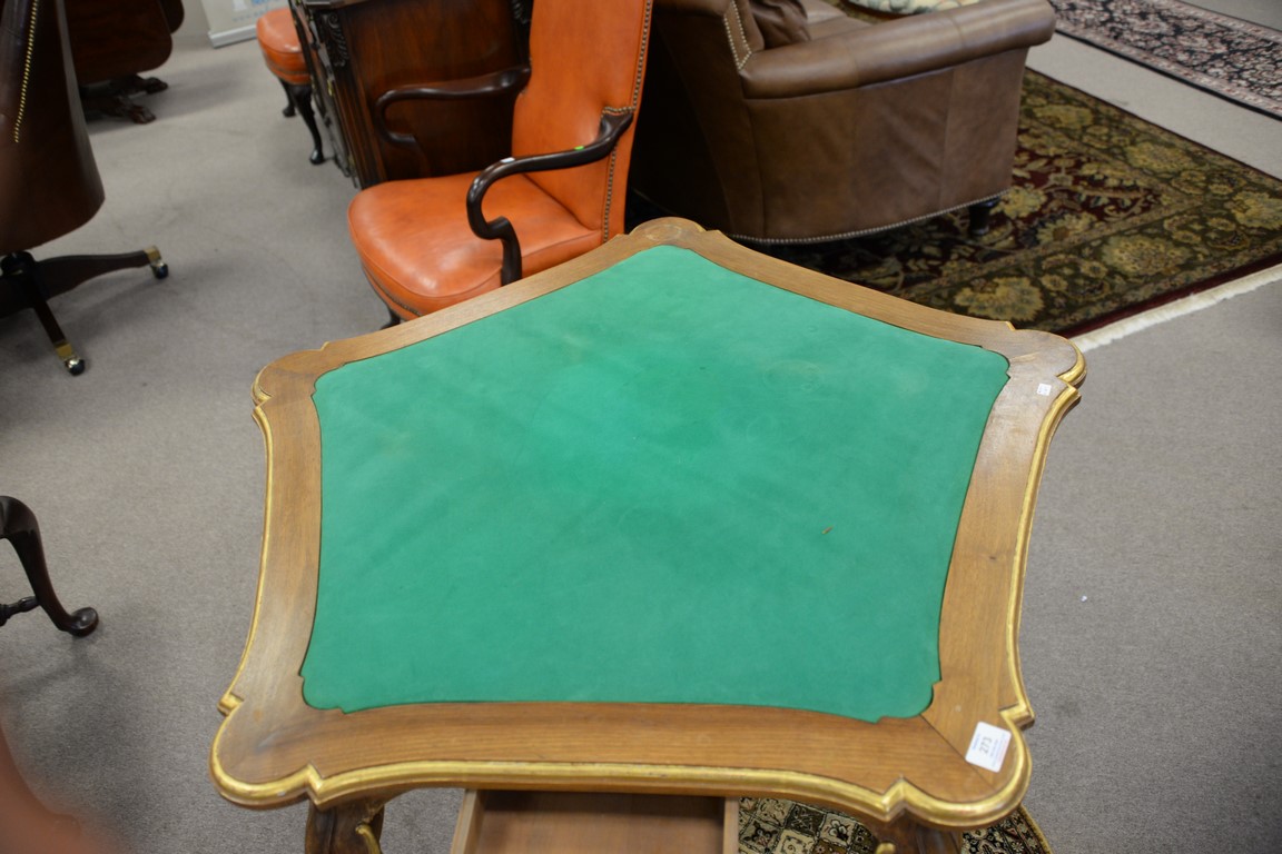 Louis XV style game table, five sided with five drawers and felt top. ht. 31in., dia. 39in.