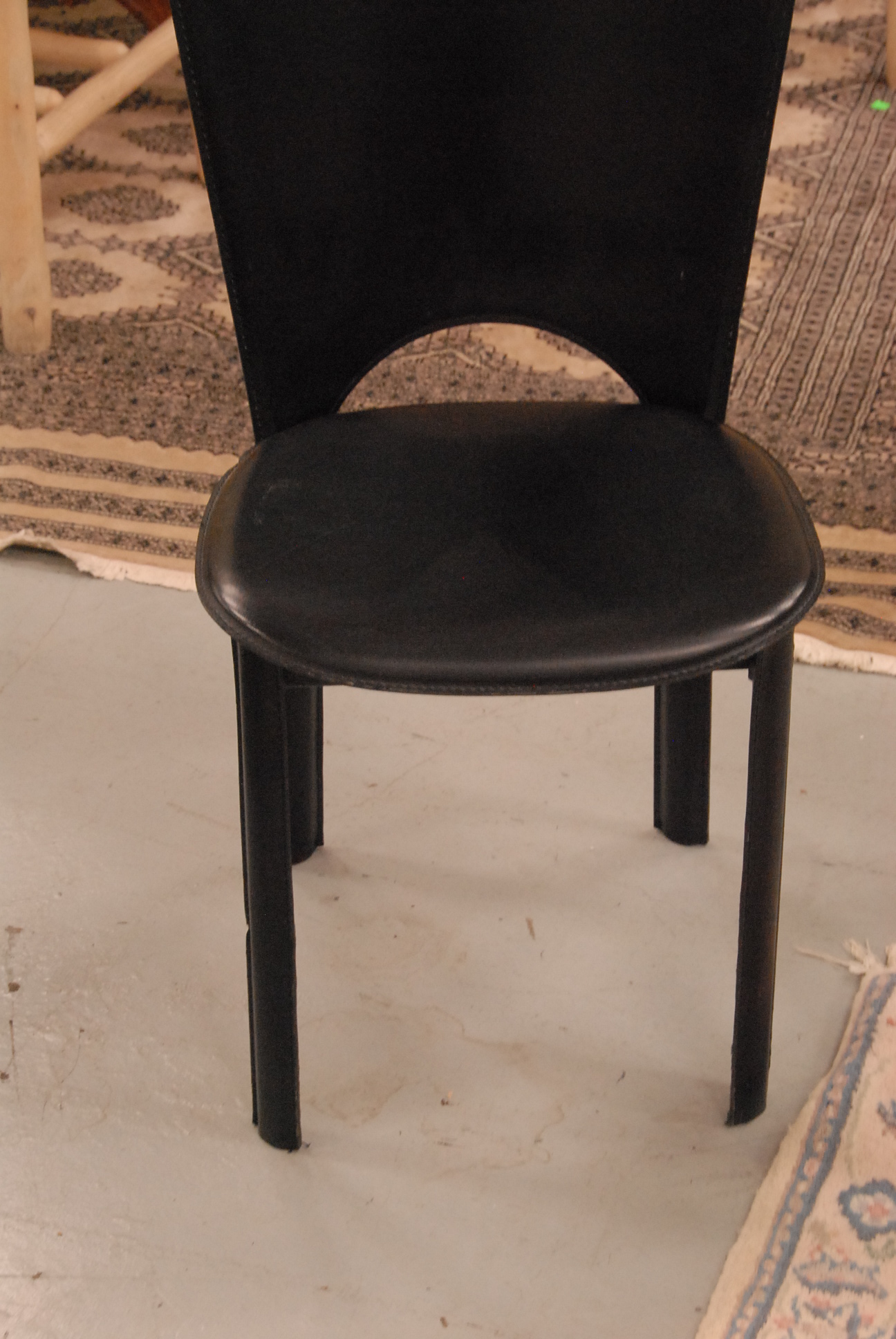 Lot 273: Mario Bellini style pair of leather covered side chairs on concealed steel frames marked Made in Italy by Sibau.