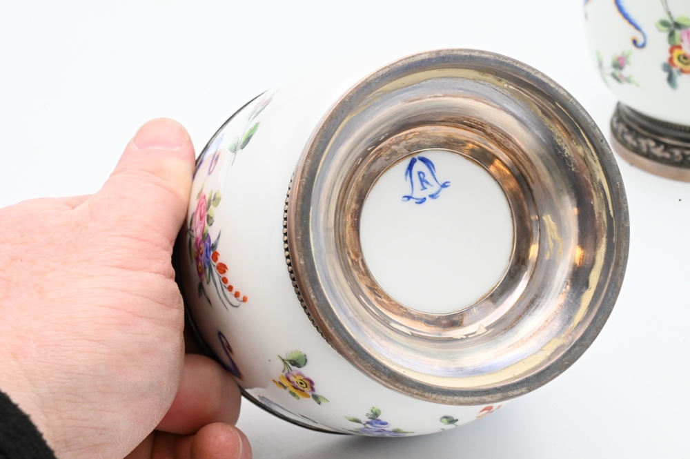 Pair of Sevres Cache Pots, height 3 3/4 inches, diameter 4 inches.