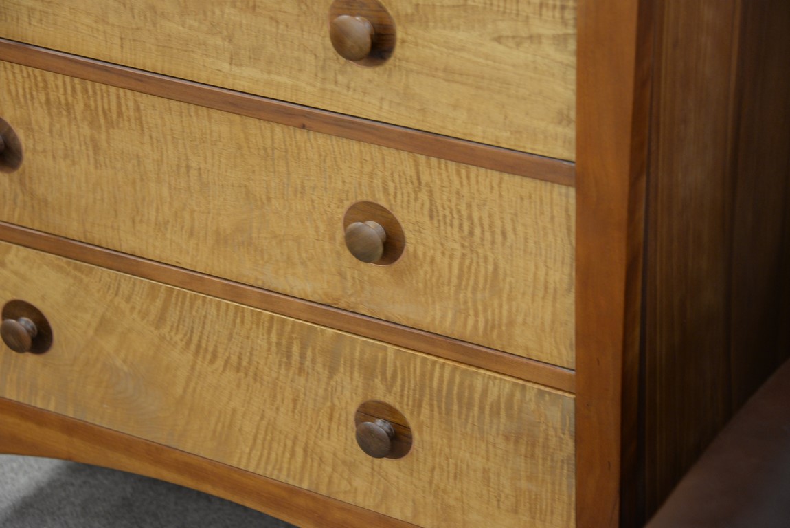 Lot 273: Stickley 21st Century cabinet with two doors and three drawers, cherry with figured maple fronts, soft finish replacement price 6,…