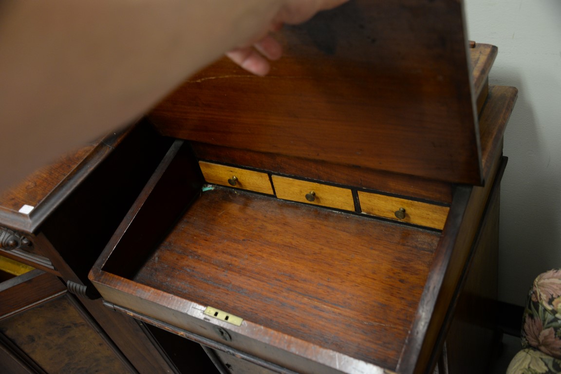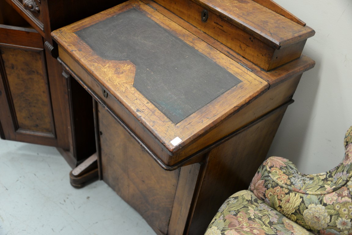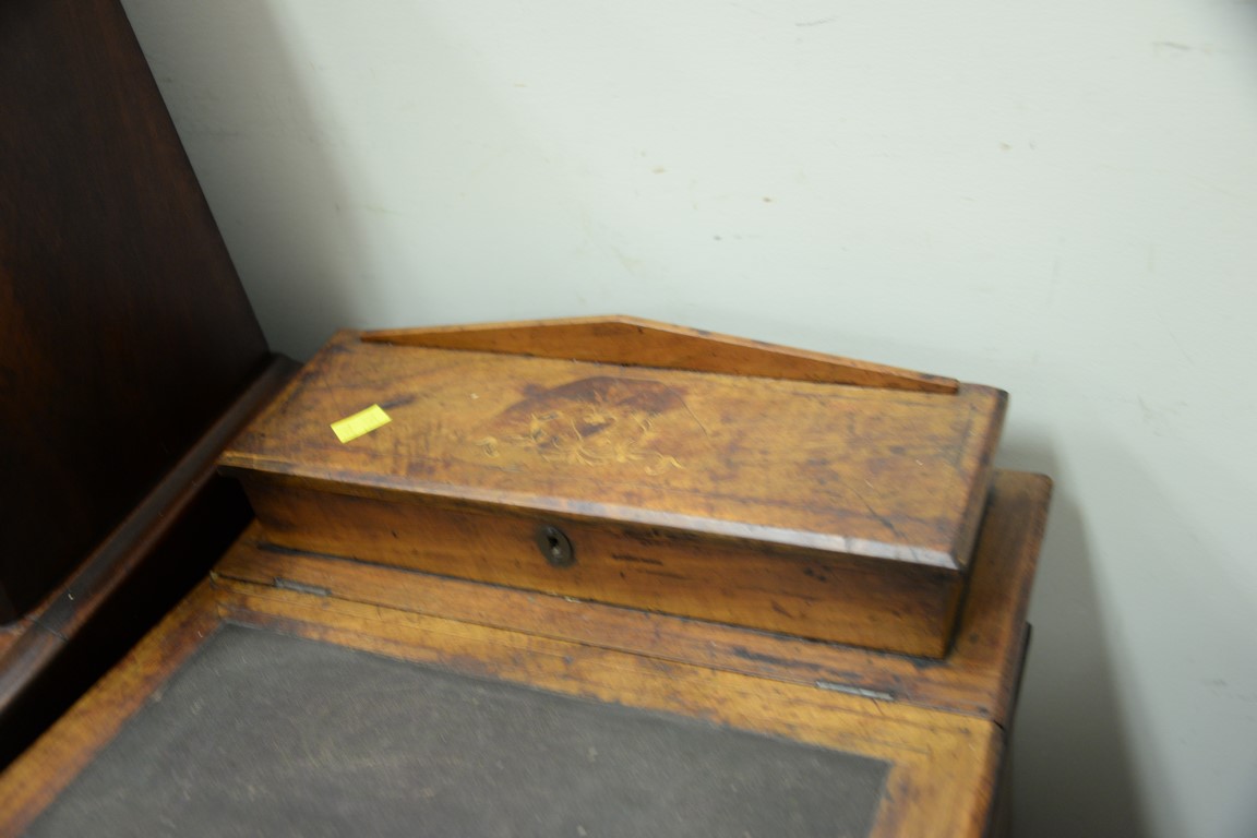 Three piece Victorian lot to include dropwell marble top chest ht. 85 in. wd. 43 in., Victorian drop front desk, and child size Davenport style desk ht. 31 in. wd. 20 in.