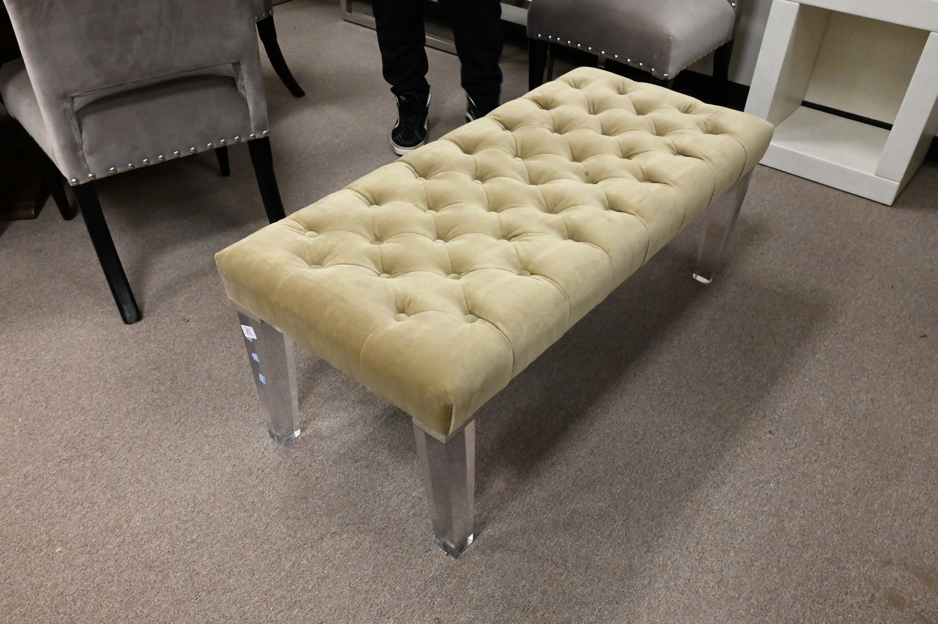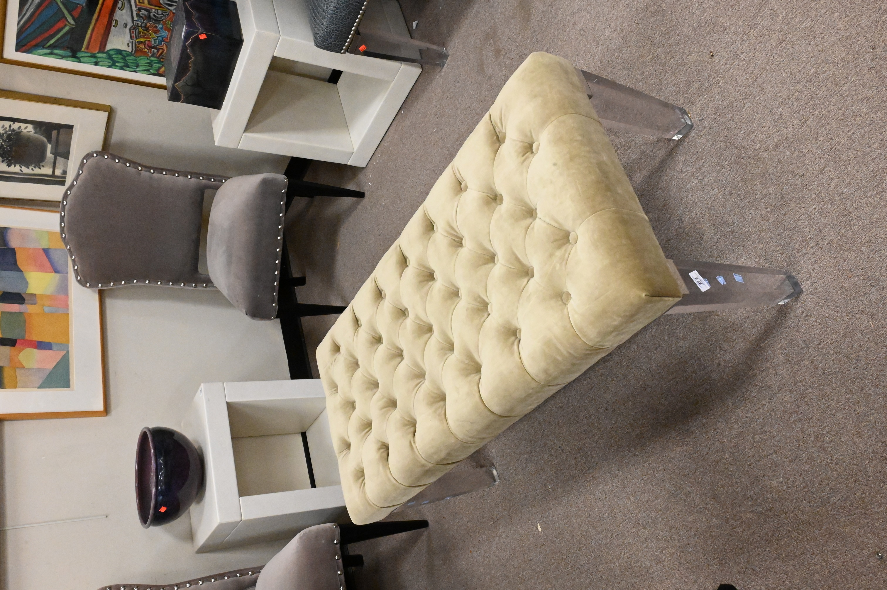 Lot 273: Tufted Suede Hudson Bench and Square Feathers Bella Stool