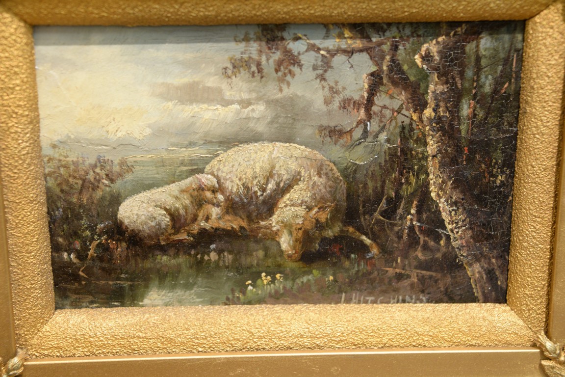 Lot 273: Two 19th century paintings to include John Hitchins 1865-1874, oil on board, Sheep Sleeping, signed lower right: J. Hitchins and a…