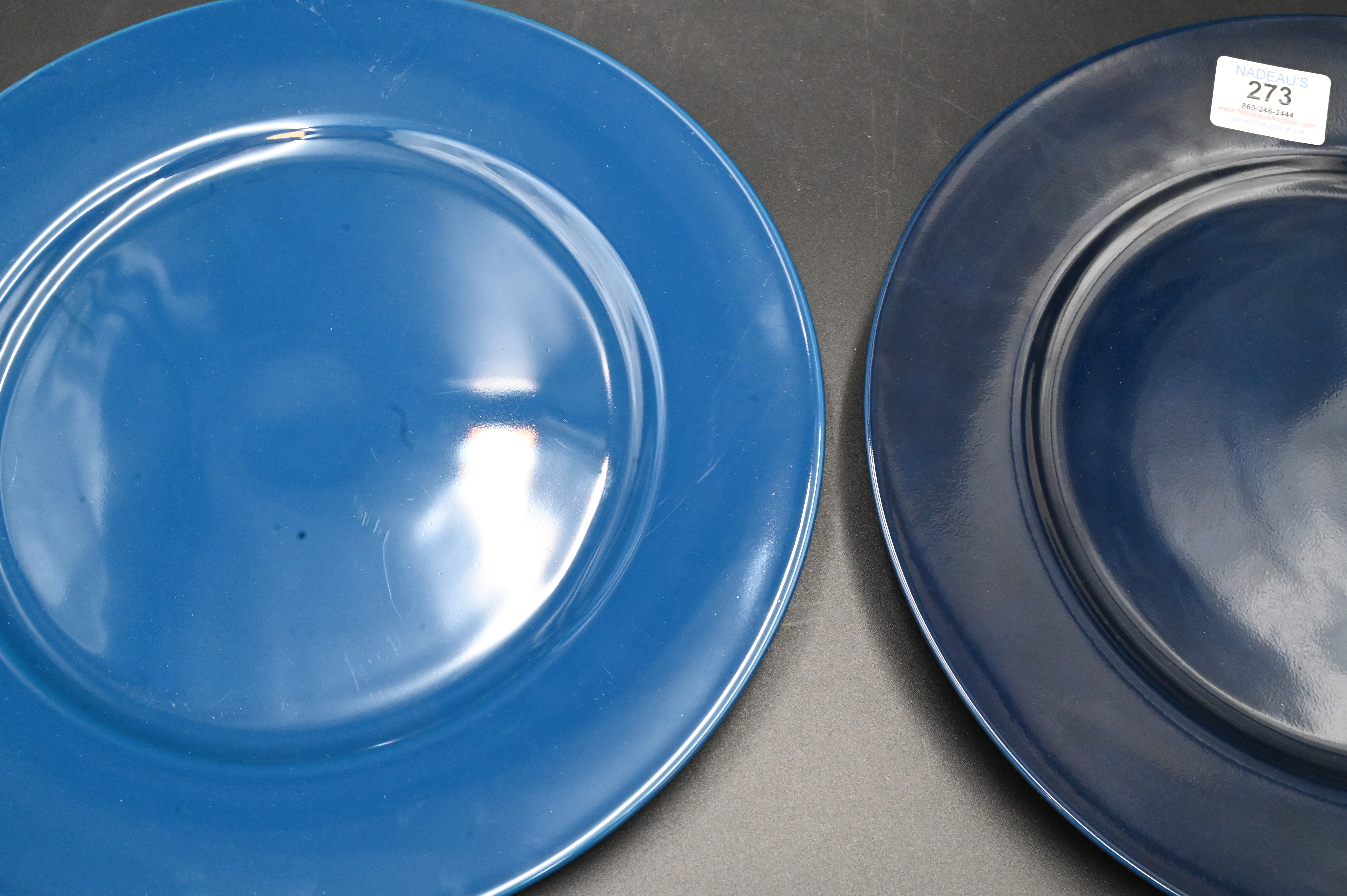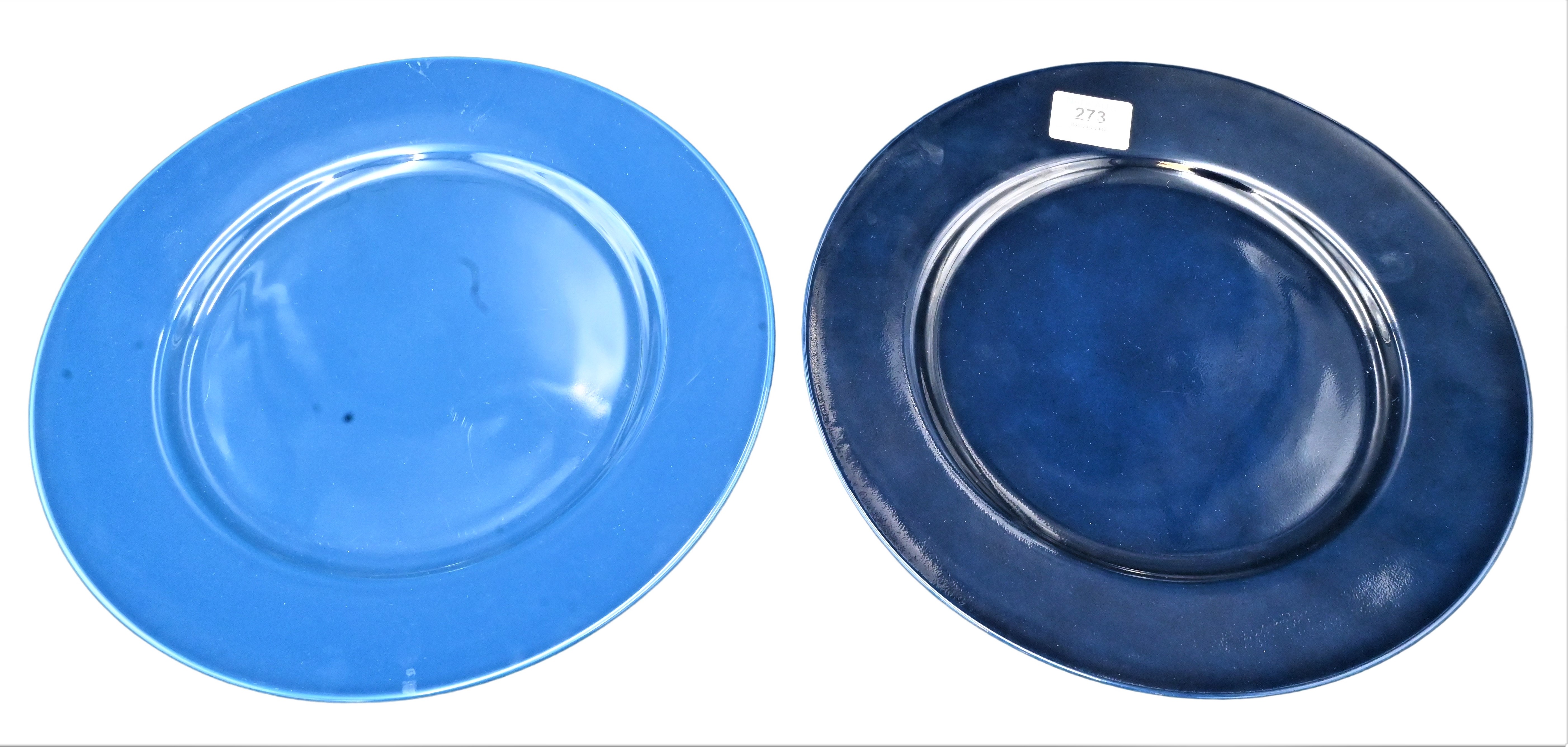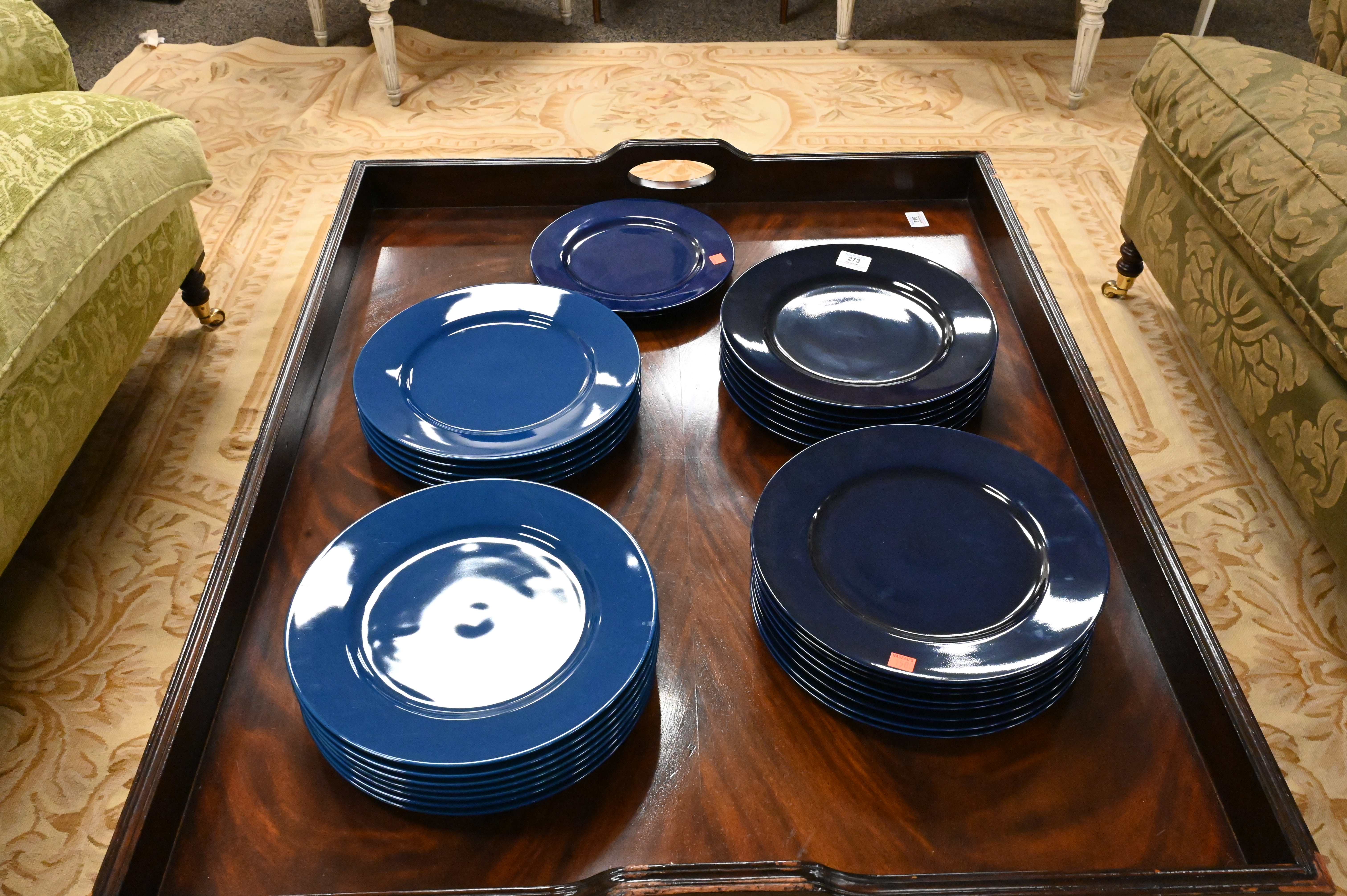 Two Sets of Dinner Plates by Taitu, to include a set of 14 Taitu Uno by Emilio Bergamin, Italy, dark blue glaze, diameter 12 inches; a set of 12 medium blue, along with 2 luncheon plates.