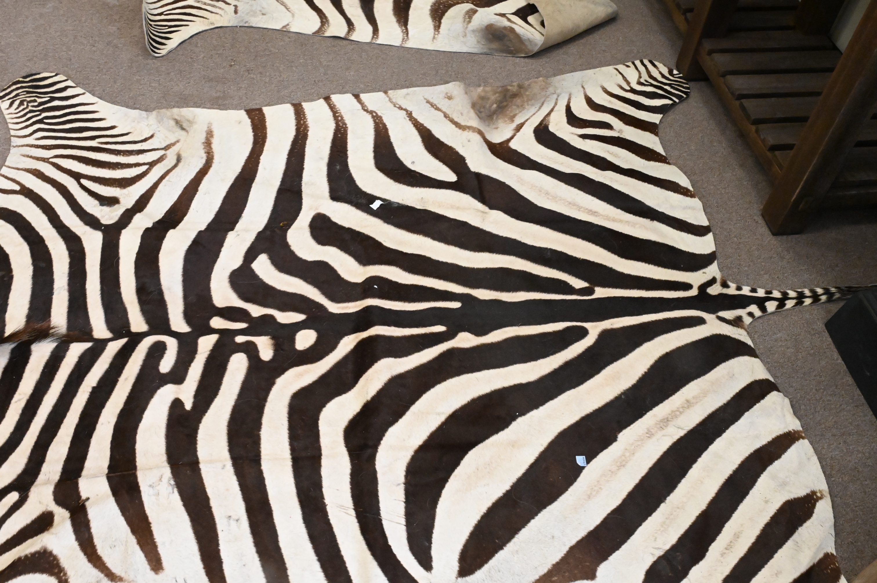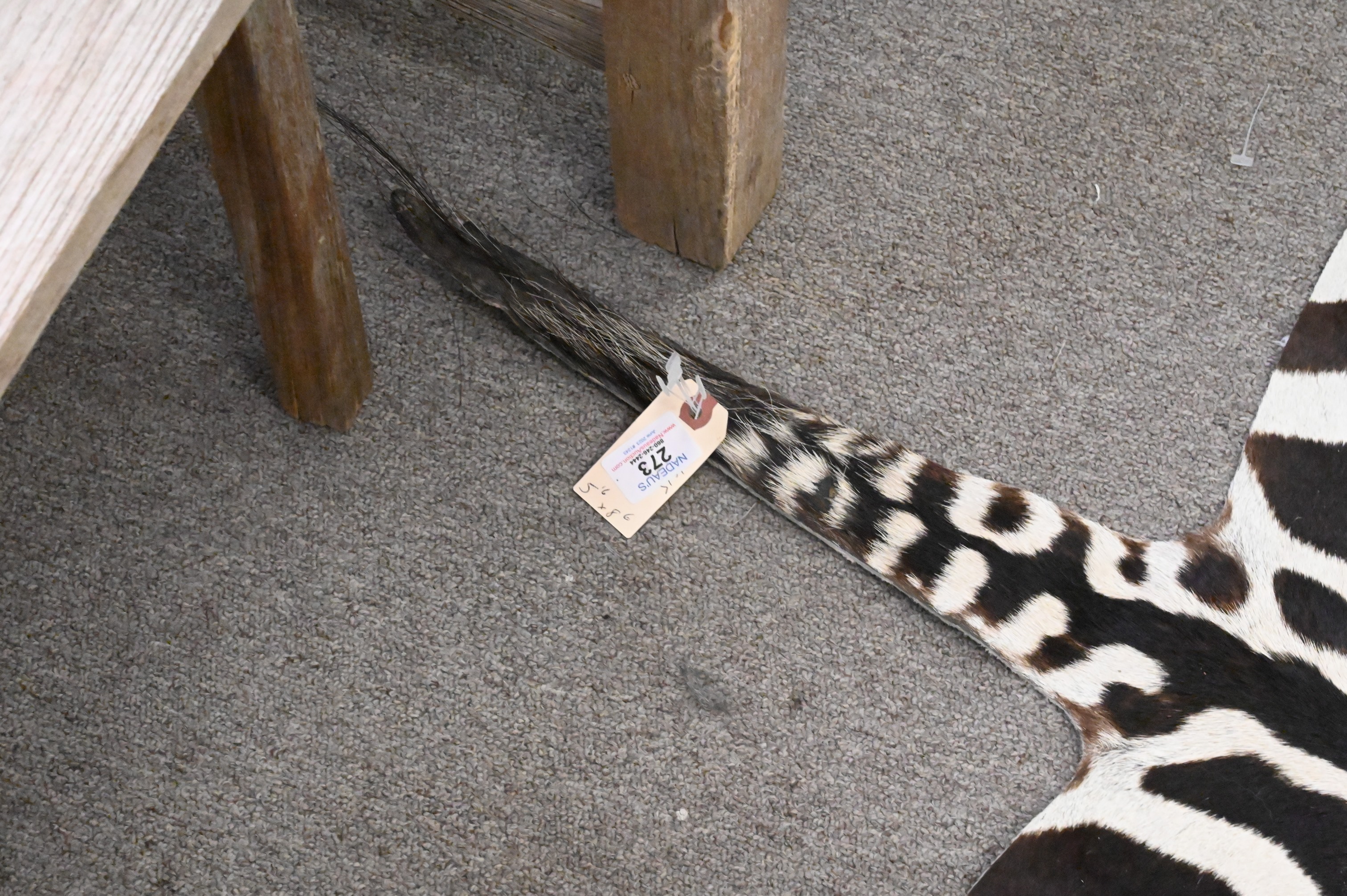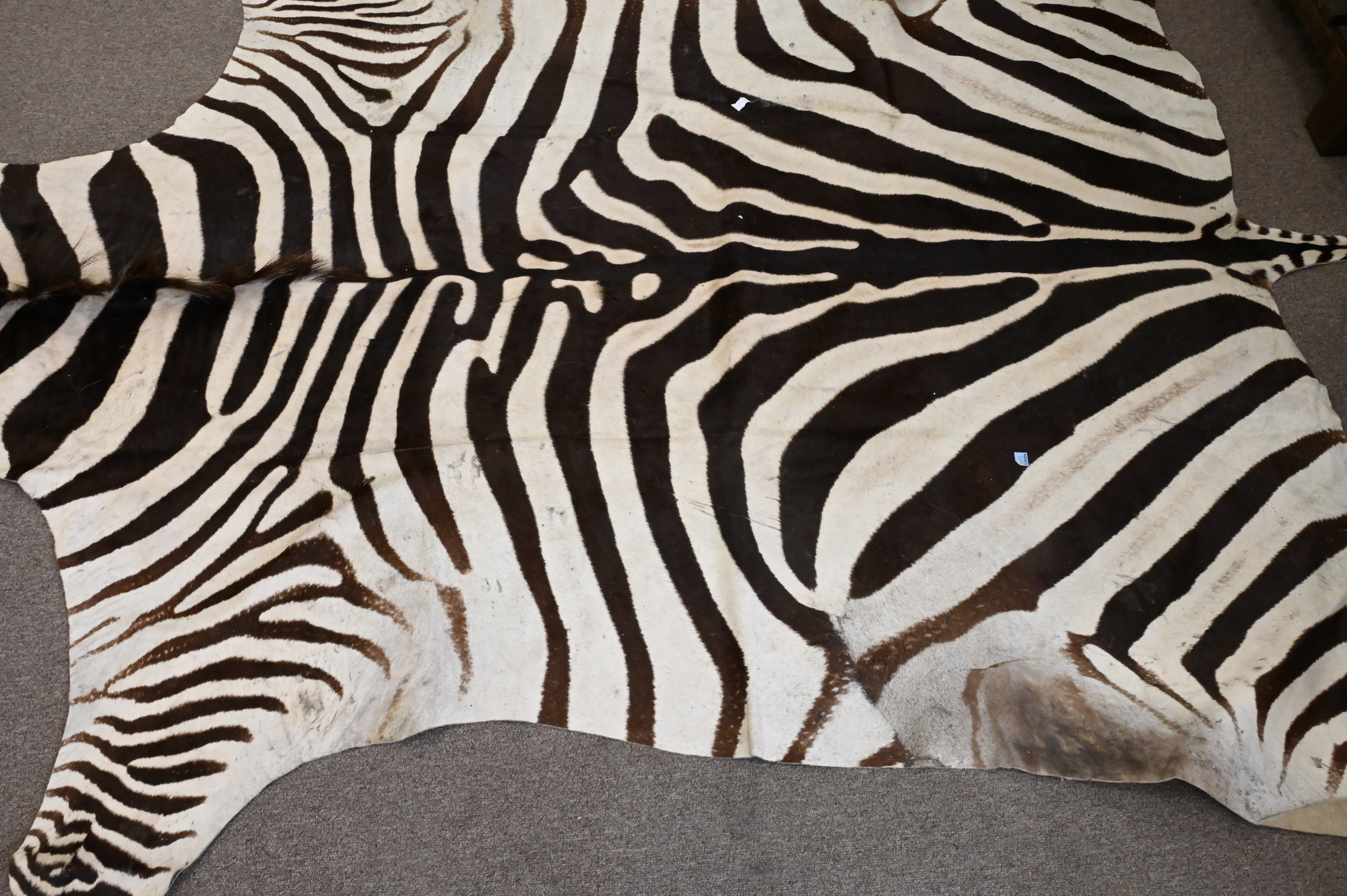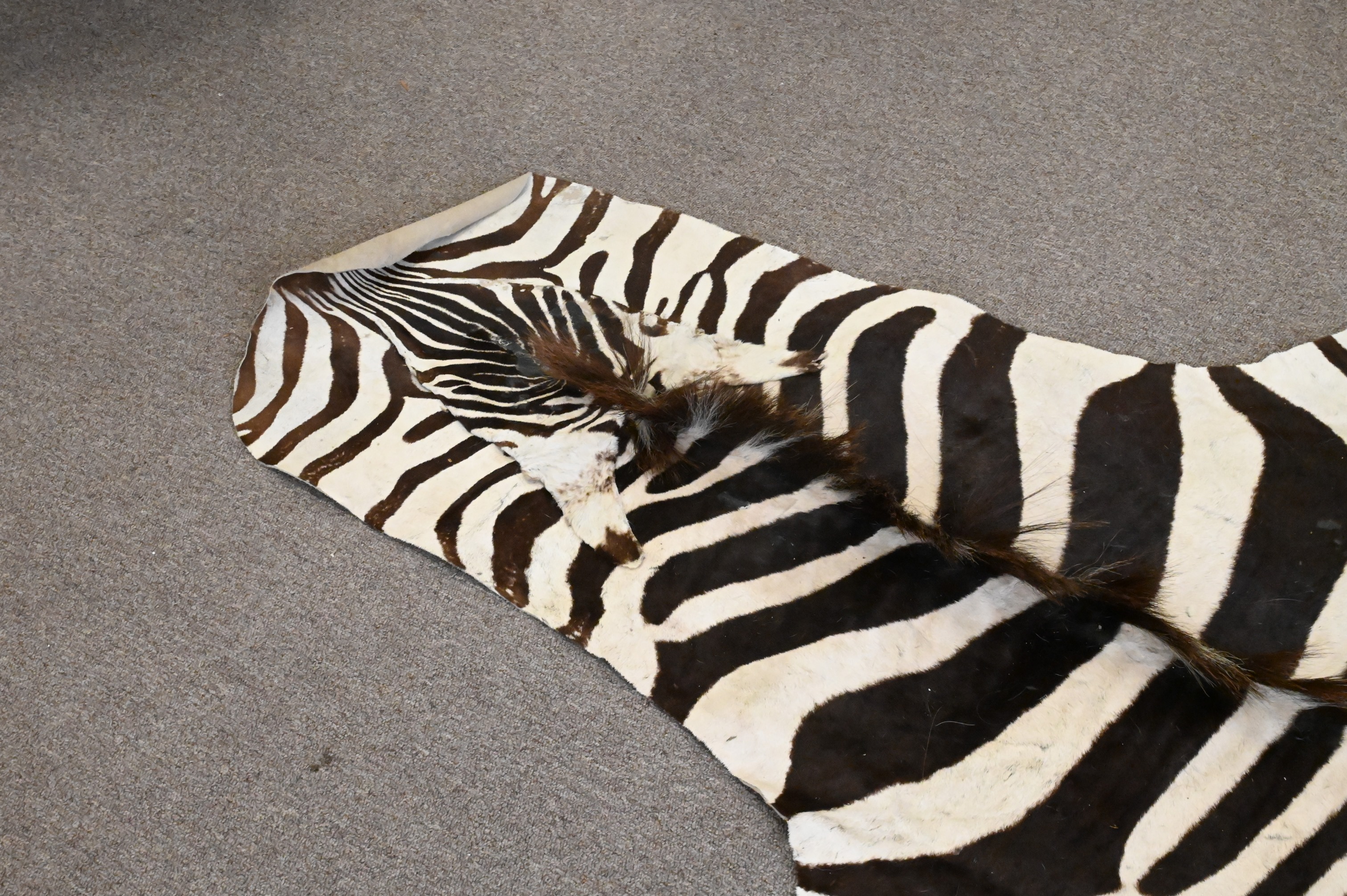 Vintage Zebra Skin Taxidermy Area Rug, 5′ 6″ x 8′ 6″, Provenance: A Private Connecticut Shoreline Collection