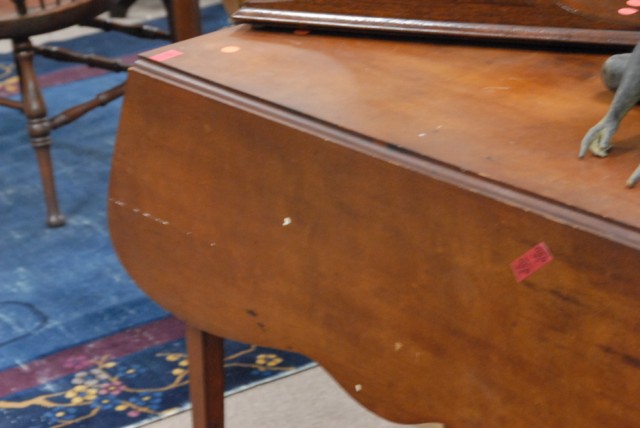 Antique drop leaf table, one drop leaf missing, circa 1790.