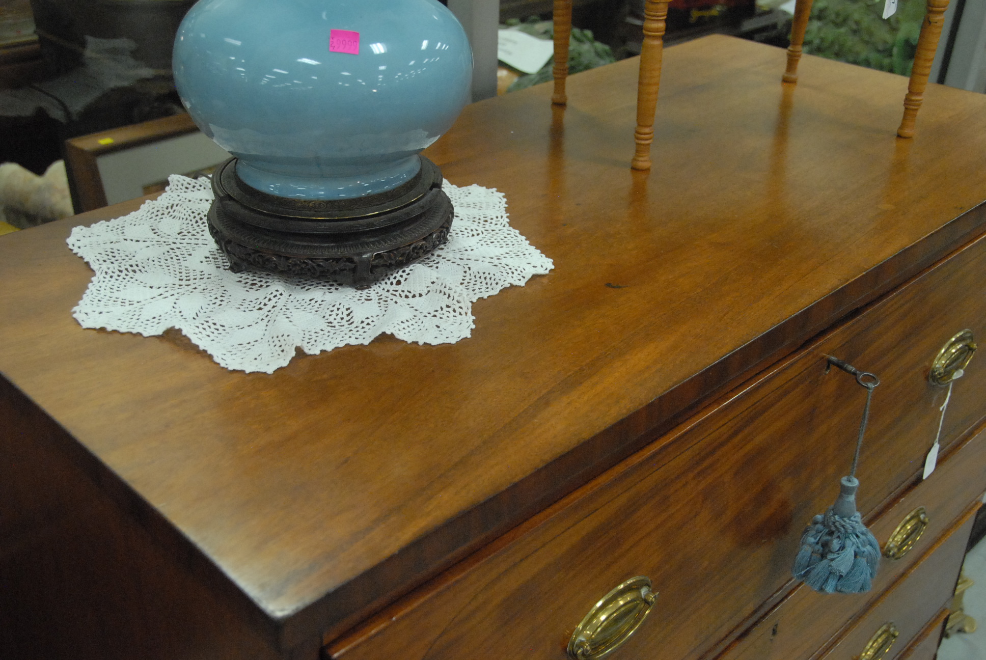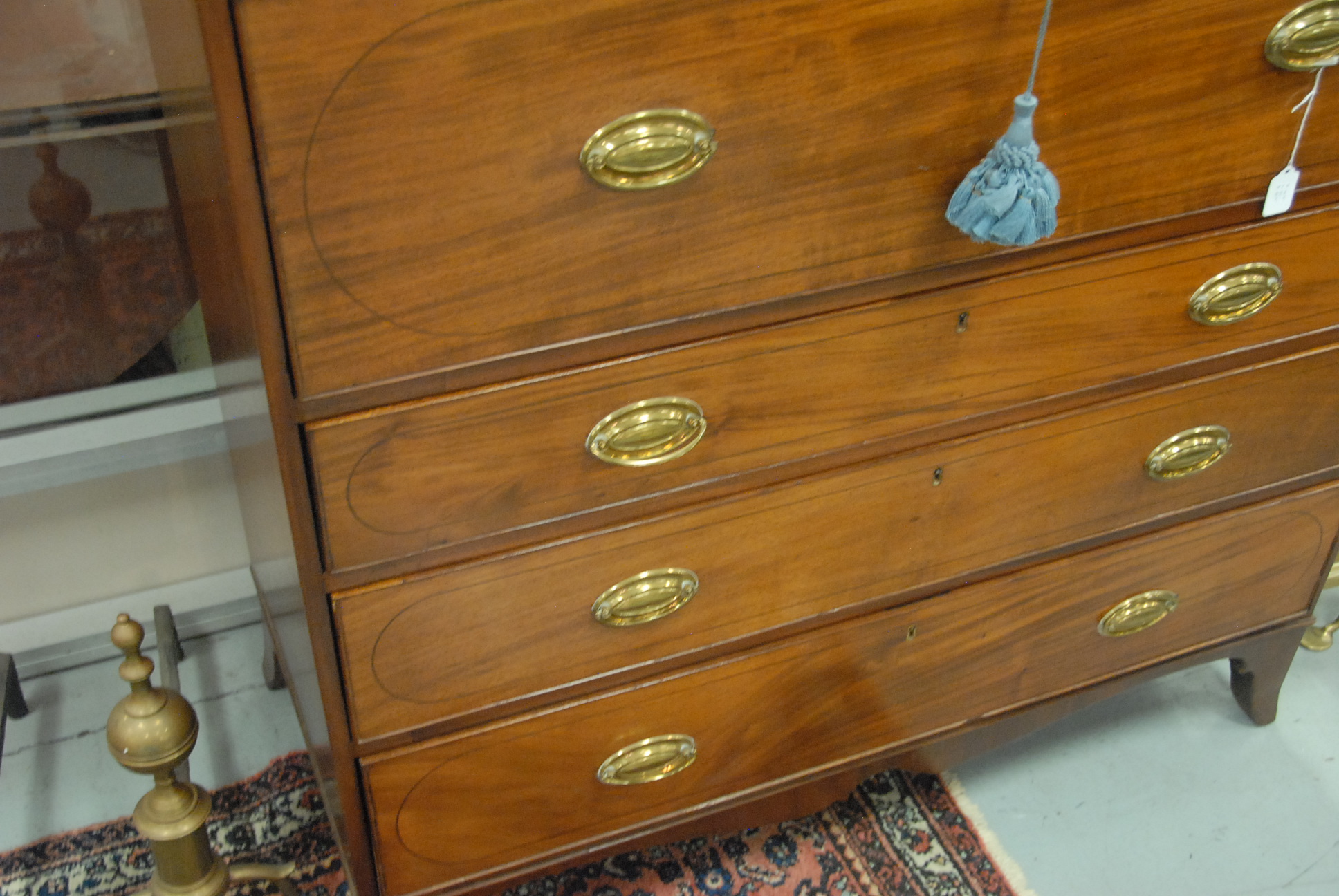 Lot 274: Federal mahogany butler’s desk having desk drawer top over three drawers set on French feet, circa 1790-1810. ht. 44 1/2 in. wd. 44 in. Provenance: Property from The Estate of W. Scott Van Alstyne of Essex, Connecticut.