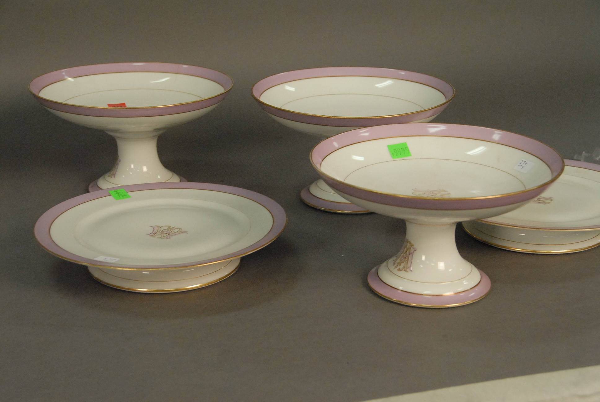 Lot 274: Five piece lot including three tall compotes and two short compotes, probably Paris or English porcelain late 19th century.