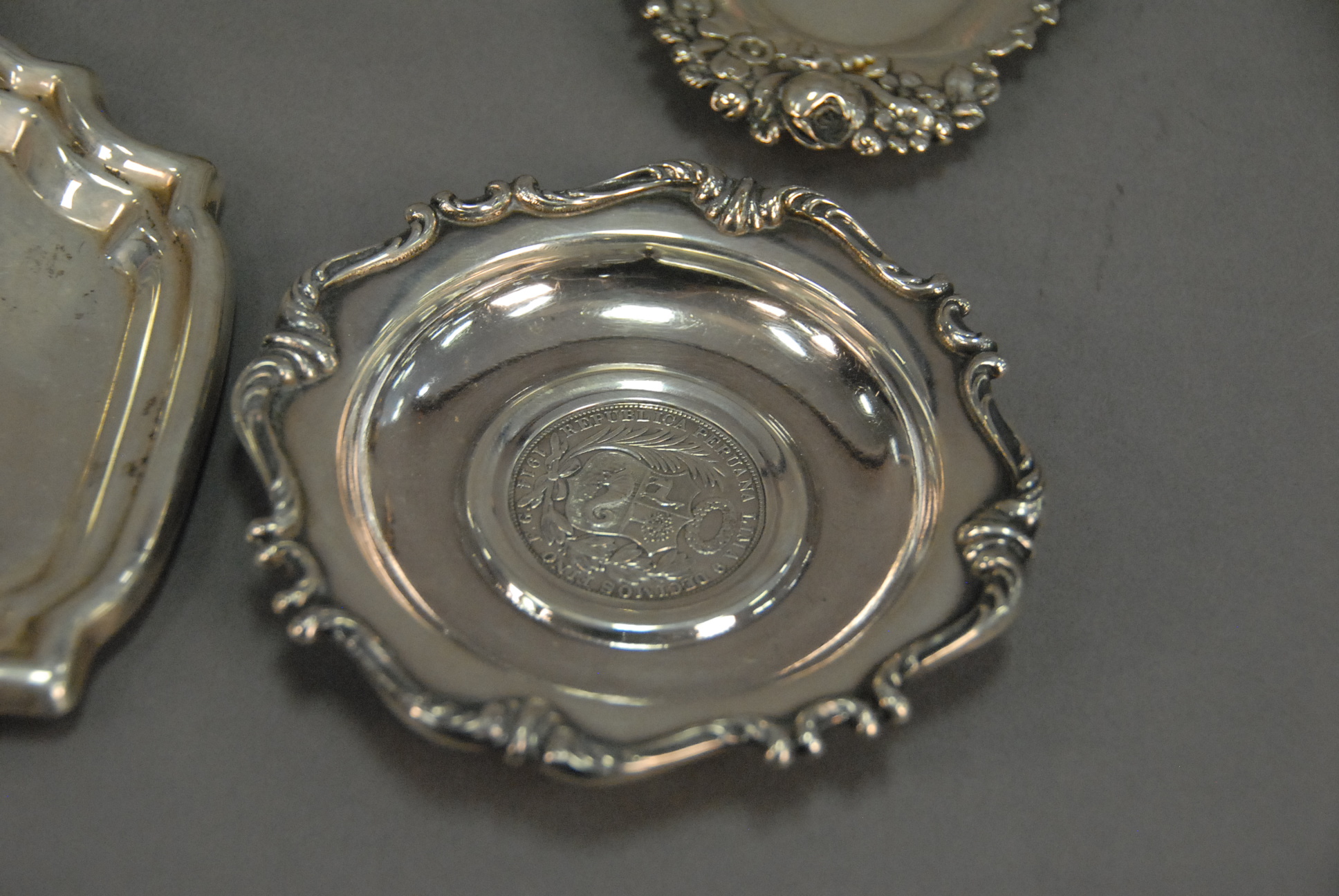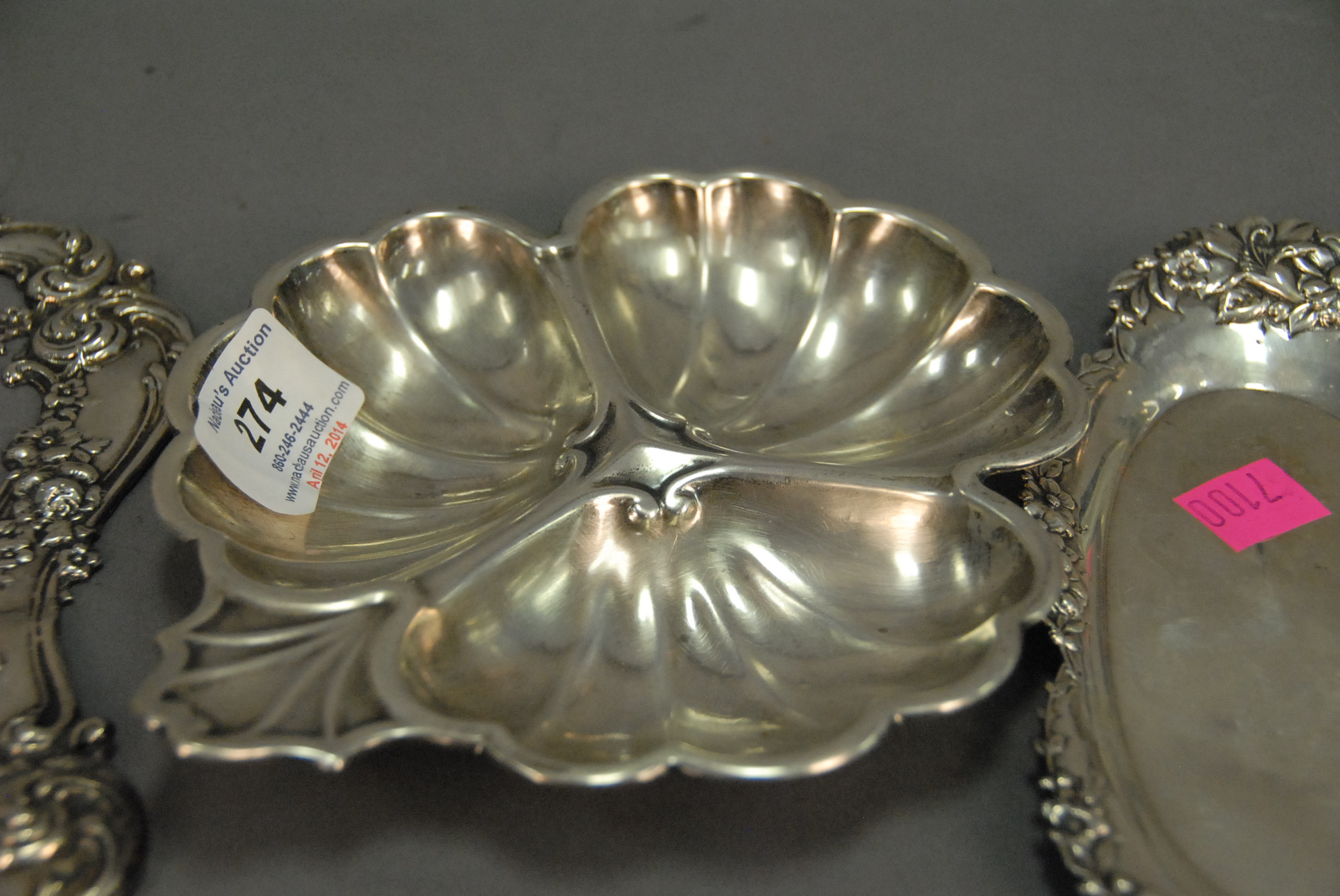 Lot 274: Four piece lot to include three sterling dishes, along with a sterling frame cover. 16.2 t oz.
