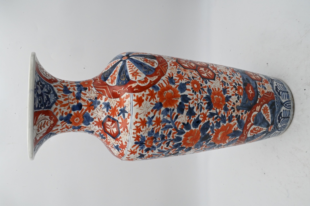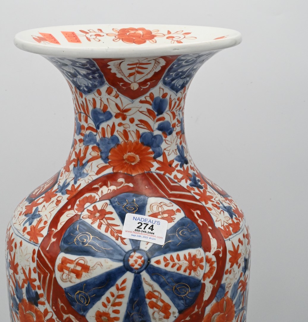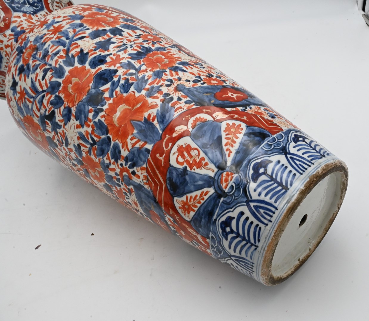 Large Japanese Imari Vase, painted in underglaze blue with flowers on red ground, 19th century or later, height 25 inches.