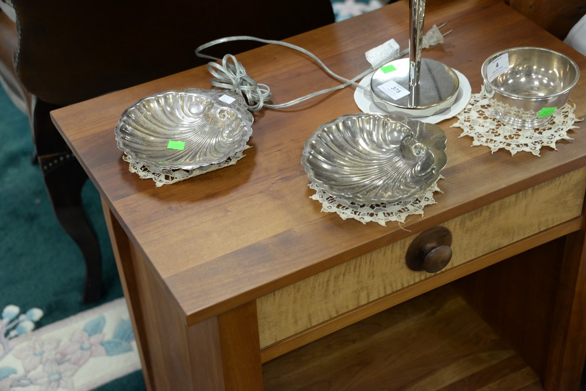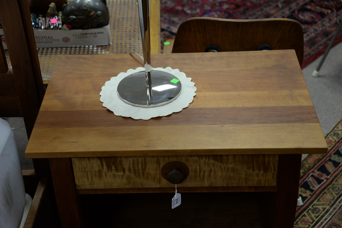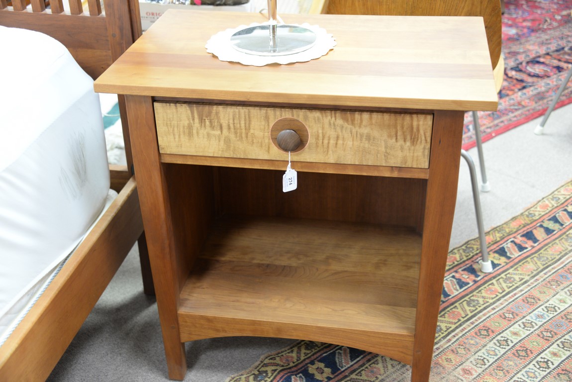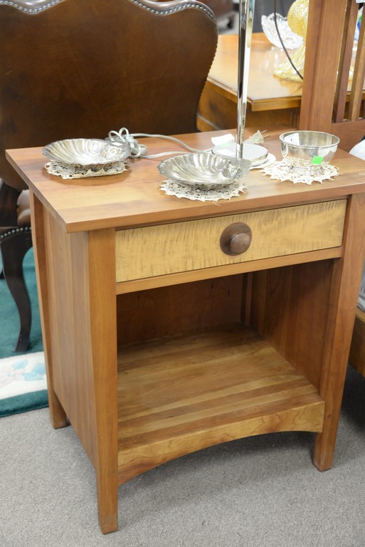Lot 274: Pair of Stickley cherry night tables with figured maple drawer fronts in soft finish retail 2,200. ht. 27 1/2 in. wd. 26 in. dp…