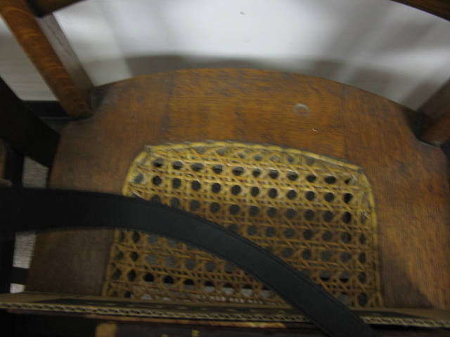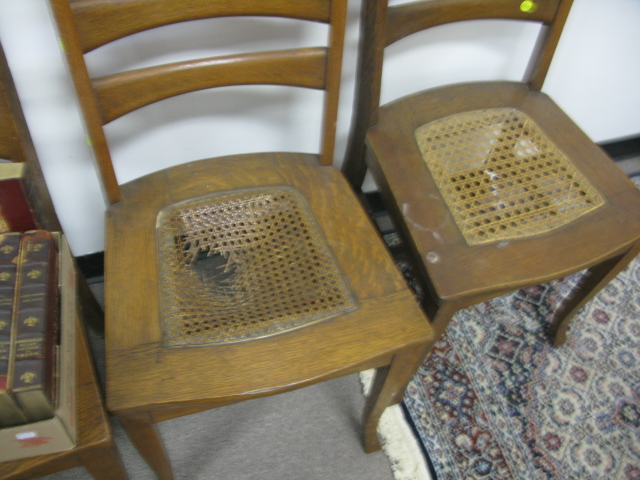 Set of 6 oak Victorian caned seat chairs.