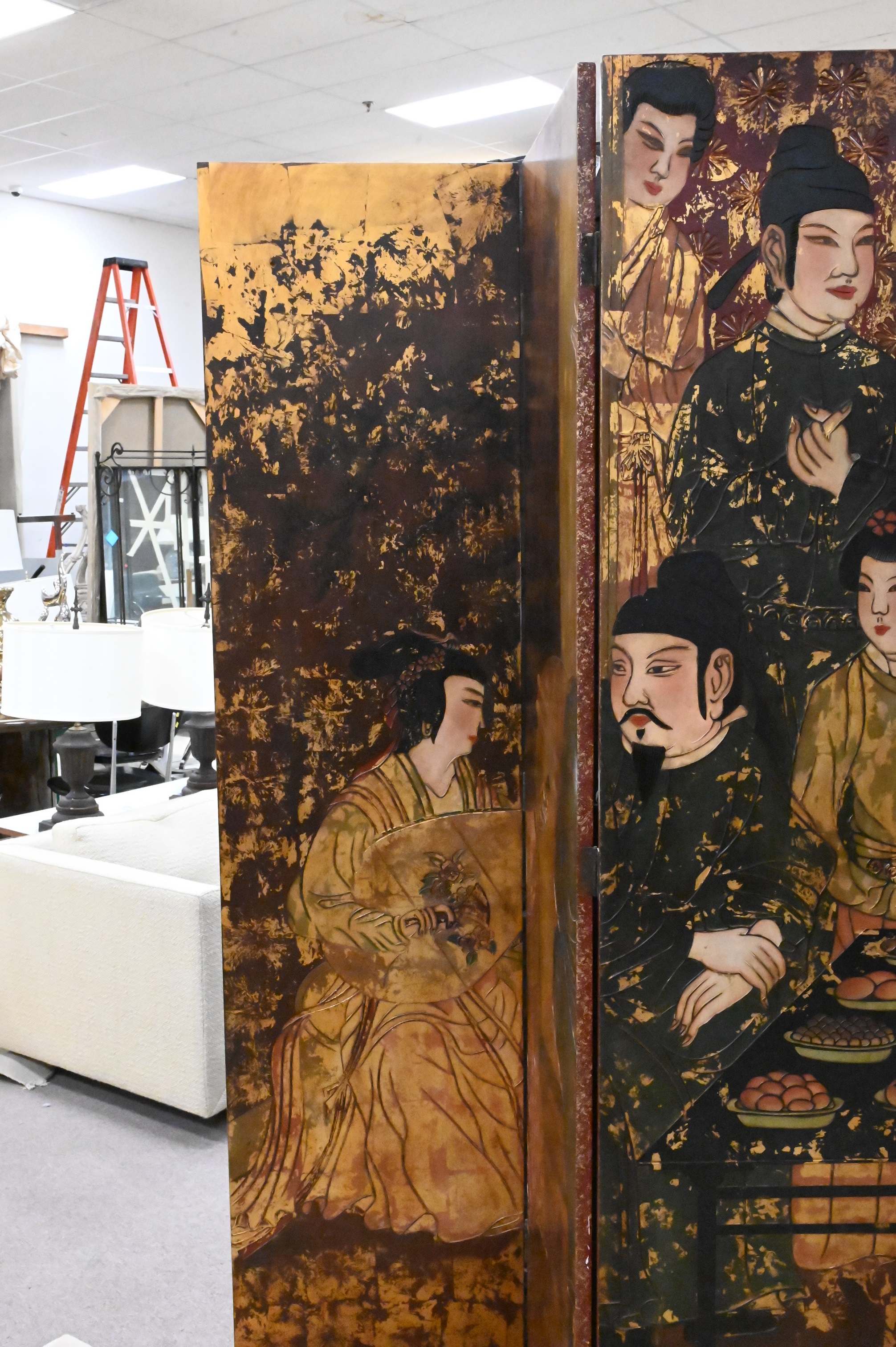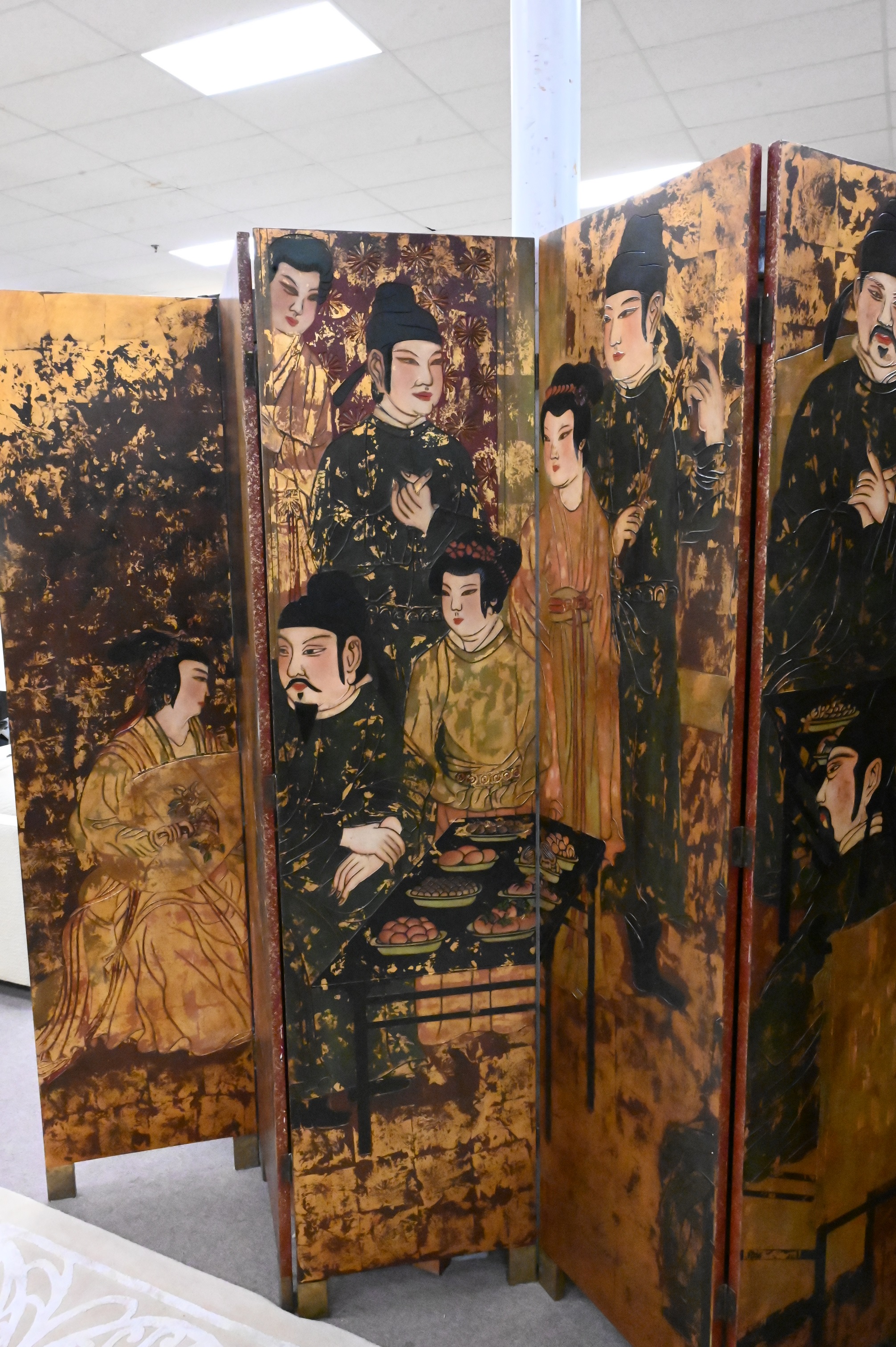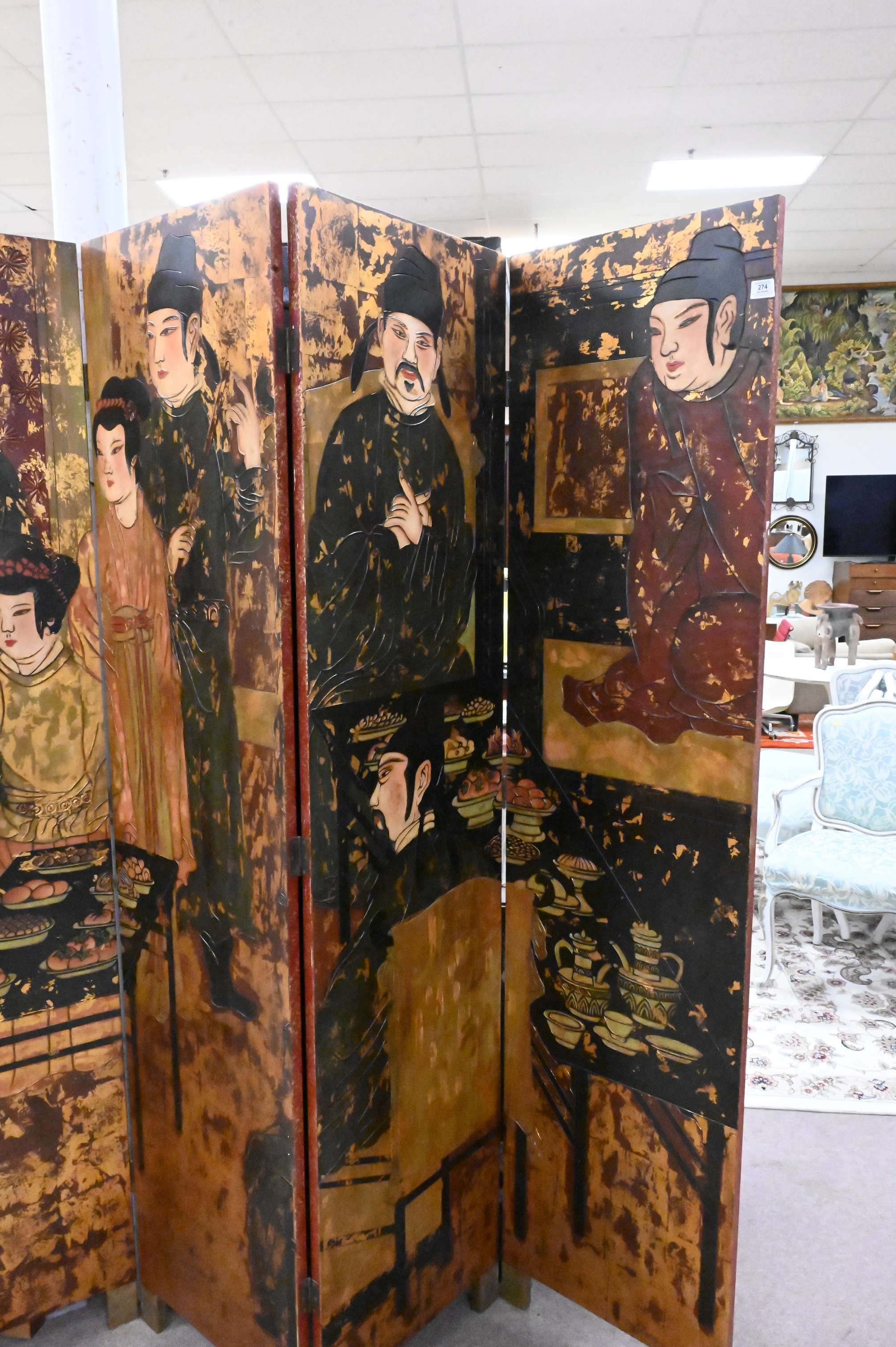 Six Fold Asian Screen, height 83 inches, width 120 inches.