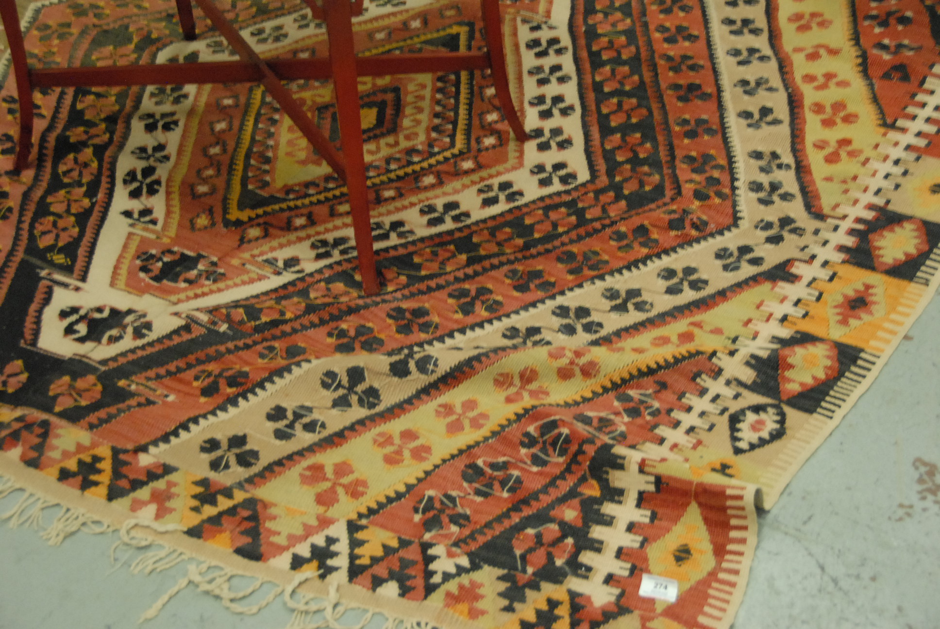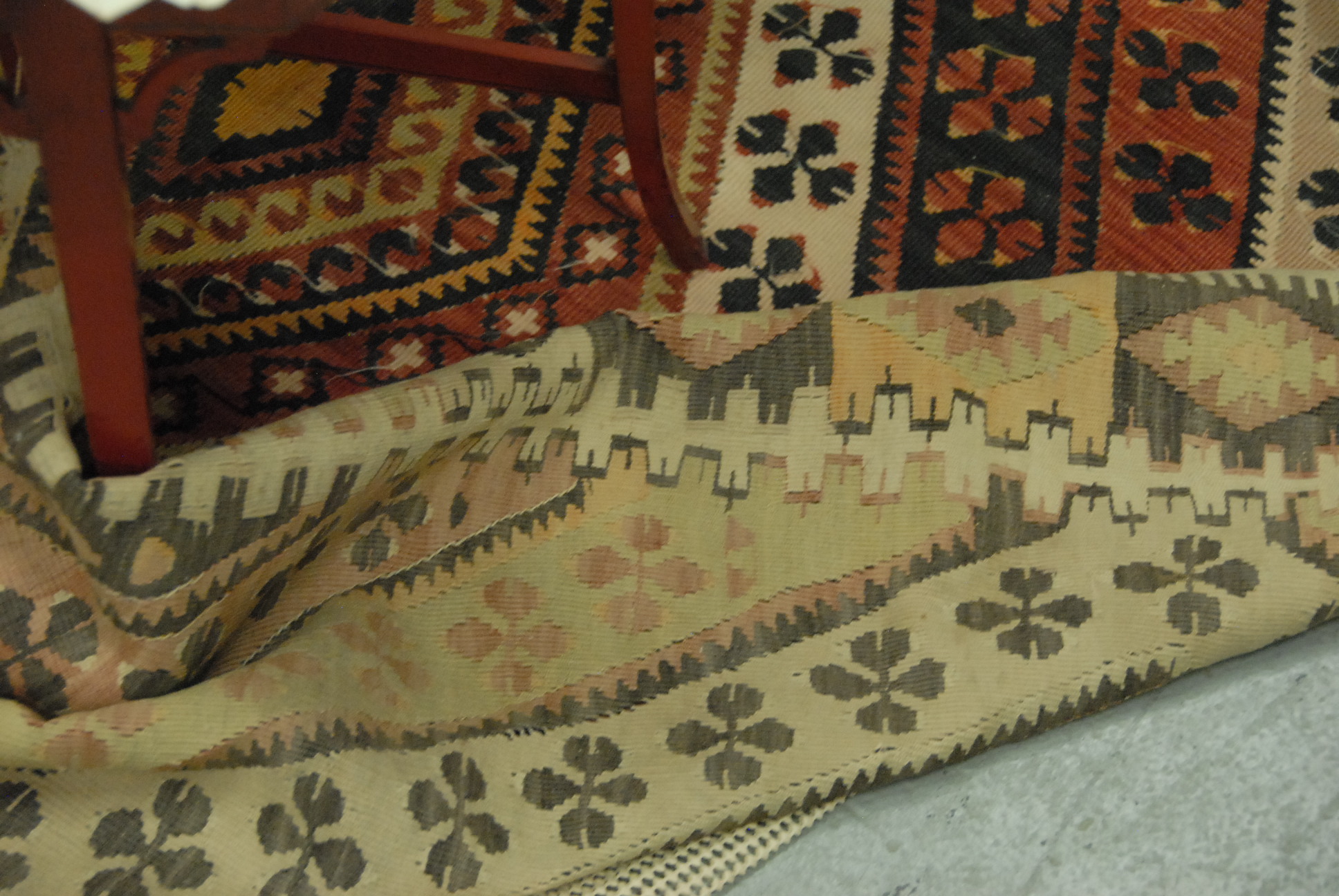 Two part flat weave rug, 5’7 x 15’5.