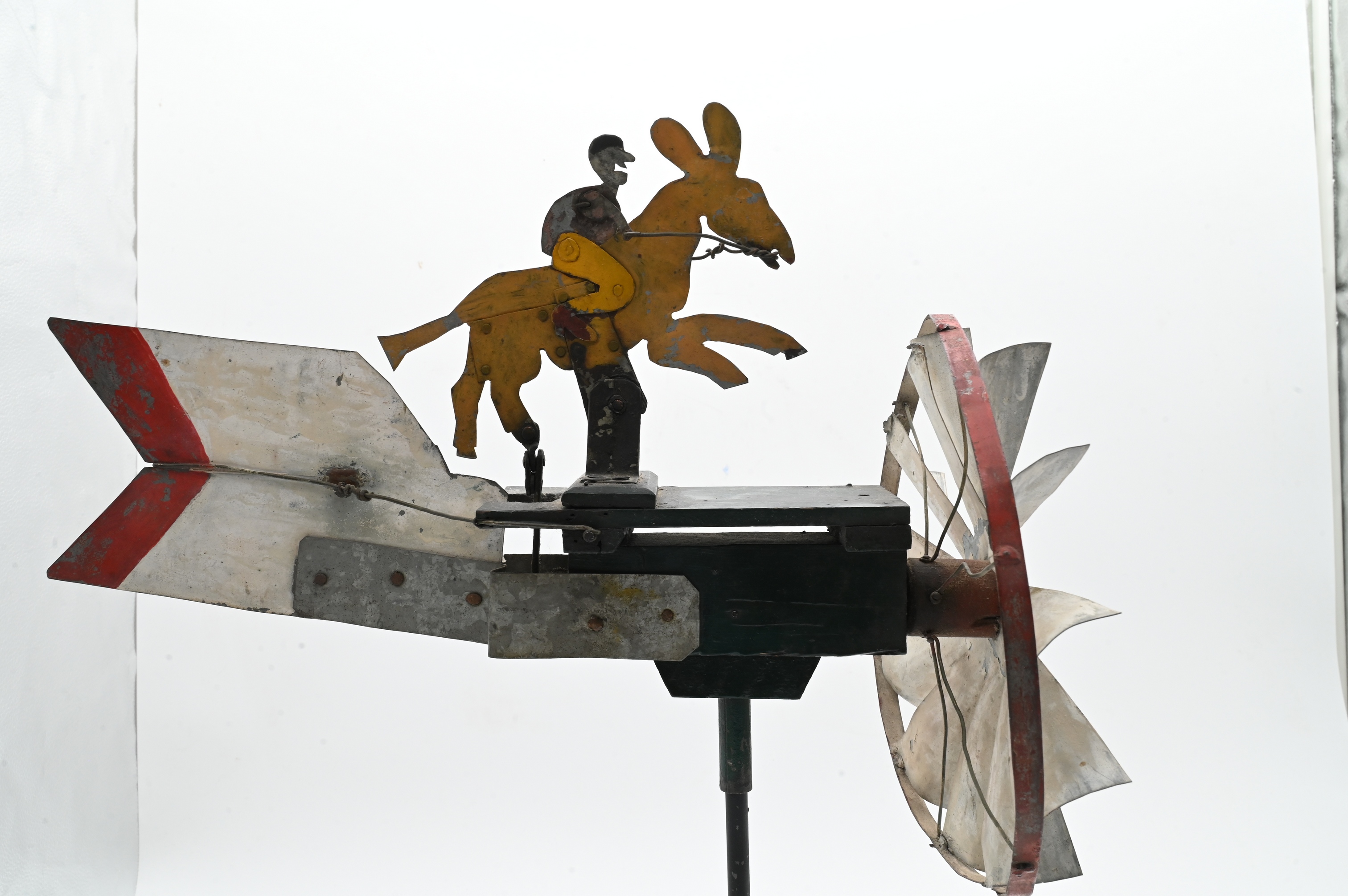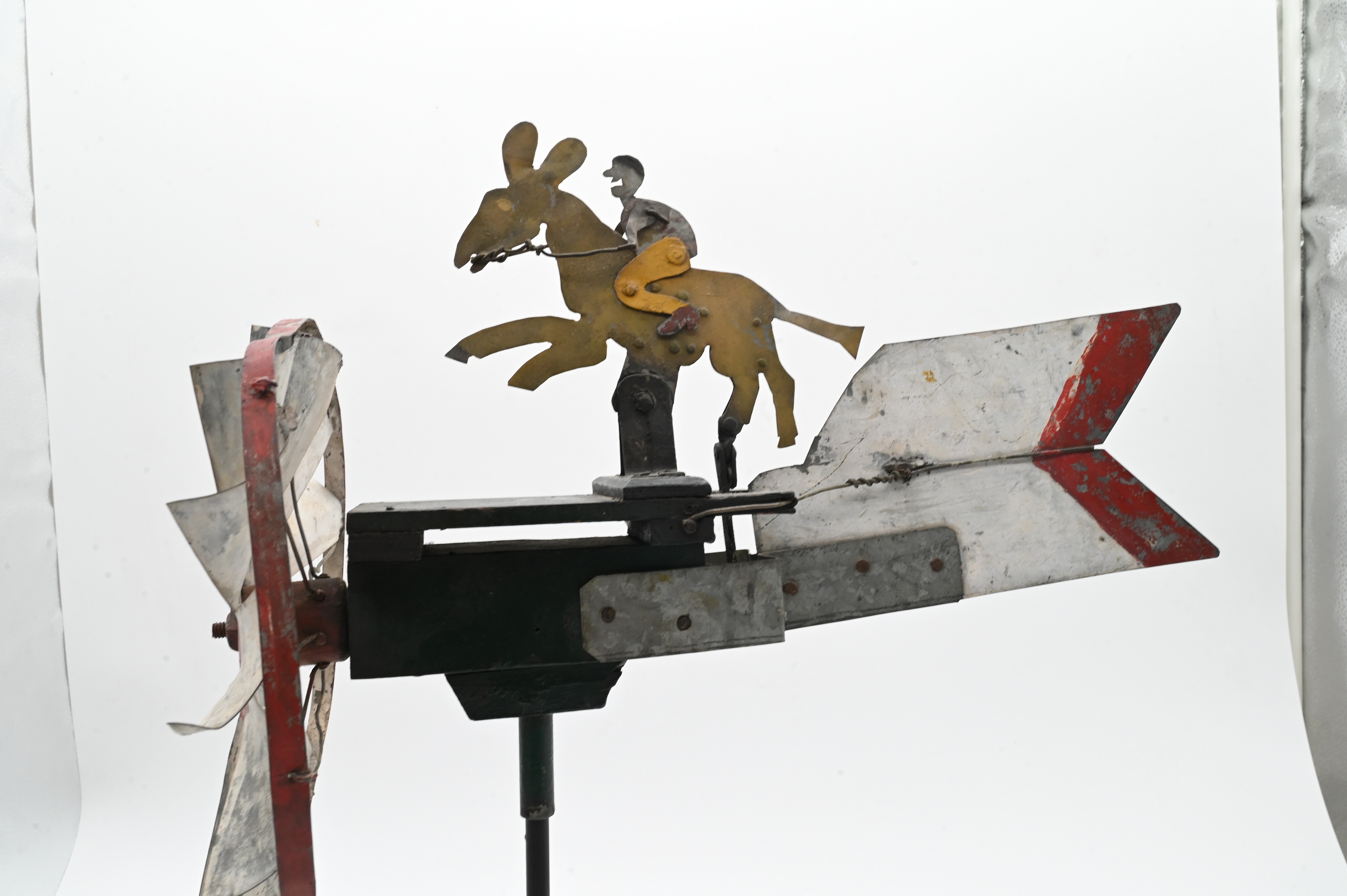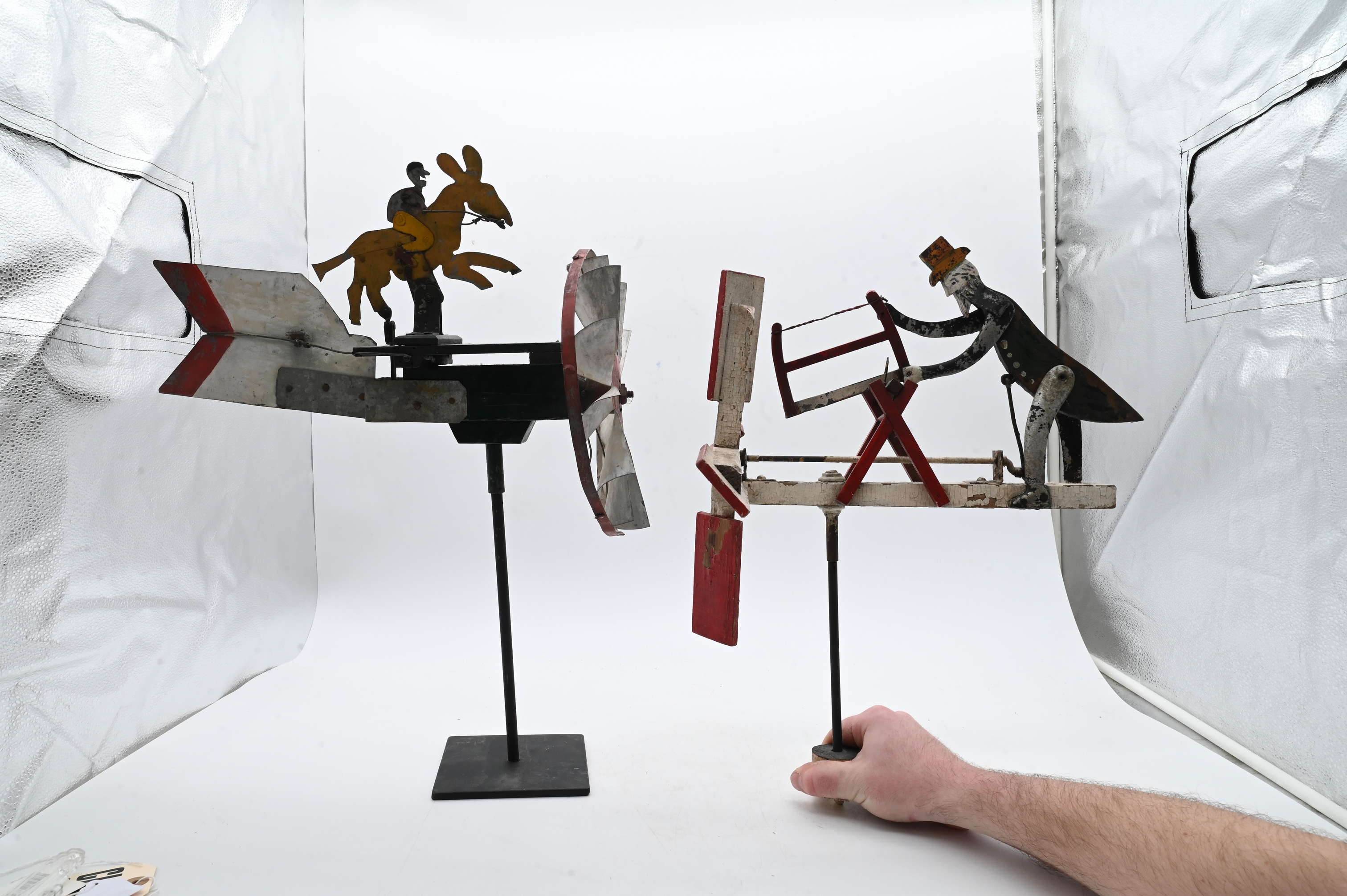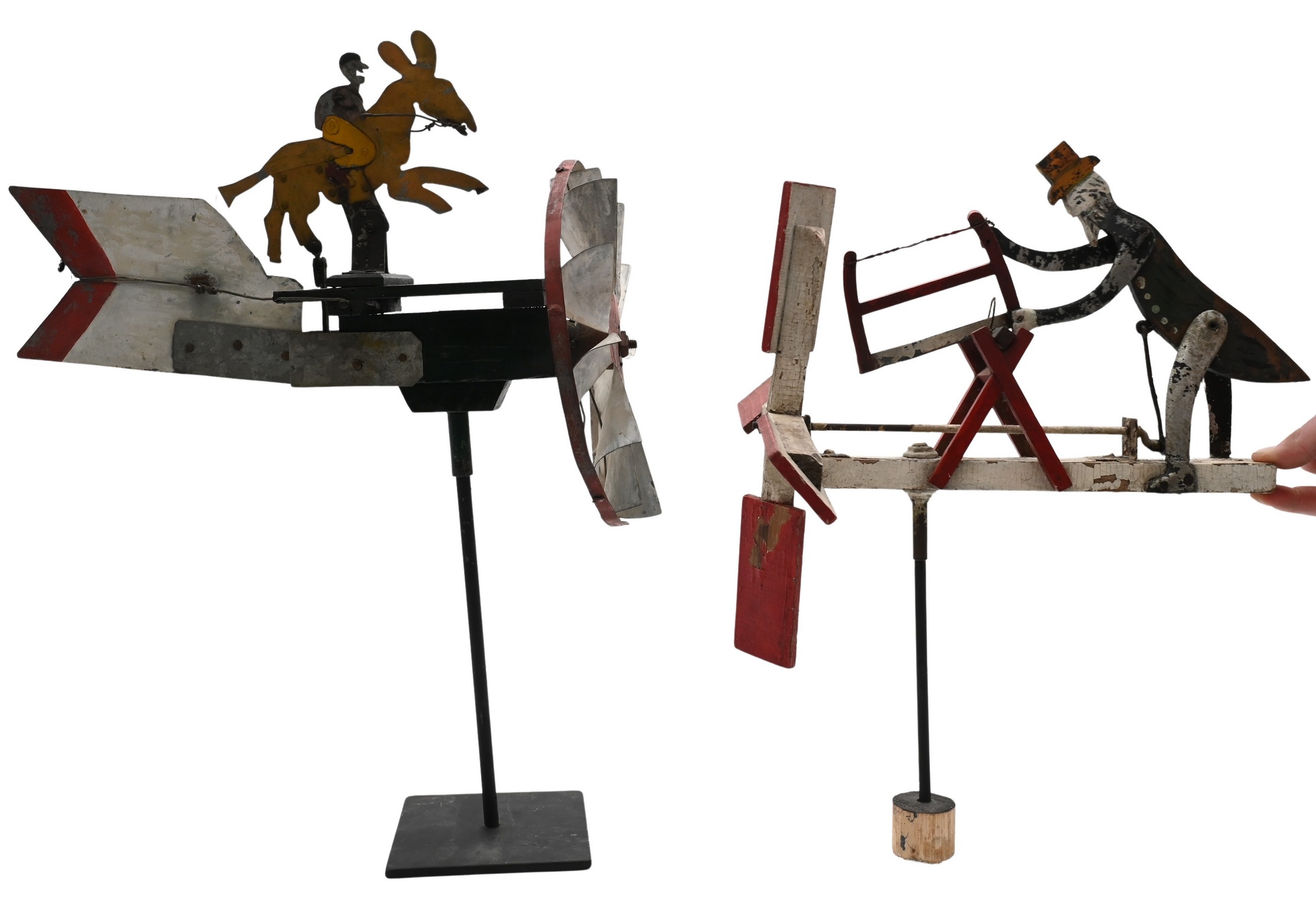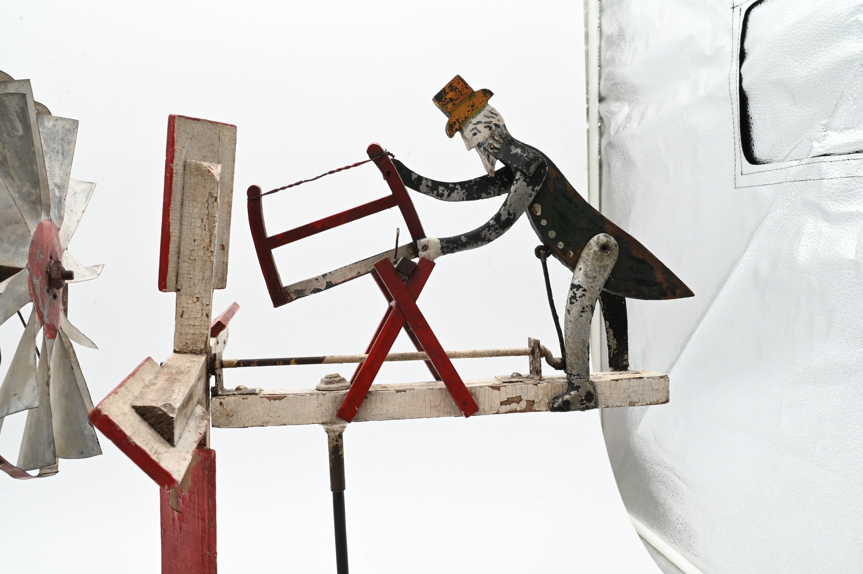 Lot 274: Two Piece Lot Wood Whirligig of Man Sawing Wood