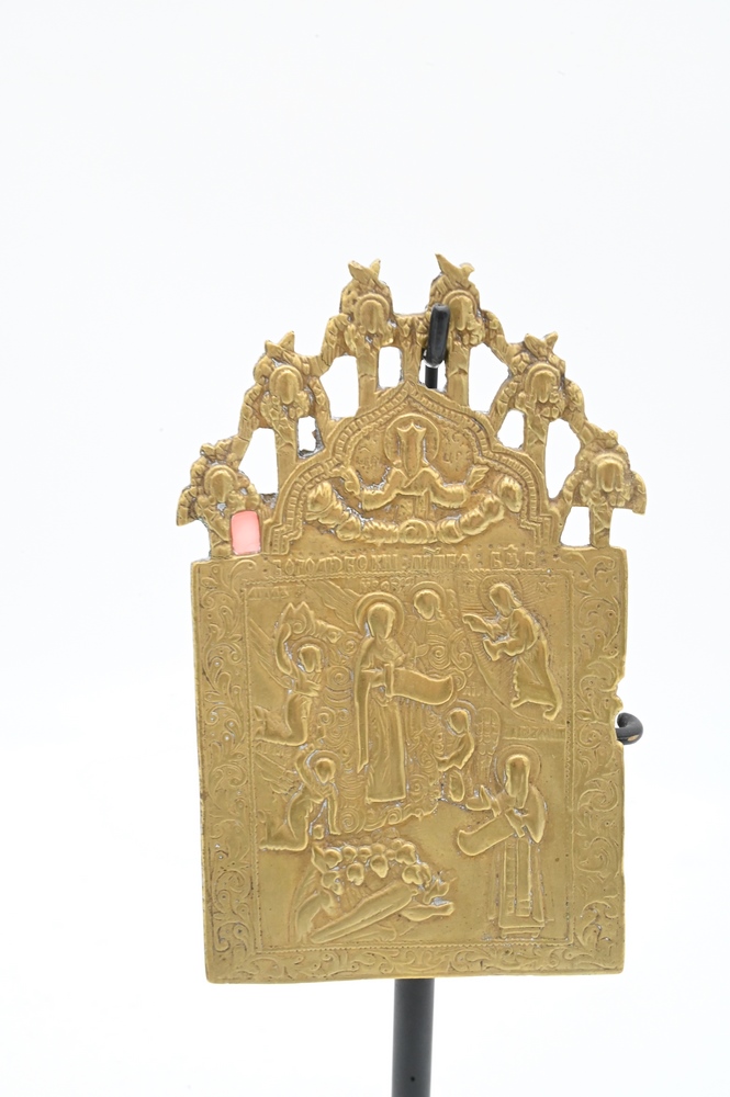 Bronze Icon, having plaque on stand, 17th century or later, 5″ x 3″.