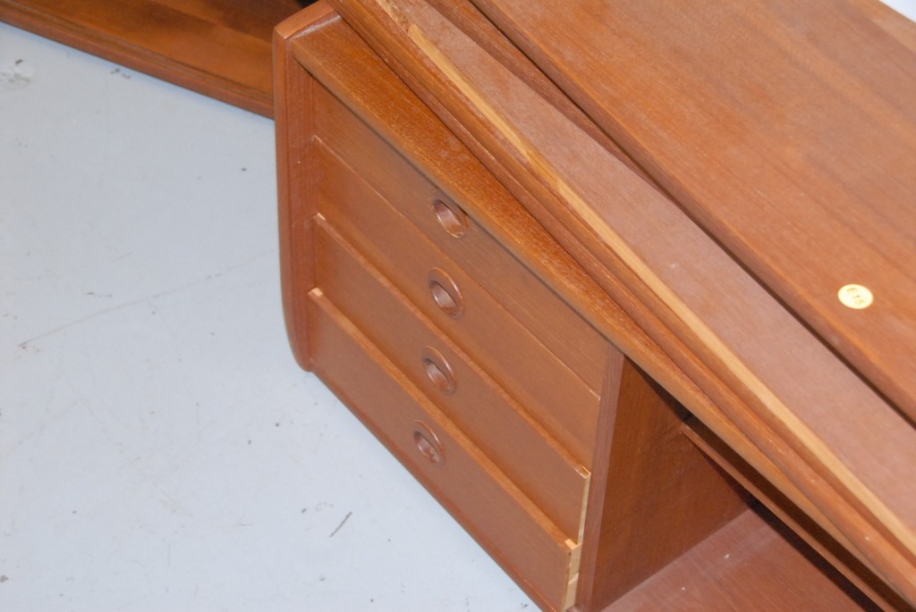 Lot 275: Hanging danish teak wall unit with hangers, marked Made in Norway, hanger ht. 63, cabinet wd. 31.