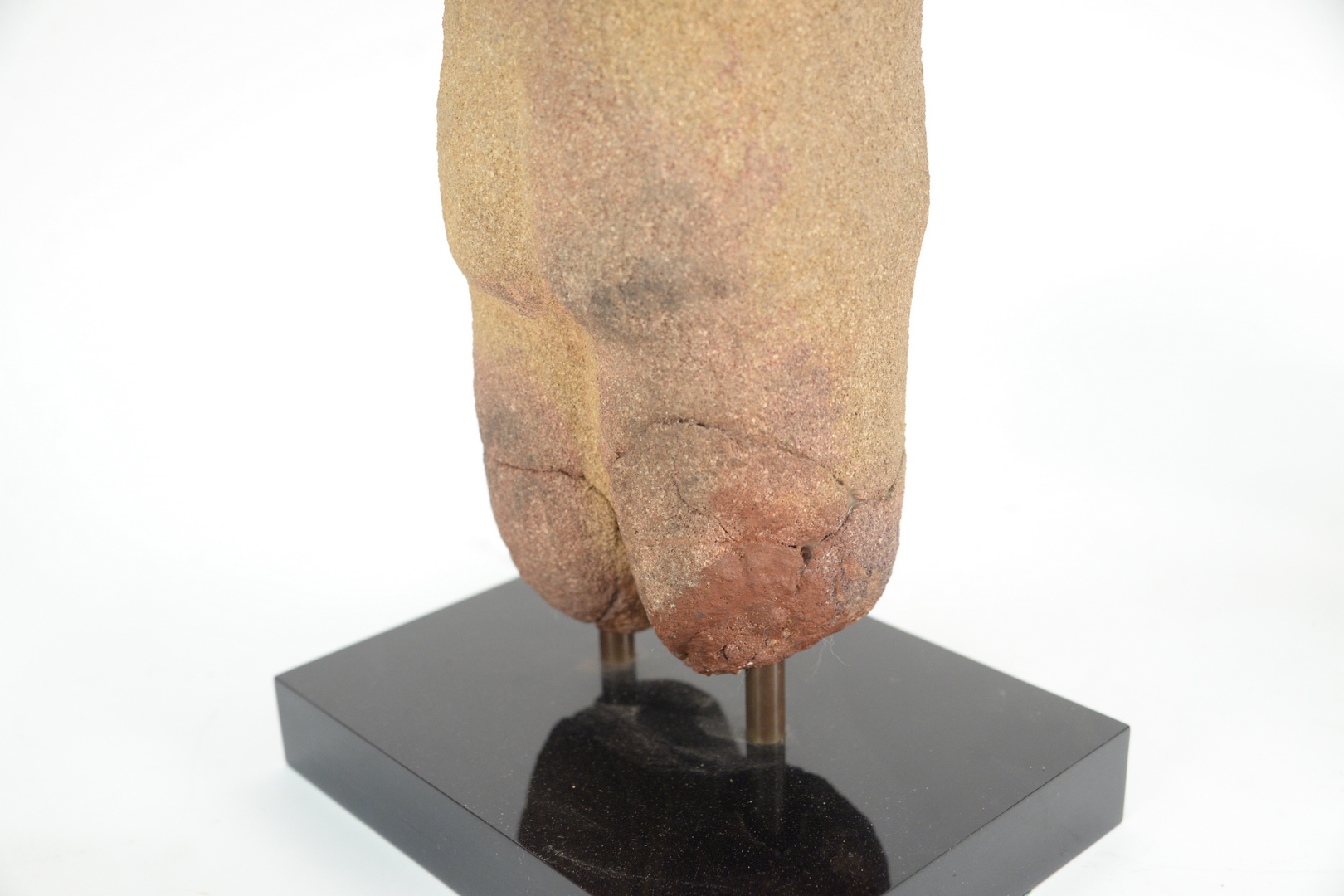 Large Stone Pre-Columbian Standing Figure, on black base, height 20 inches.