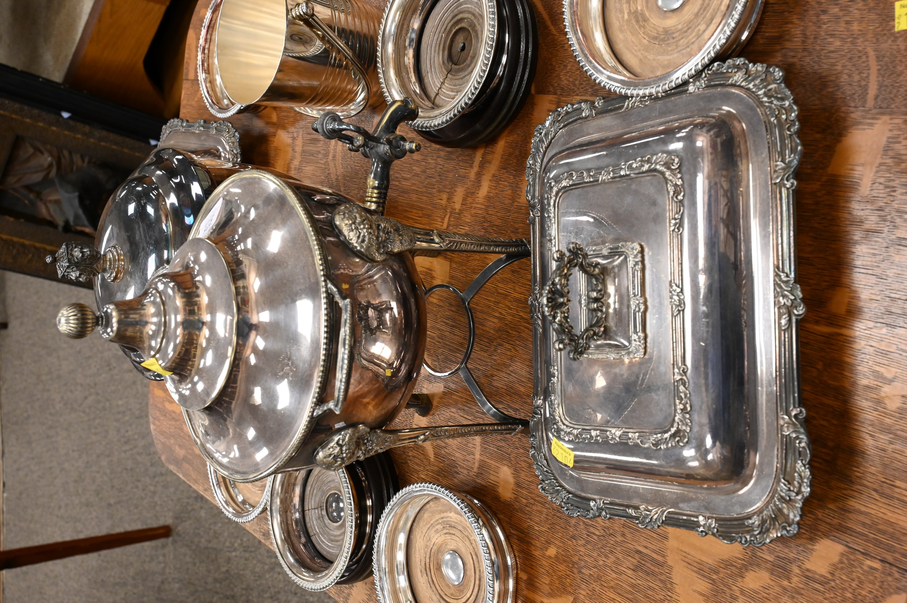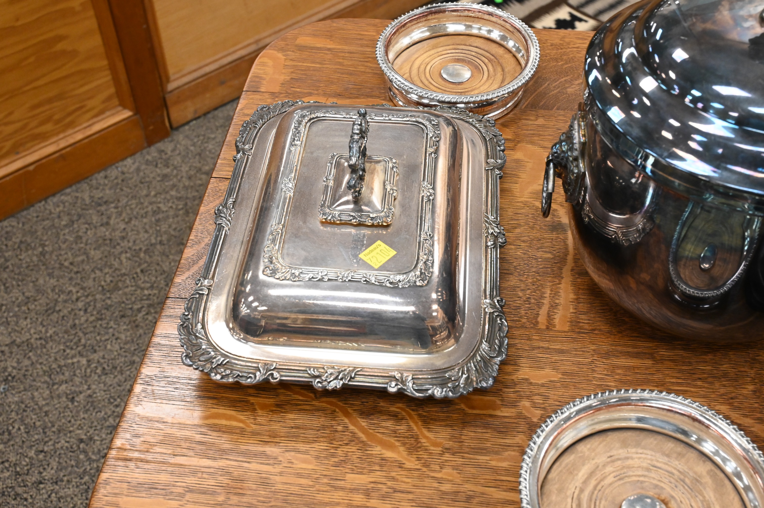 to include pair of covered vegetable dishes four pairs of wine coasters, Christofle bucket, ice bucket, and urn with spigot