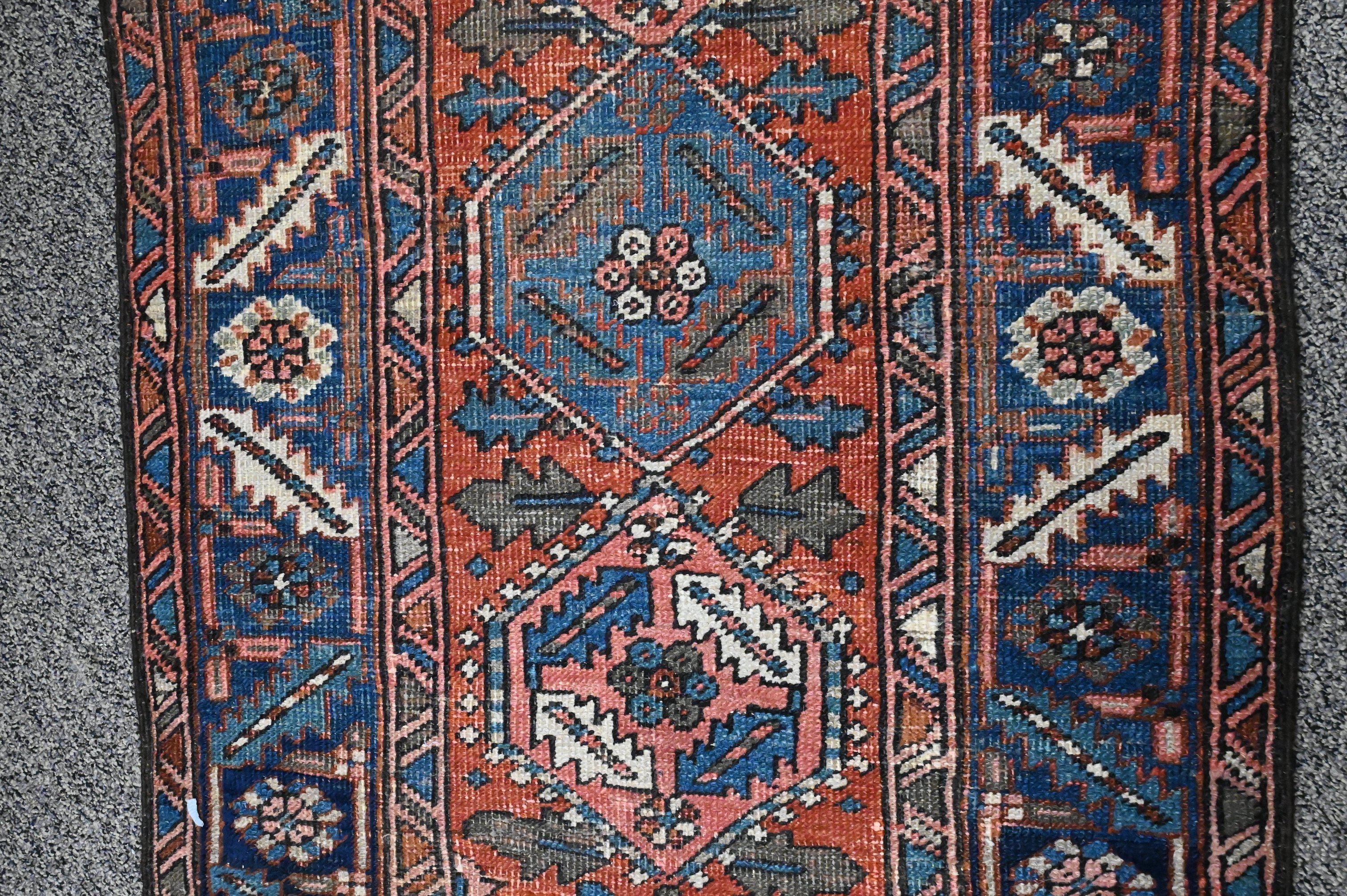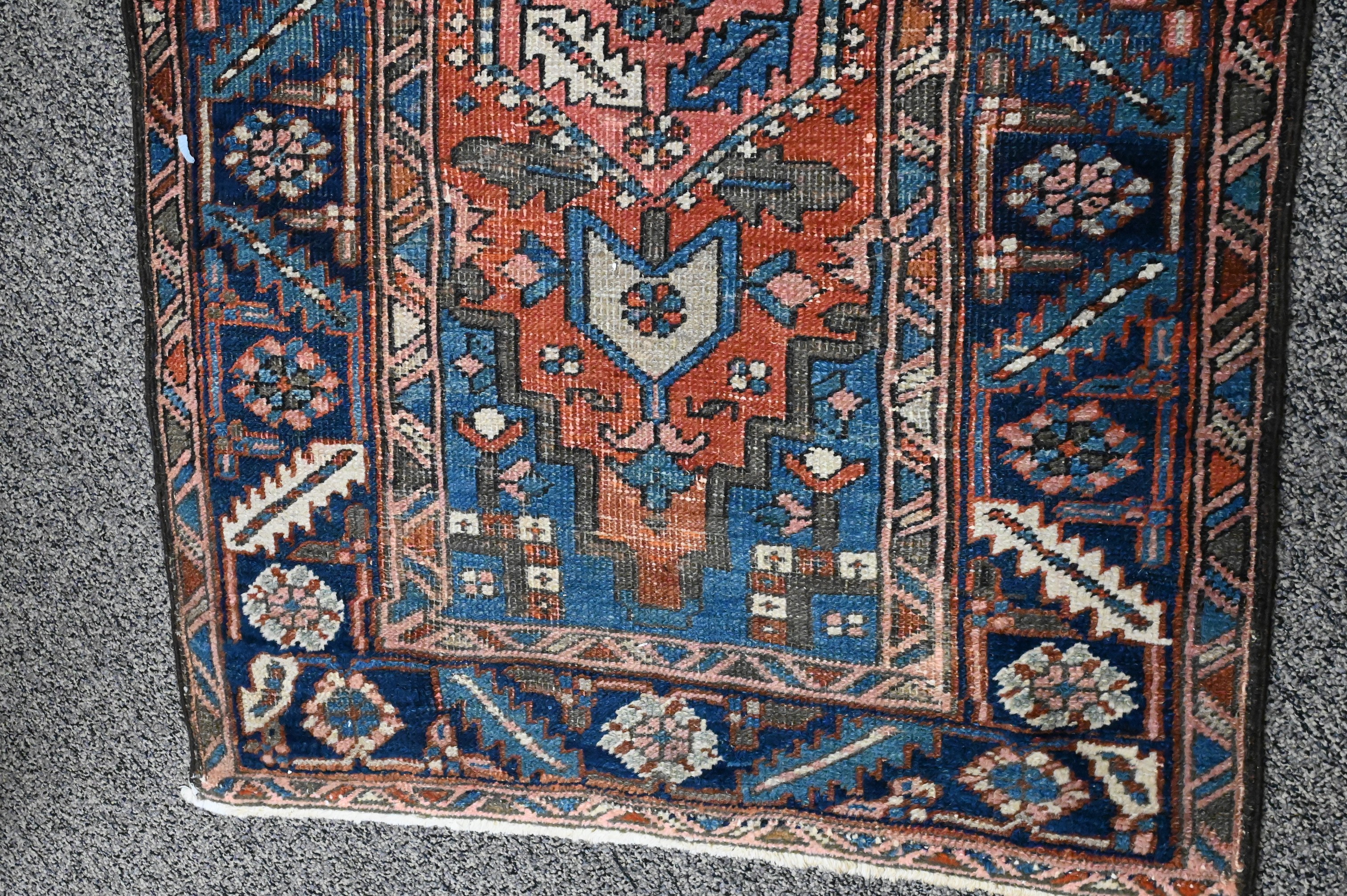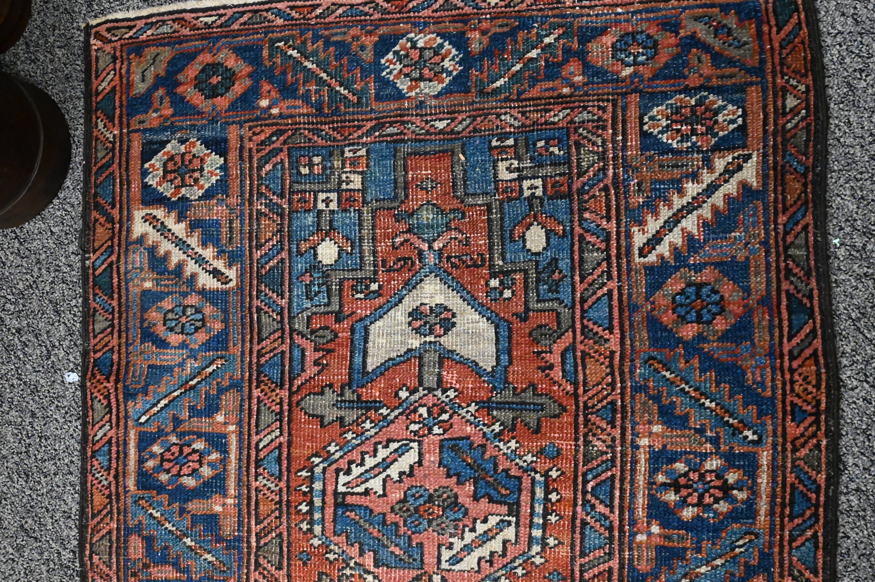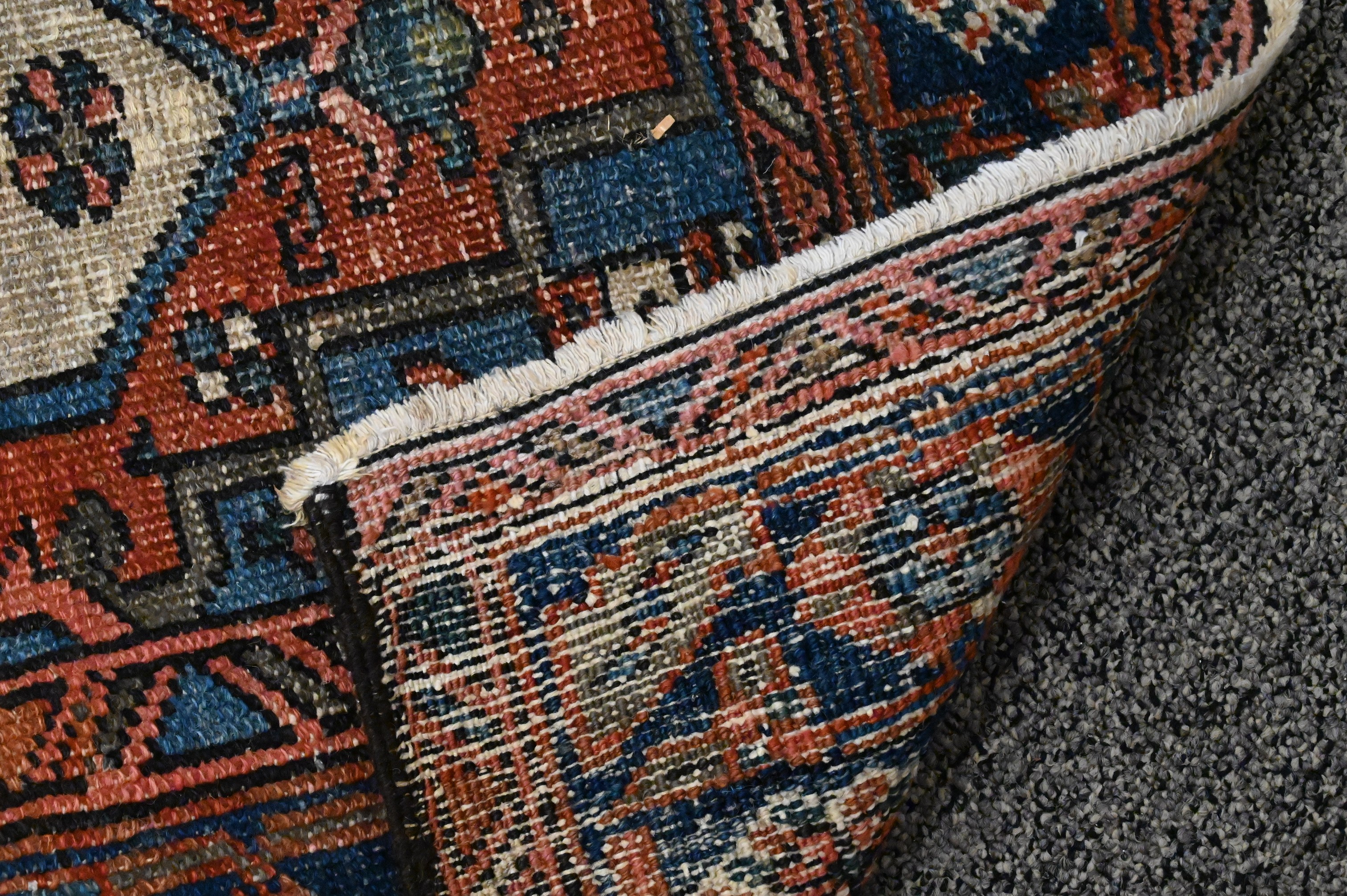 A Persian-style wool carpet with an ivory ground and repeating floral motifs within a contrasting border. Traditional palette of rust-red, cream, and muted greens.