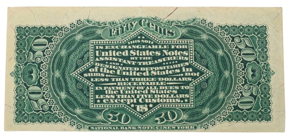 One Fourth Issue 50 Cent Fractional Currency, paper bank note; along with a 1863 Lincoln American Bank Note.
