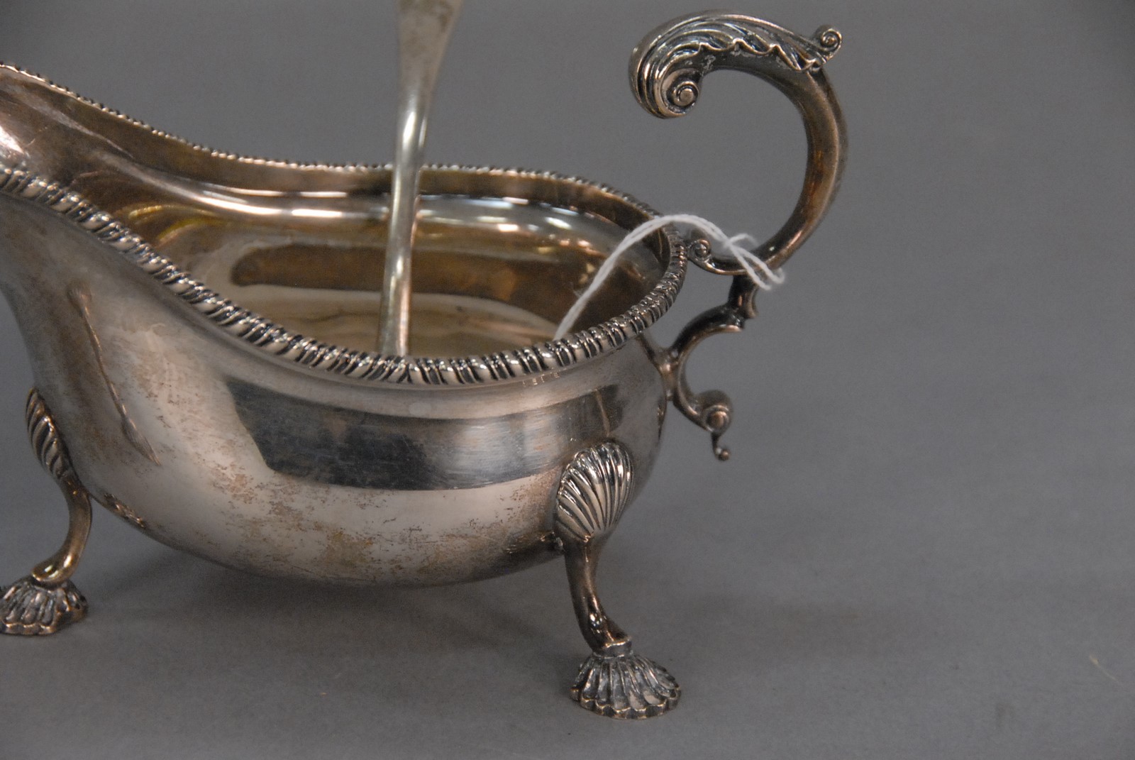 Pair of Crichton silver gravy boats and ladles, each having scrolled handles and scallop legs and feet. 25.3 t oz. Provenance: Property from The Estate of Margaret Oliphant of Old Lyme, Connecticut