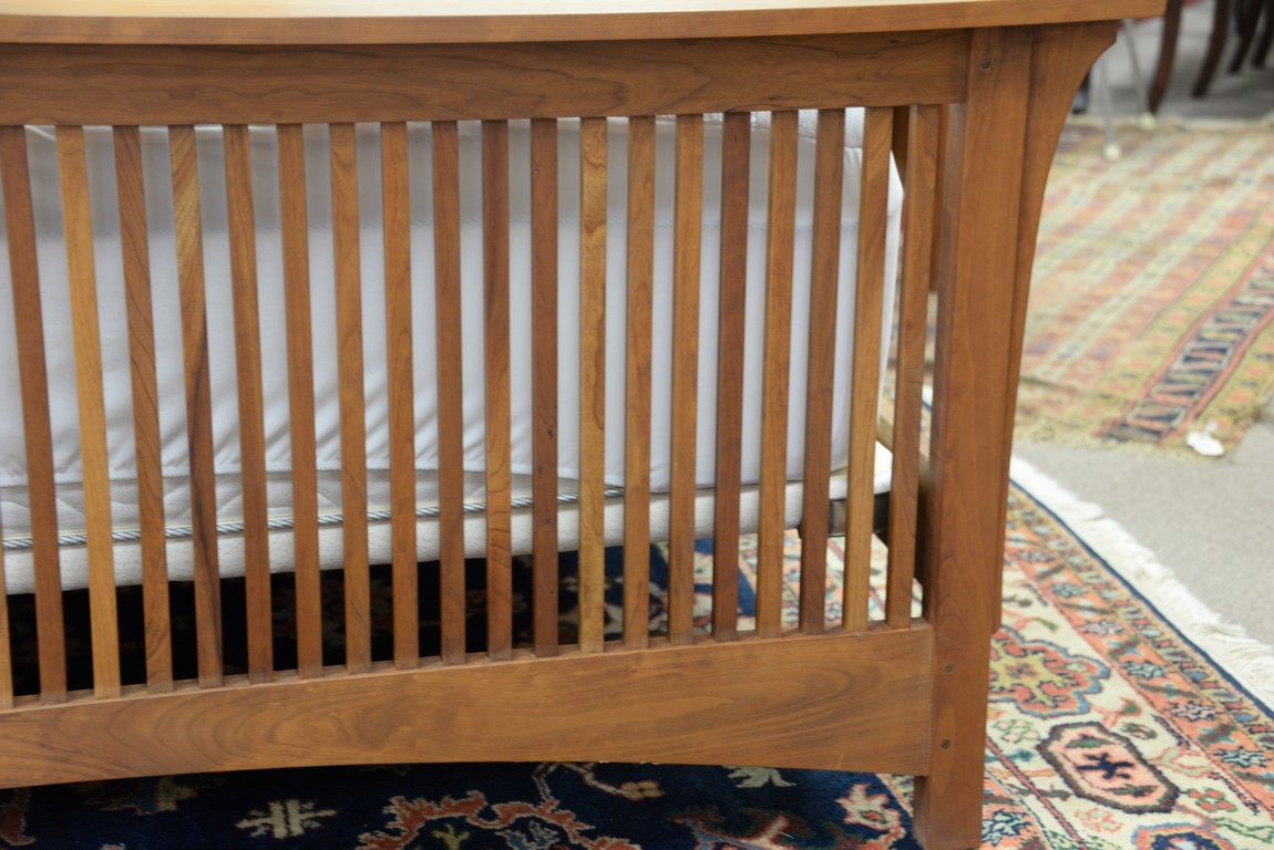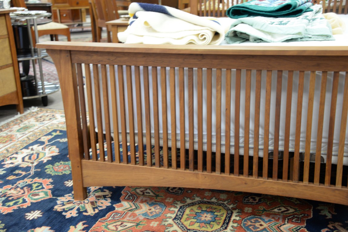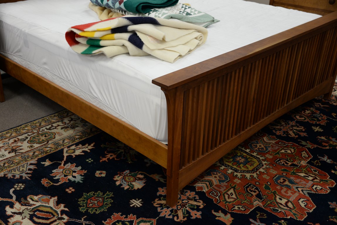 Stickley cherry king size spindle bed, complete, with soft finish, plus mattress replacement price 5,069. ht. 45 1/2 in. wd. 87 in.