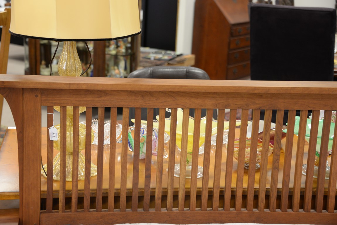 Lot 275: Stickley cherry king size spindle bed, complete, with soft finish, plus mattress replacement price 5,069. ht. 45 1/2 in. wd. 87 in.