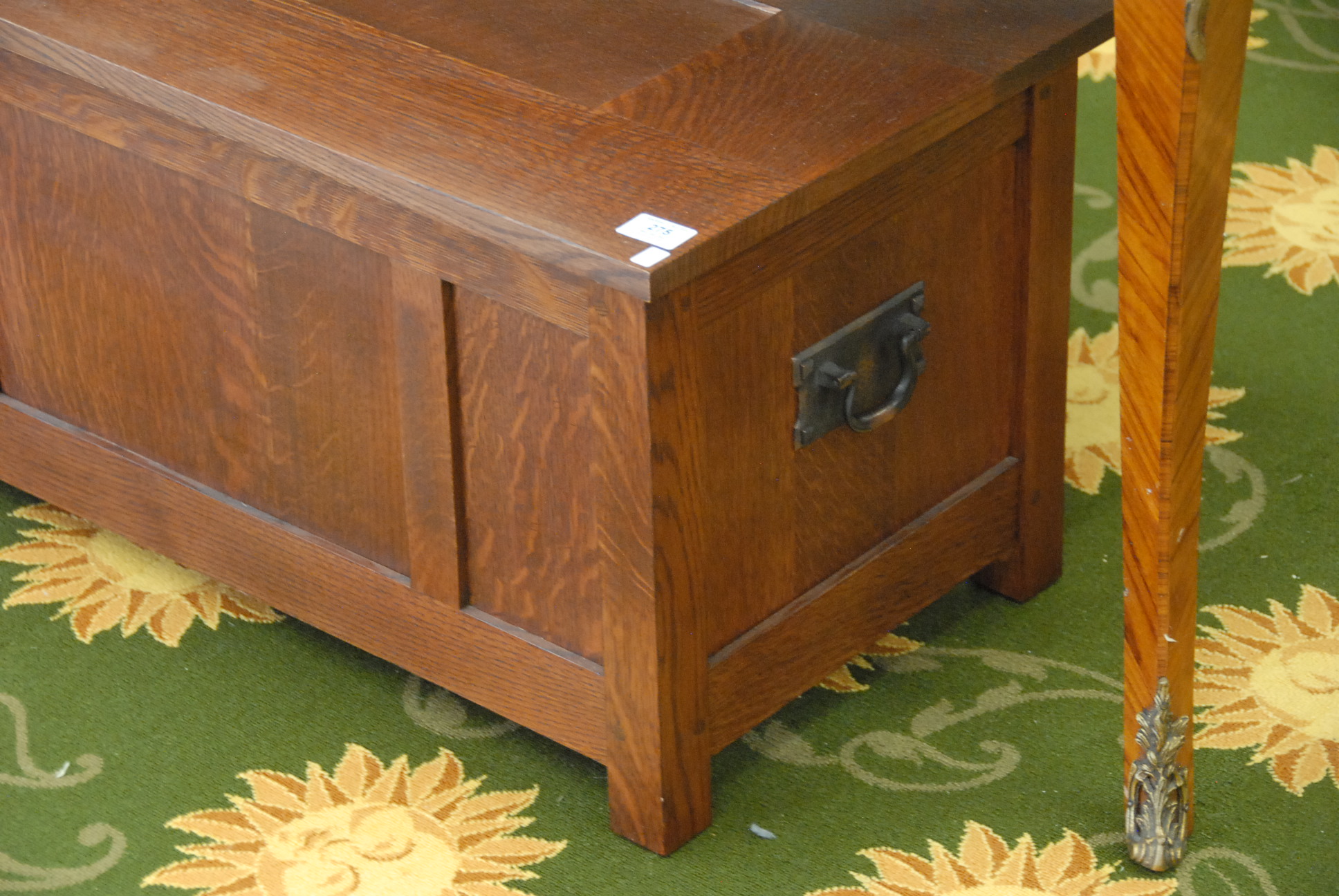 Lot 275: Stickley oak lift top chest signed Stickley, late 20th century, ht. 16 in. wd. 32 in. dp. 17 in.