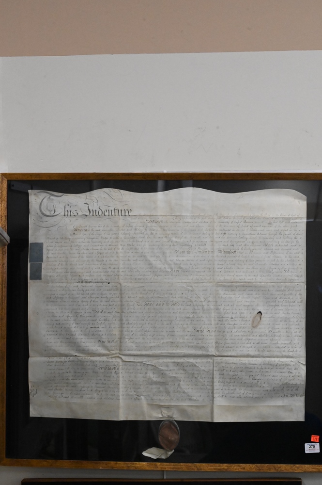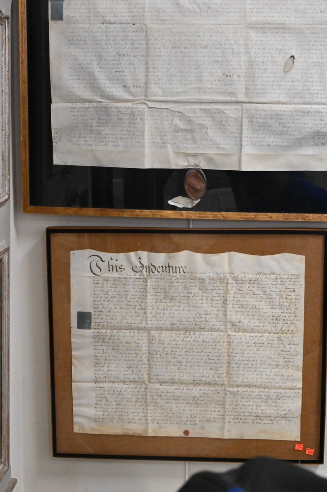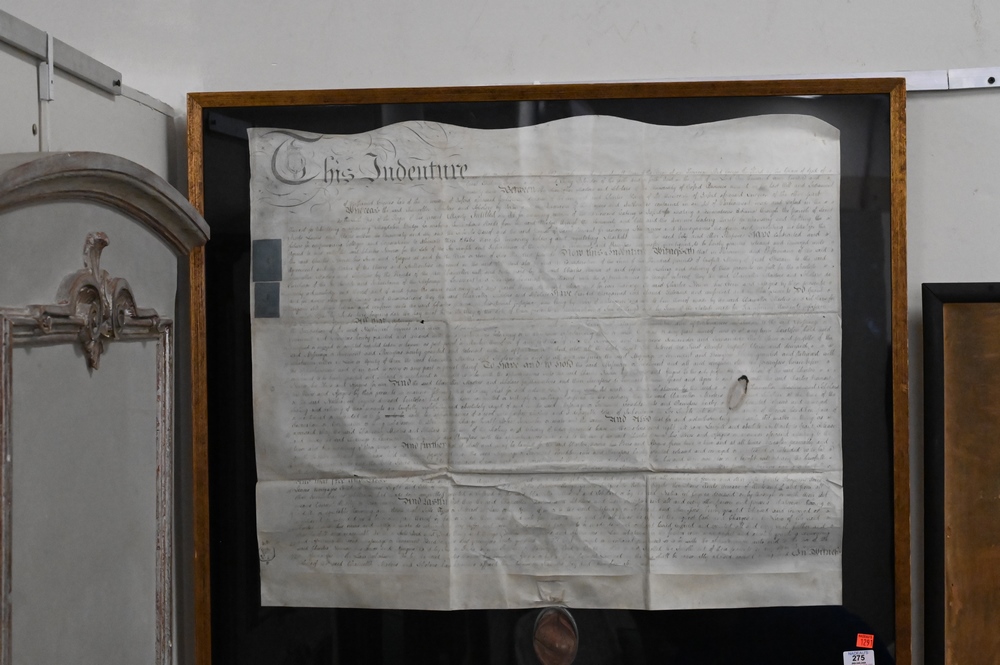 Two 18th Century English Indentures, each on vellum, one dated 1788, the other dated 1779, 20″ x 24 1/2″ and 24 1/2″ x 29″.