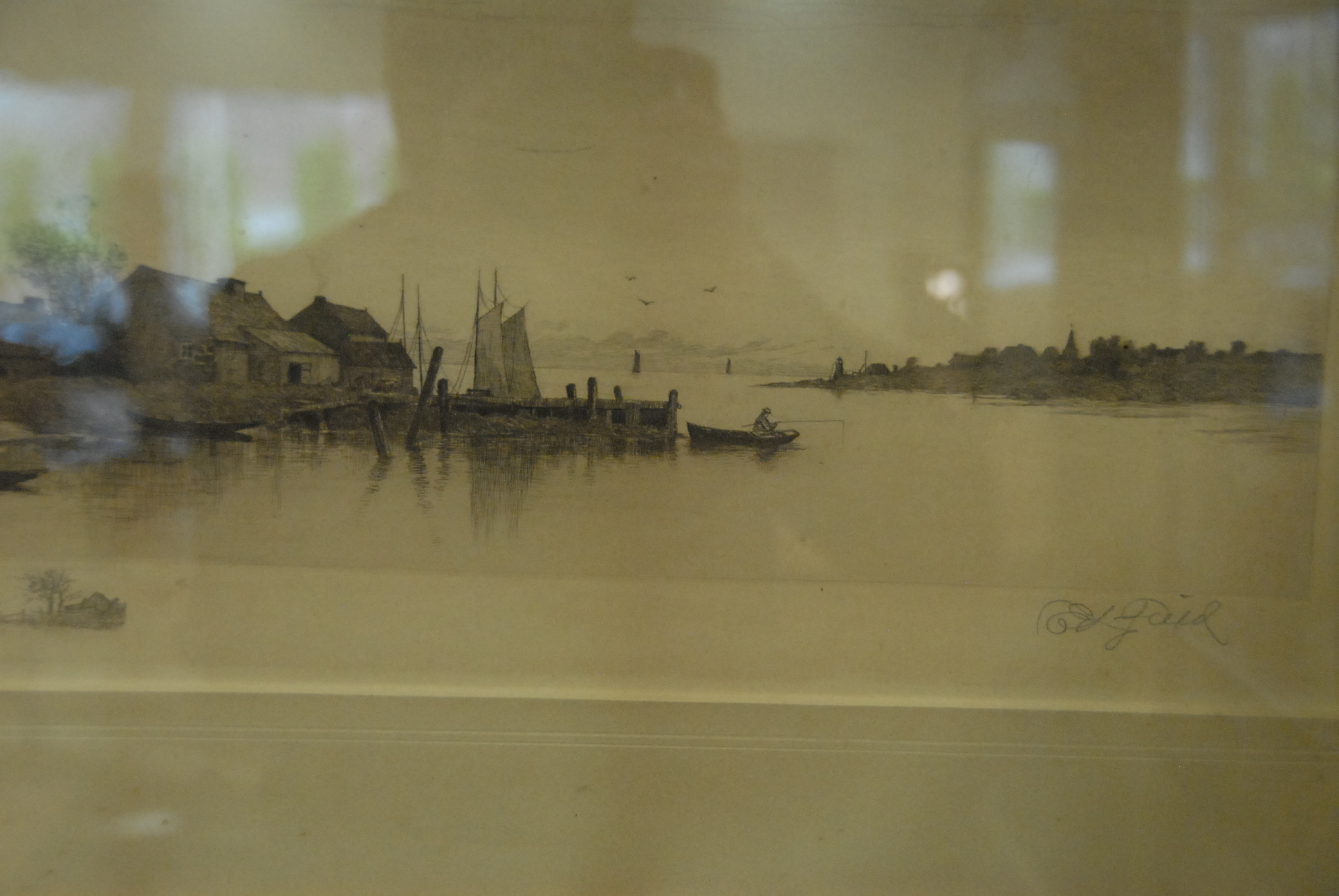 Lot 275: Two piece lot to include Edward Loyal Field 1856-1914 river’s edge drypoint etching signed in etching E. L. Field 7 1/2 x 22 and…