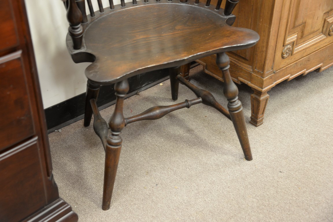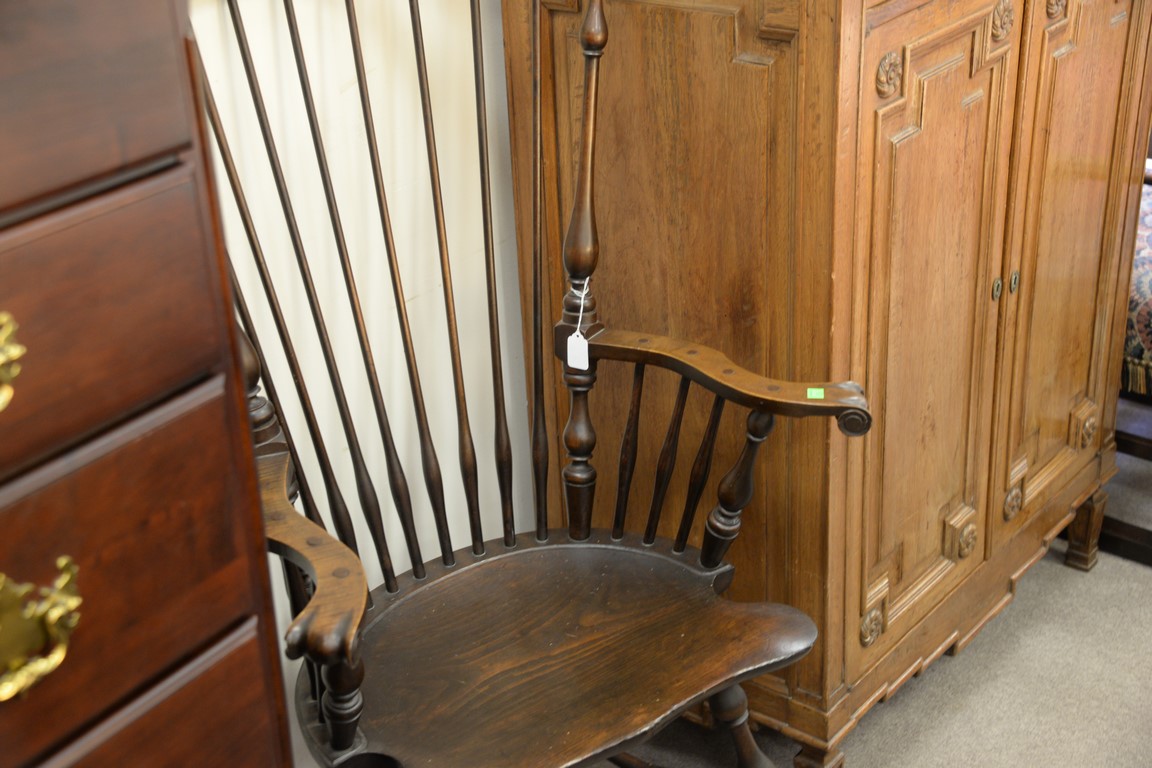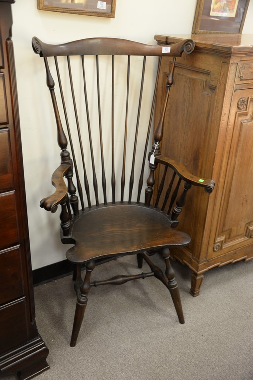 Lot 275: Wallace Nutting fan back knuckle armchair, marked with paper label. seat ht. 18in., total ht. 48in.