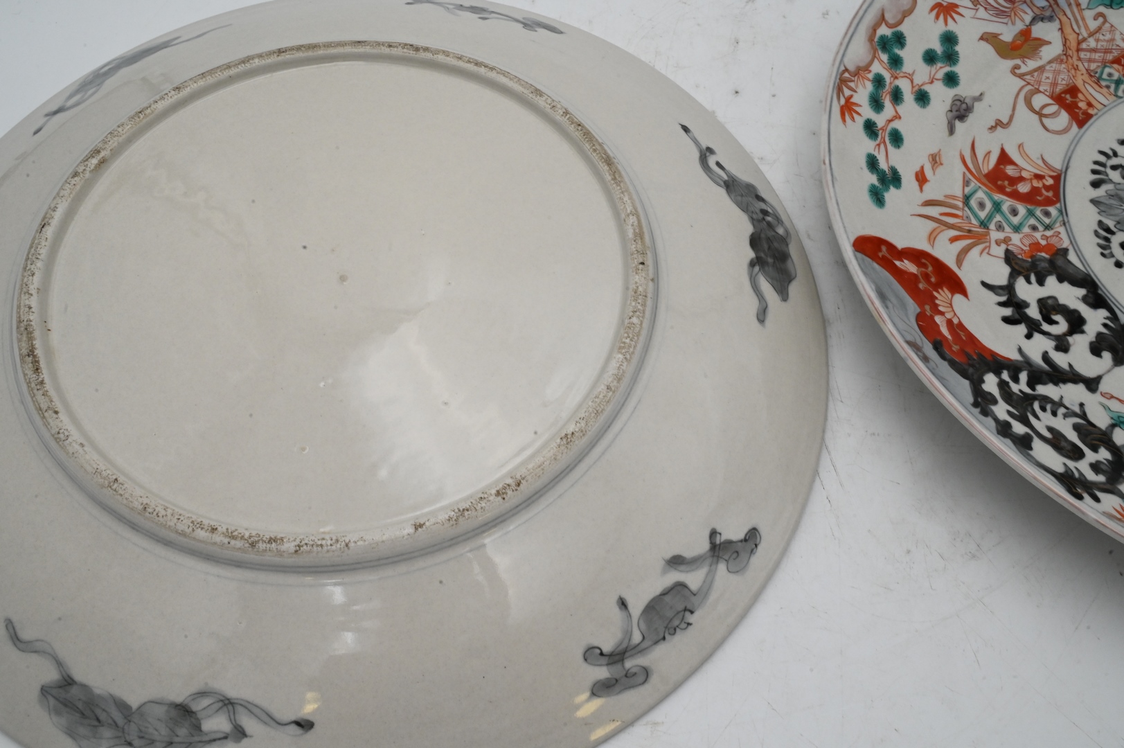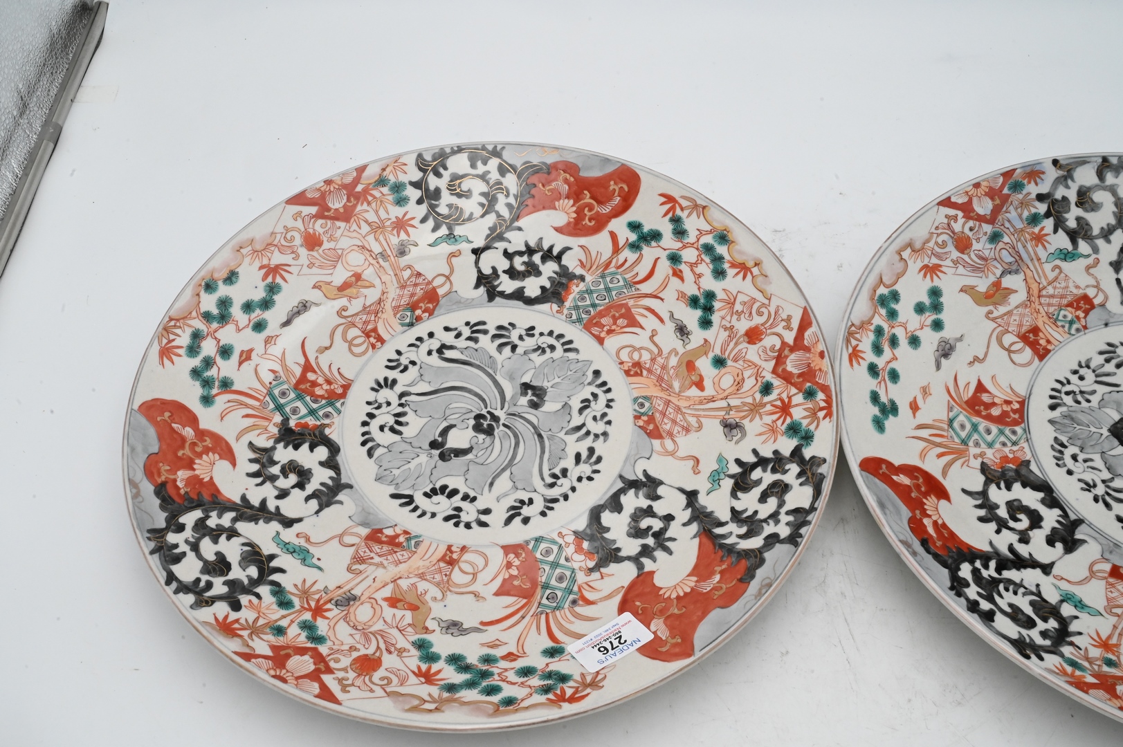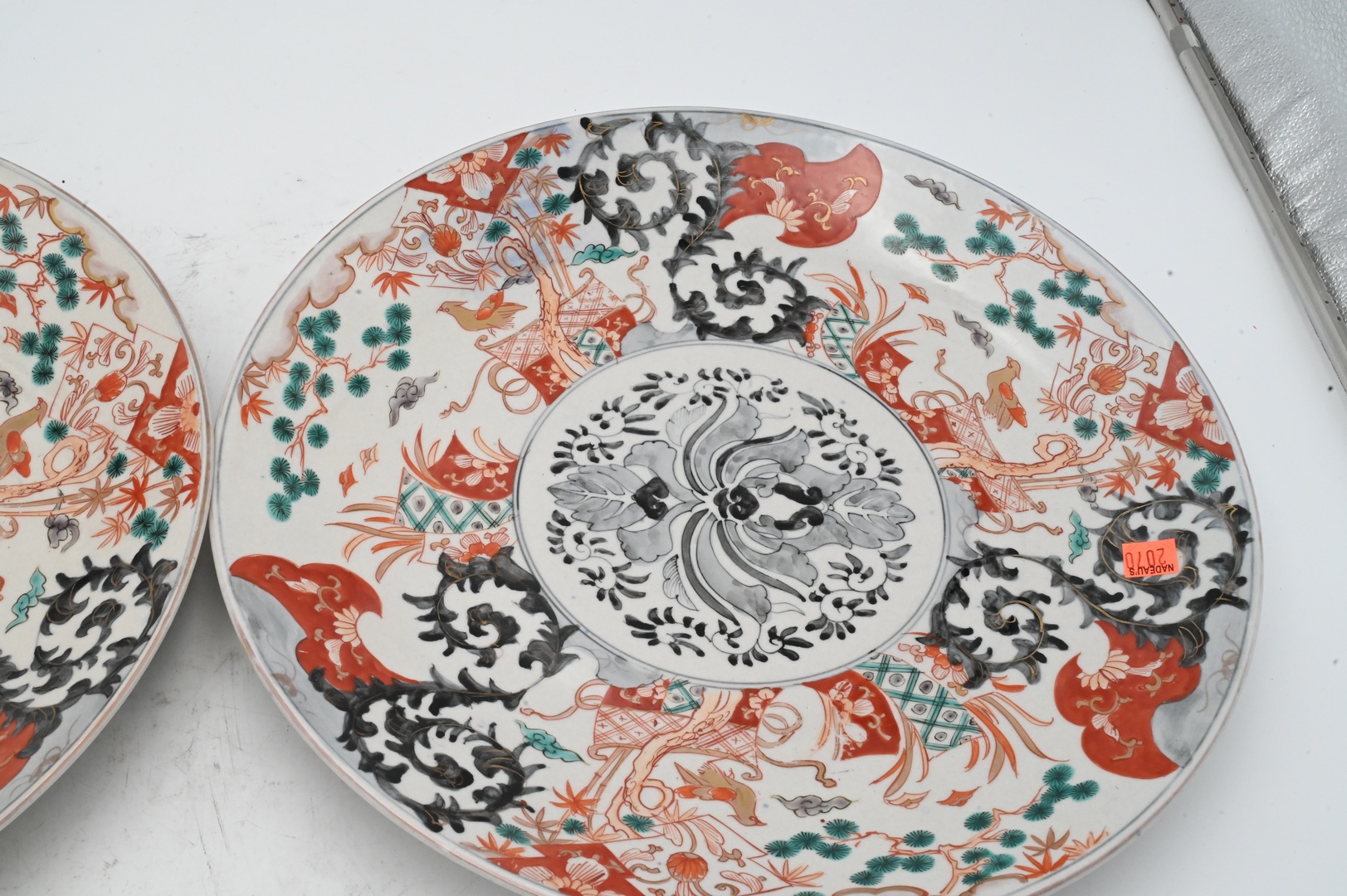 A Pair of Large Japanese Porcelain Imari Chargers, diameter 16 inches.