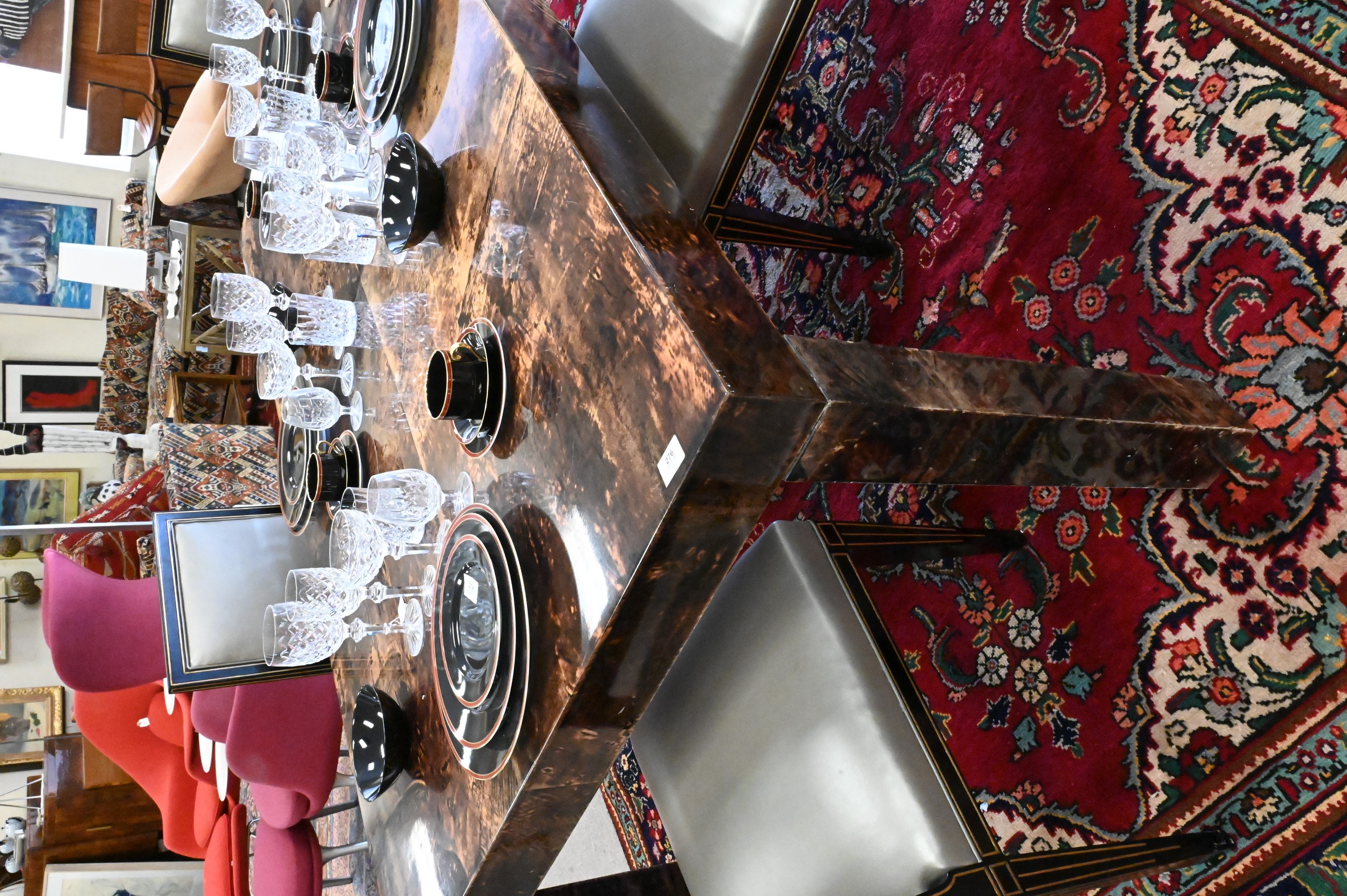 Lot 276: Aldo Tura Lacquered Goatskin Dining Table