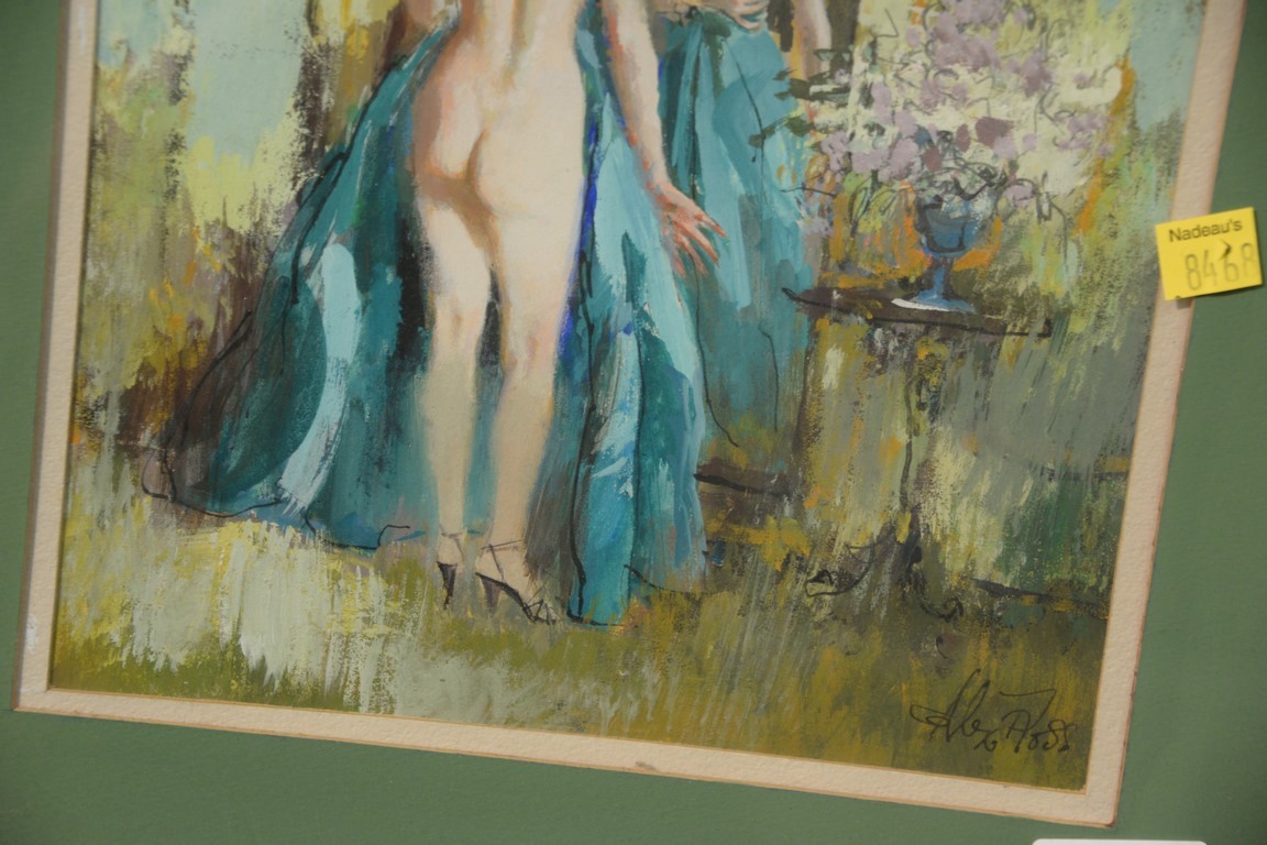 Lot 276: Alexander Sharpe Ross 1908-1990, gouache, Nude in a Mirror, signed lower right: Alex Ross, sight size 12 x 9 Provenance: Estate…