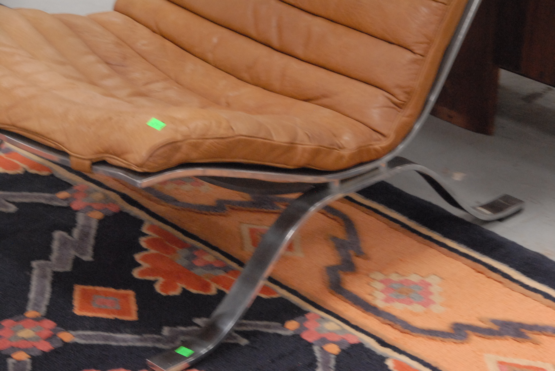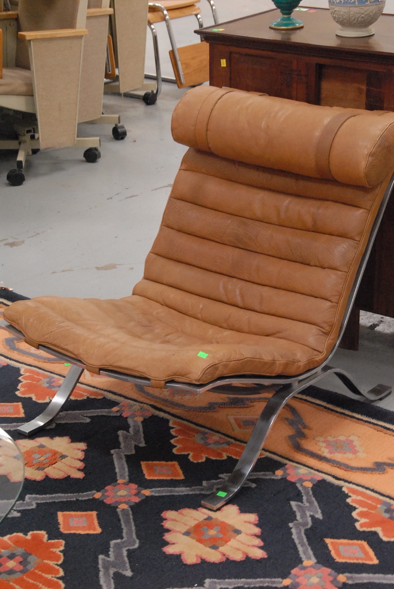 Arne Norell Ari lounge chair with chrome base and original tan leather cushions.