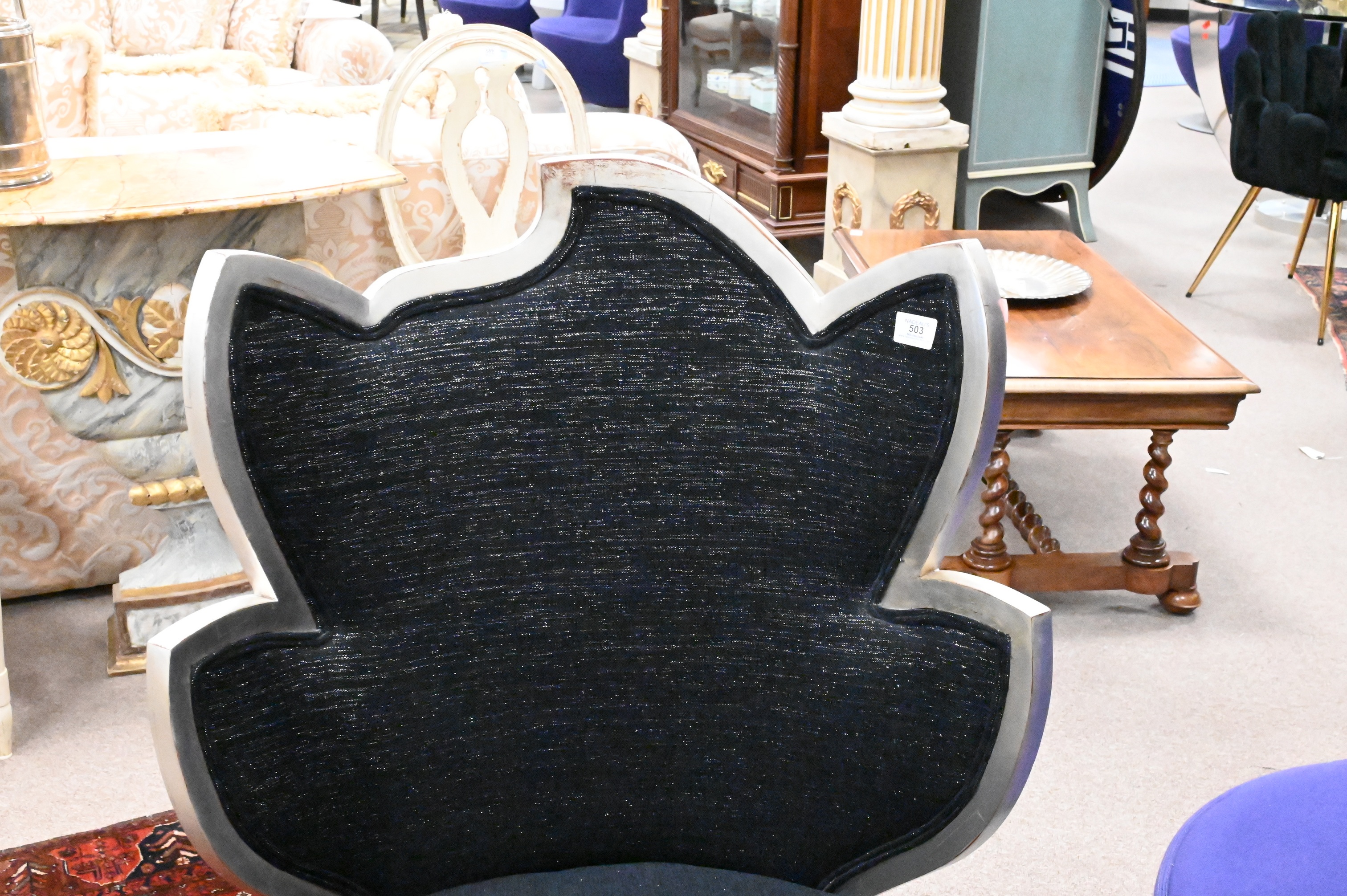 having thick round lacquered top above serpentine leaf form support with silver overlay, single drawer all over round plinth base