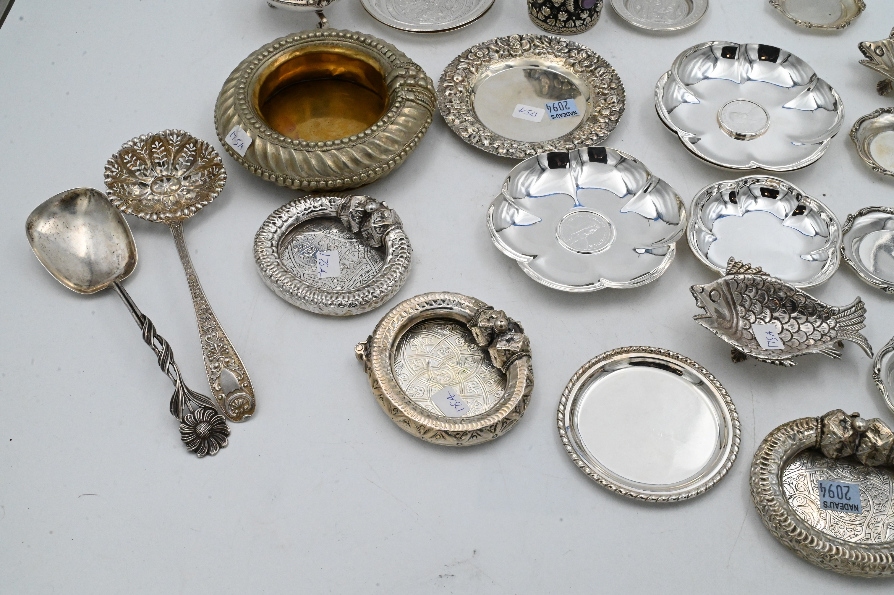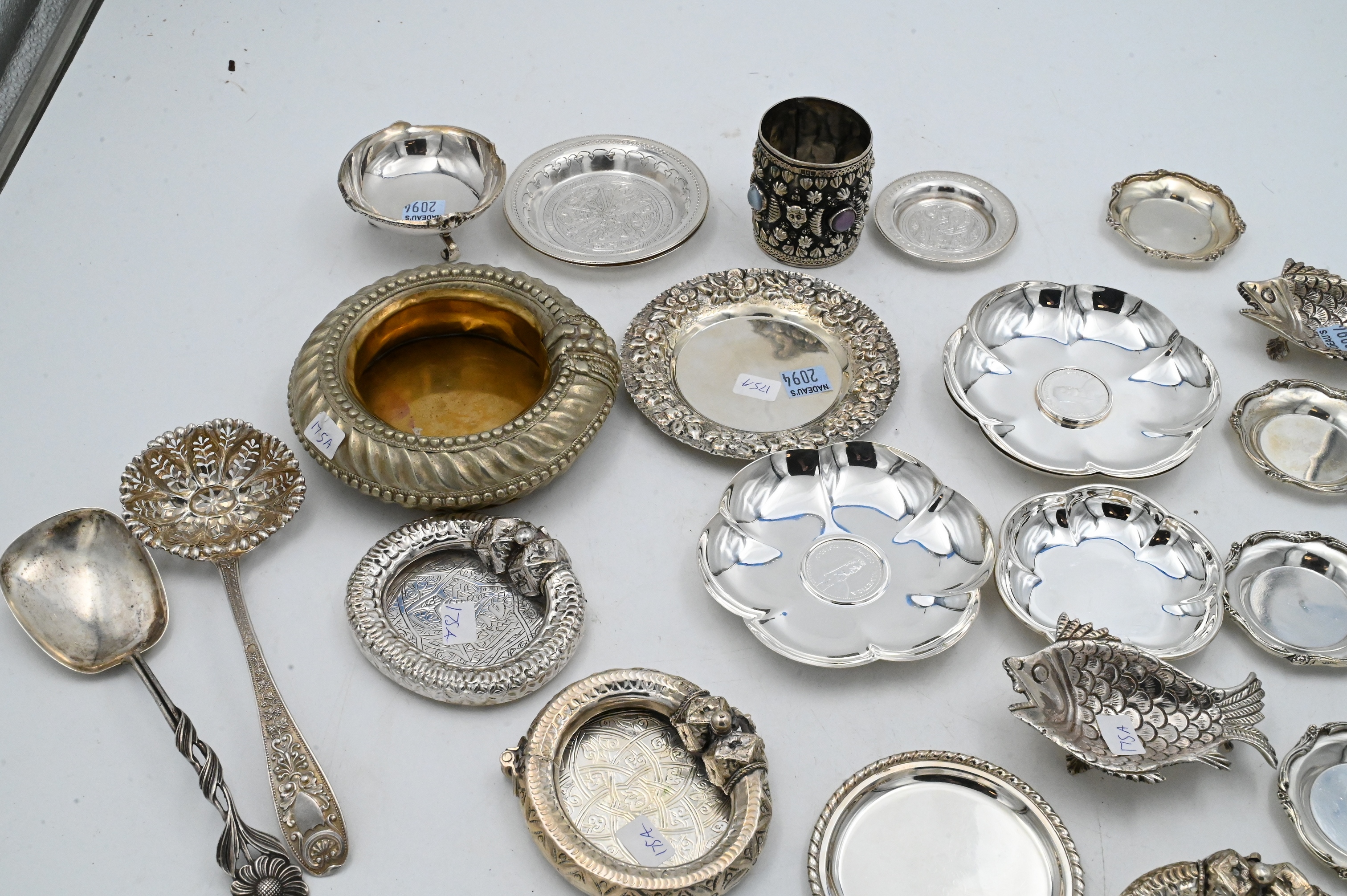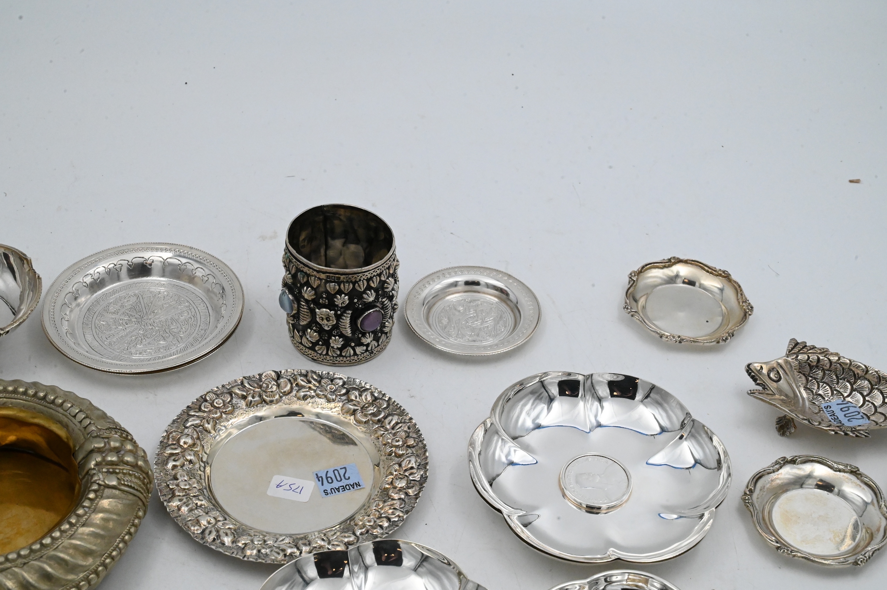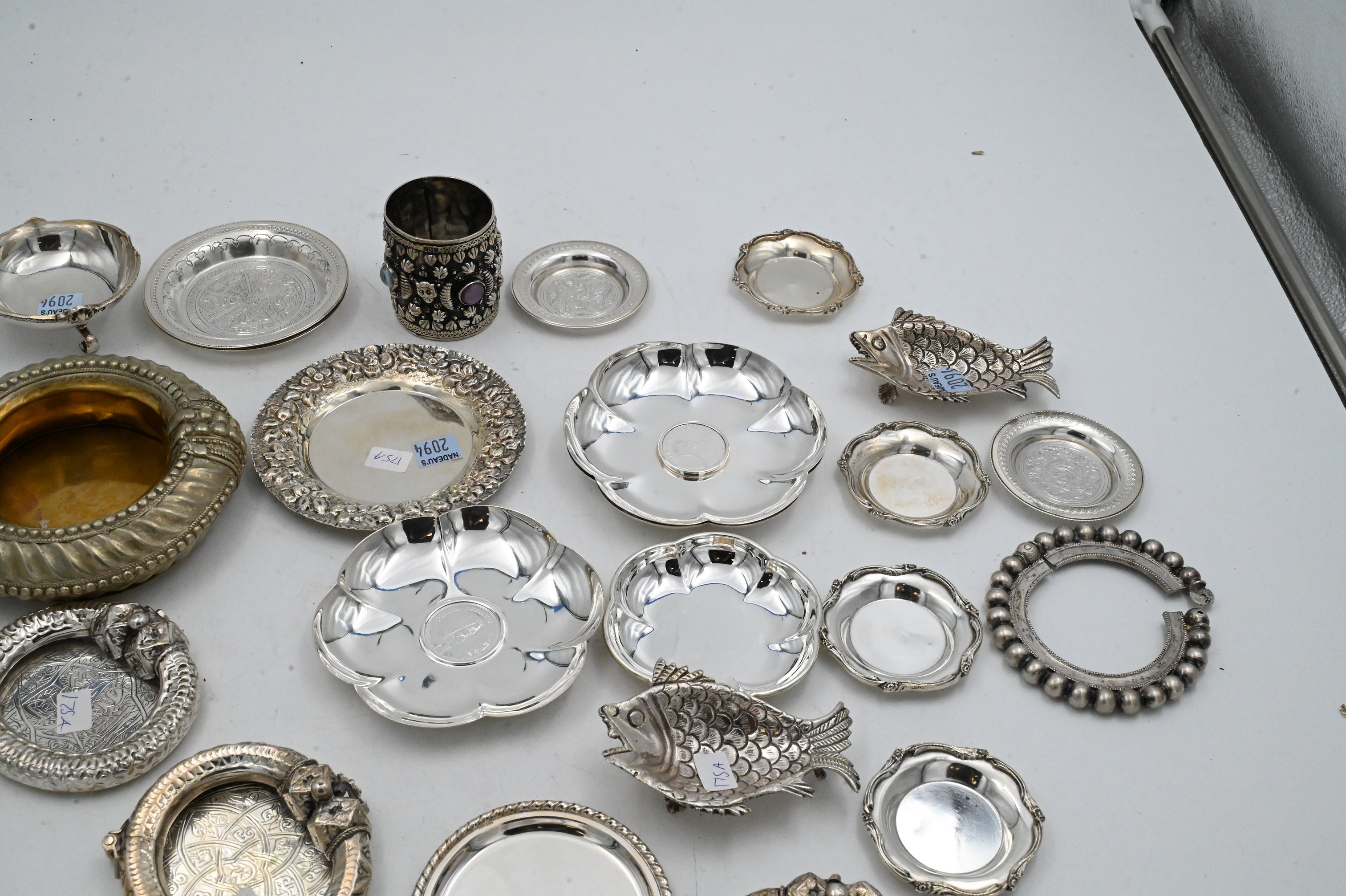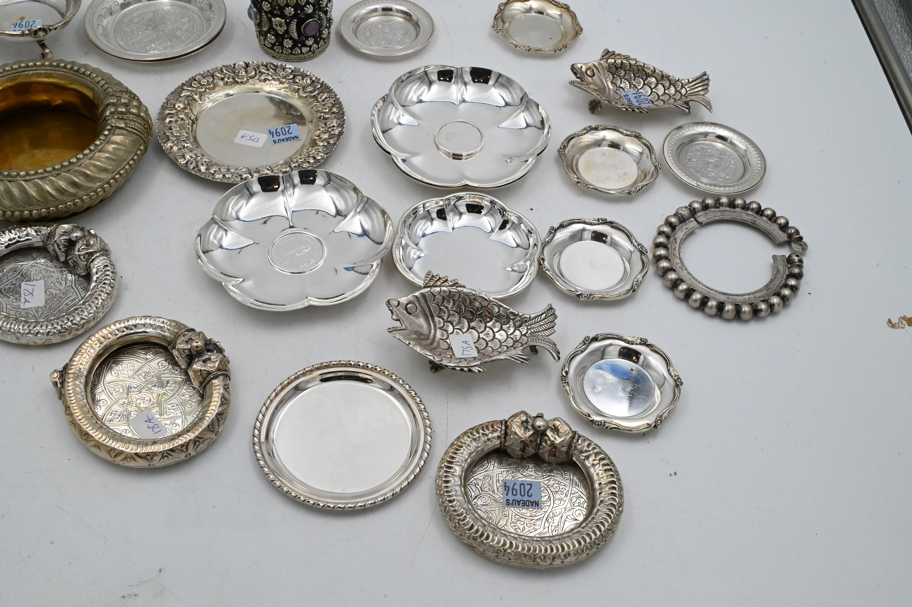 to include small trays some with coins and two in form fish, weighted bangles made into small dishes, one with stones, etc…